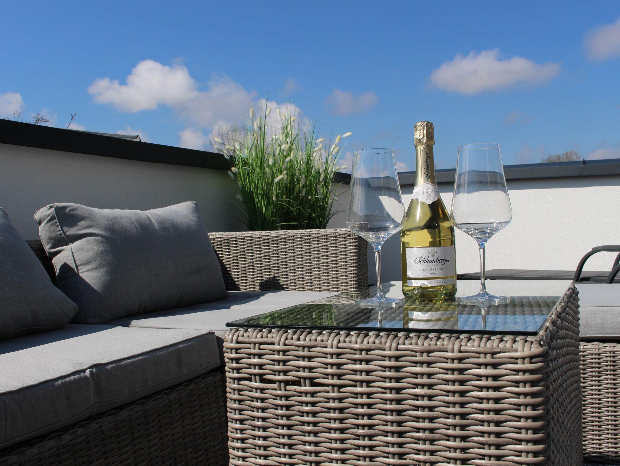 Nehmt euch eine Flasche Wein oder mixt einen coolen Sundowner auf unserer Sonnenterrasse.
