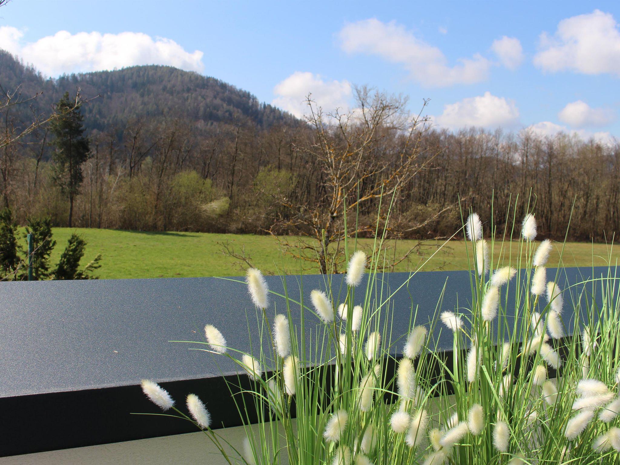 Die private Südterrasse mit 22m² und Rundumblick ladet zum Relaxen ein.
