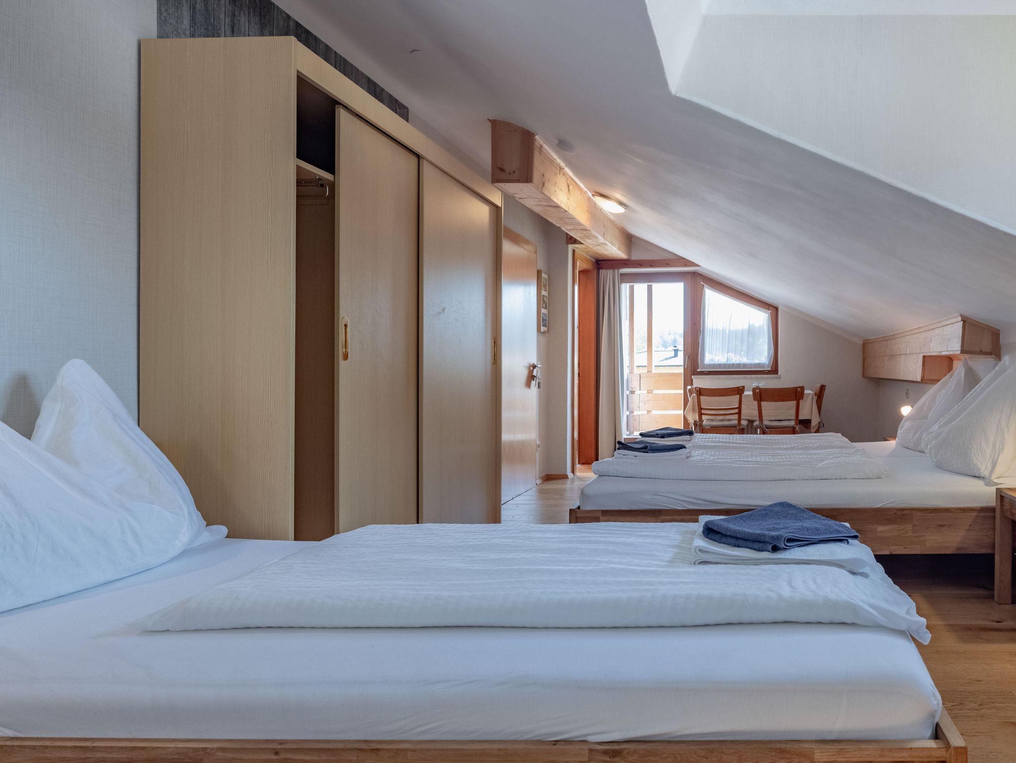 Gemütlich eingerichtetes Familienzimmer für 4 Personen mit DU/WC und südseitigem Balkon.