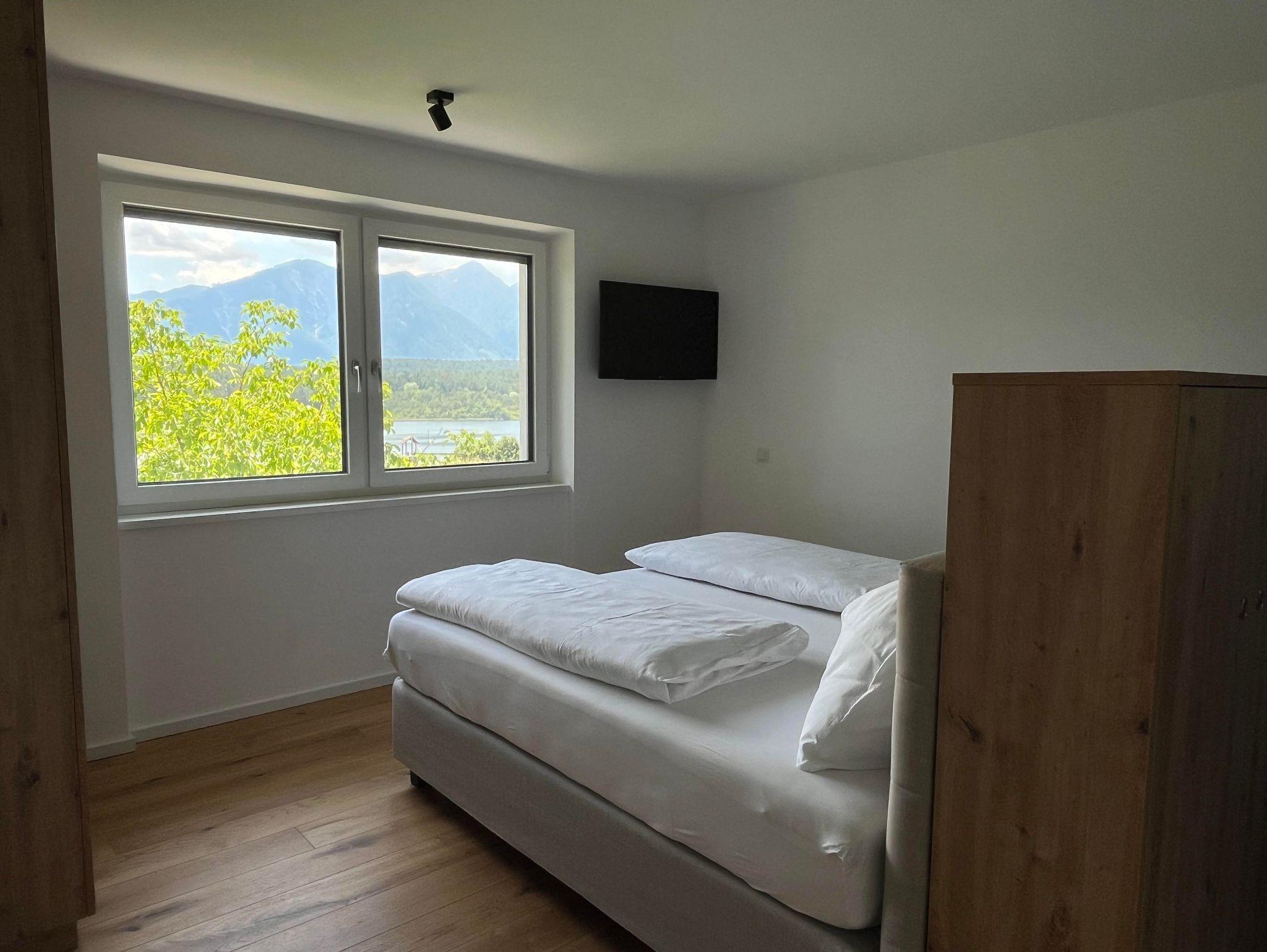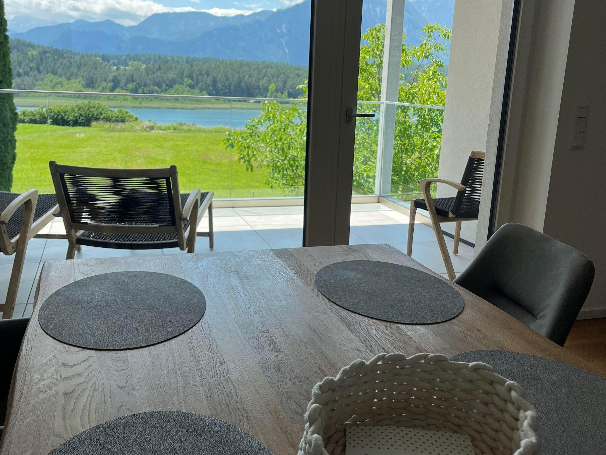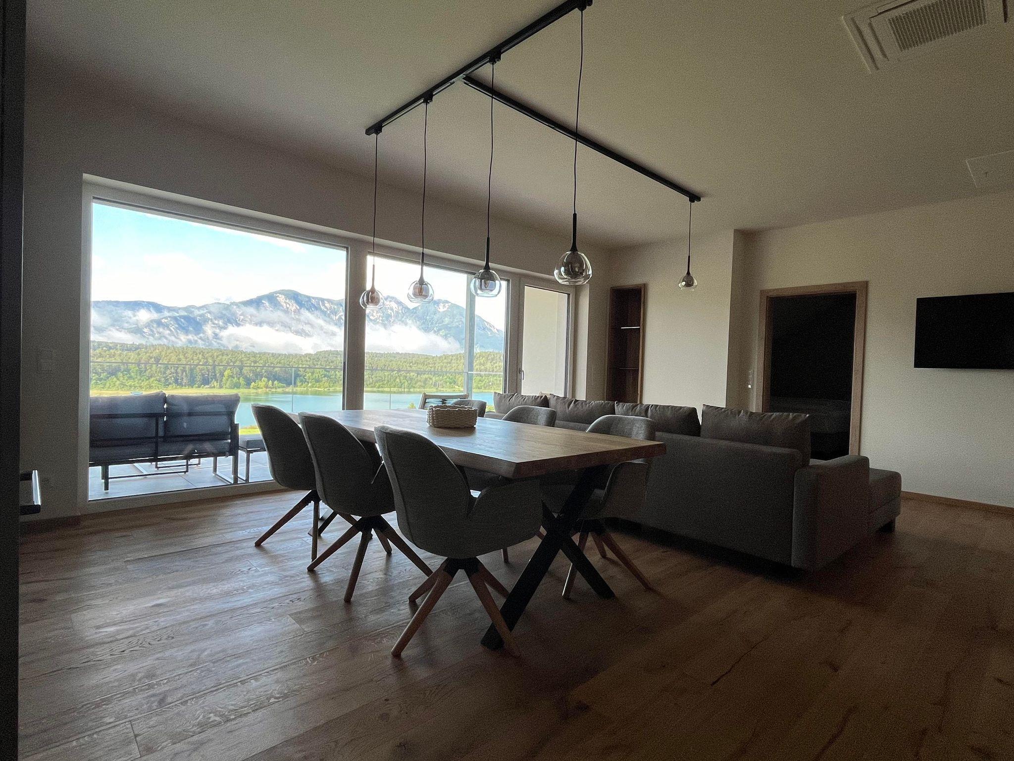 Das Appartement 3 befindet sich im 1. Stock, ist 82m2 groß und verfügt über eine 19m2 große überdachte Terrasse mit Blick auf den See. Die Terrasse ist mit Gartenmöbeln ausgestattet und lädt zum Verweilen, mit Aussicht auf die Karawanken, ein.