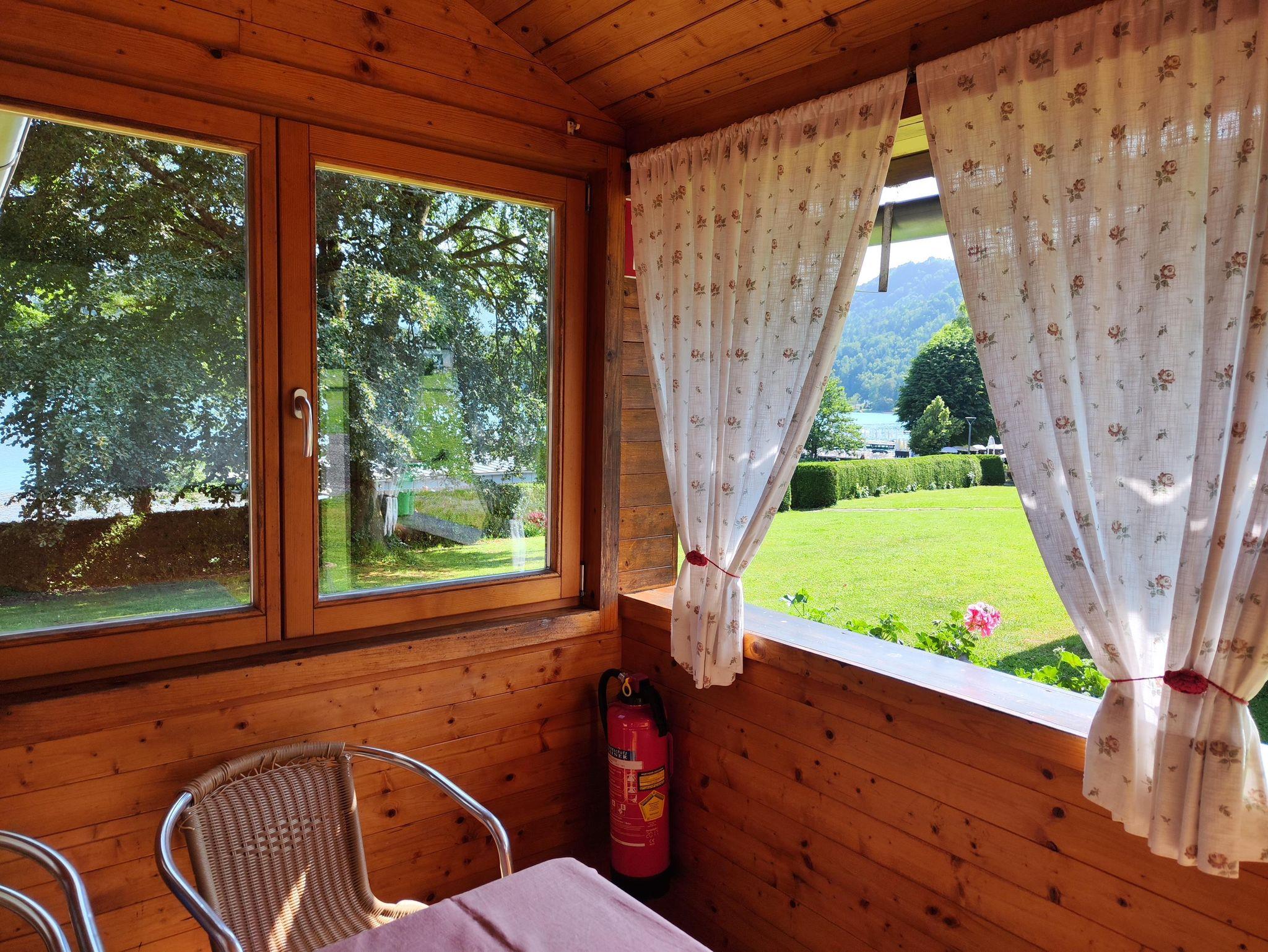 Die überdachte 6m² große Veranda mit Seeblick ist der ideale Platz für ein Frühstück mit Seeblick.