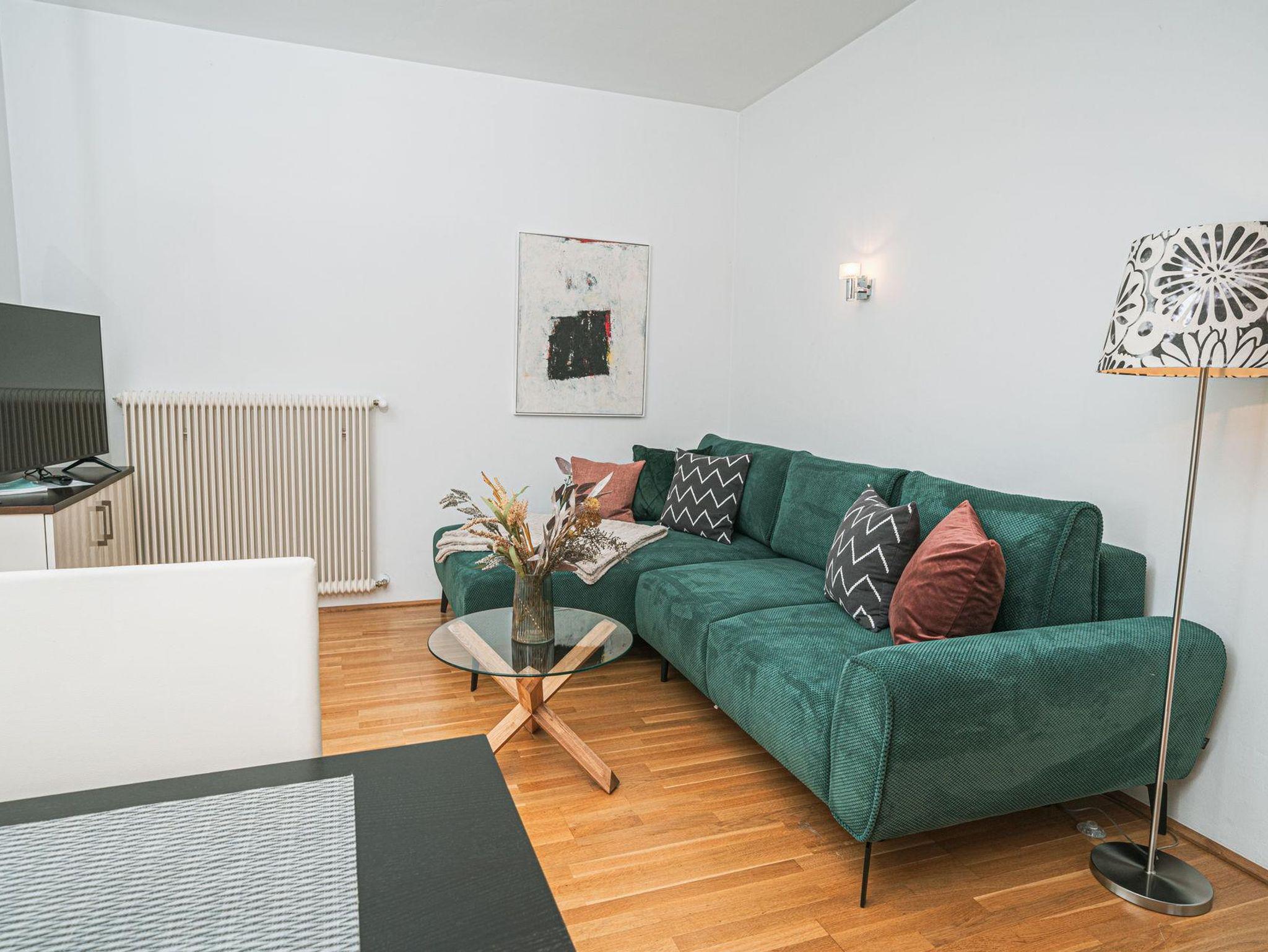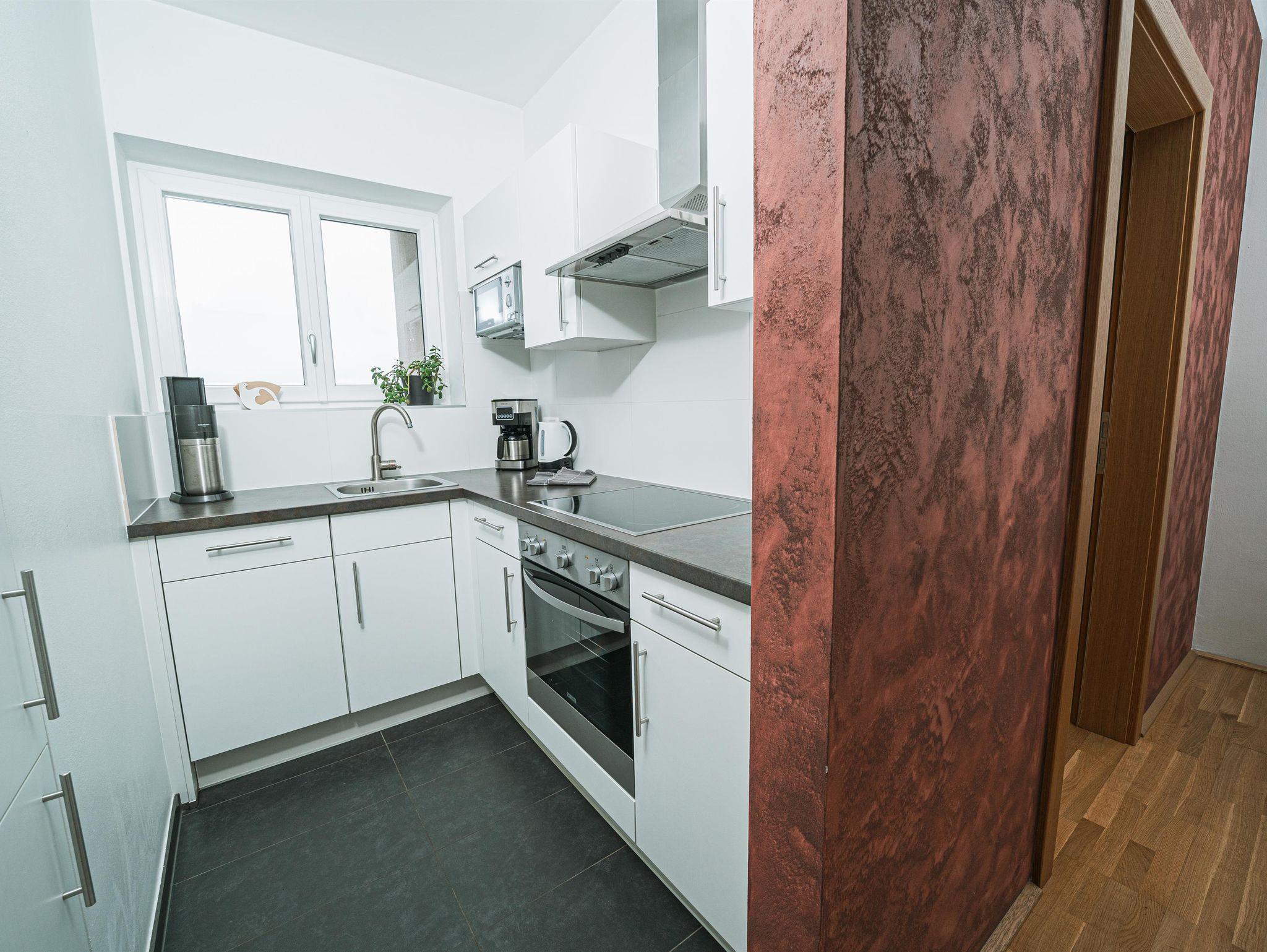 Die Wohnungen bestehen aus einem Vorraum, zwei Doppelzimmer, Badezimmer/WC,Fön, einem Wohnzimmer mit ausziehbarer Couchgarnitur, Esstisch, LCD-TV mit Musikkanal, Internet über W-LAN, komplett ausgestatteter Küche mit Mikrowelle, Geschirrspüler, Backofen, Kaffeemaschine, Sodastream uvm. sowie einer großen Terrassen mit Terrassenmöbel, 2 Sonnenliegen und Griller. Bett- u. Tischwäsche, Geschirr- u. Handtücher werden bereitgestellt. Auf Wunsch Zustellbett, Kinderbett (Gitterbett) und Hochstuhl. Waschservice gegen Gebühr im Haus.