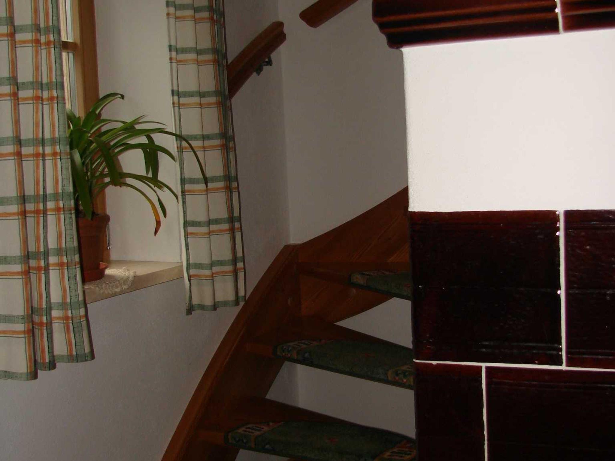 Die Stube mit Kachelofen, die Kochnische und die getrennten Schlafzimmer im Dachgeschoss sind liebevoll mit Möbeln aus Vollholz ausgestattet. Dusche, WC und Sat-TV (Flachbildfernseher) runden den Komfort ab.