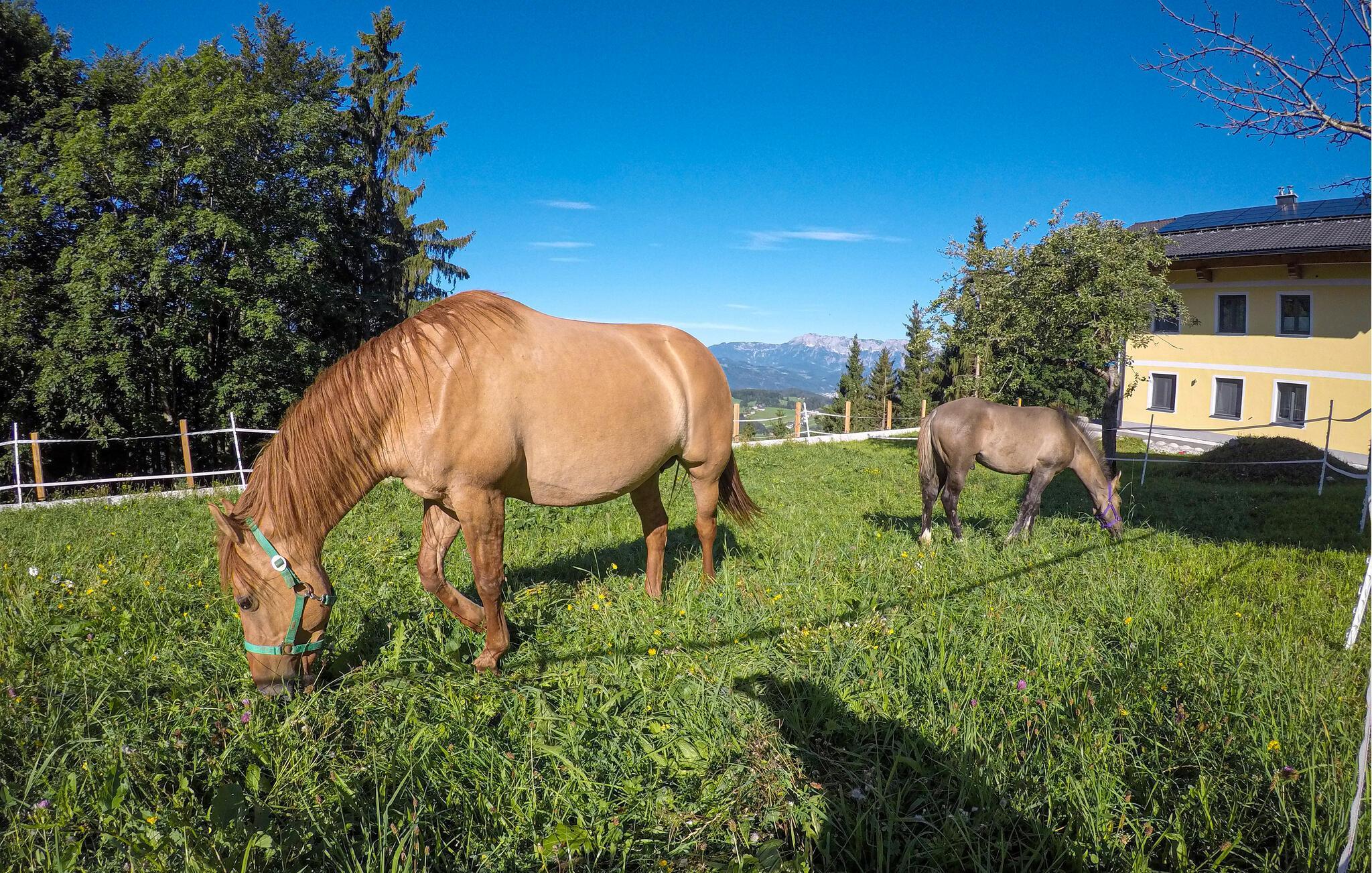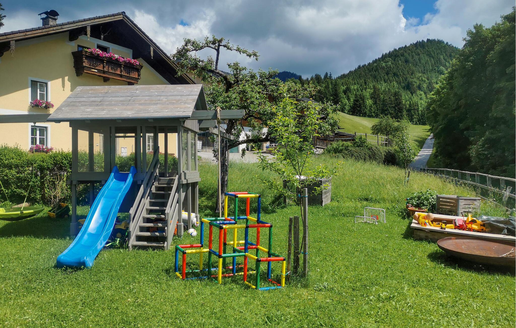 Den store have med legeplads tilbyder mange muligheder for børn. Se hestene på den tilstødende græsmark, tag ridetimer på ejerens gård eller nyd blot den storslåede udsigt over Tennengebirge. Gården er familievenlig og tilbyder også små opdagelser for de yngste gæster.