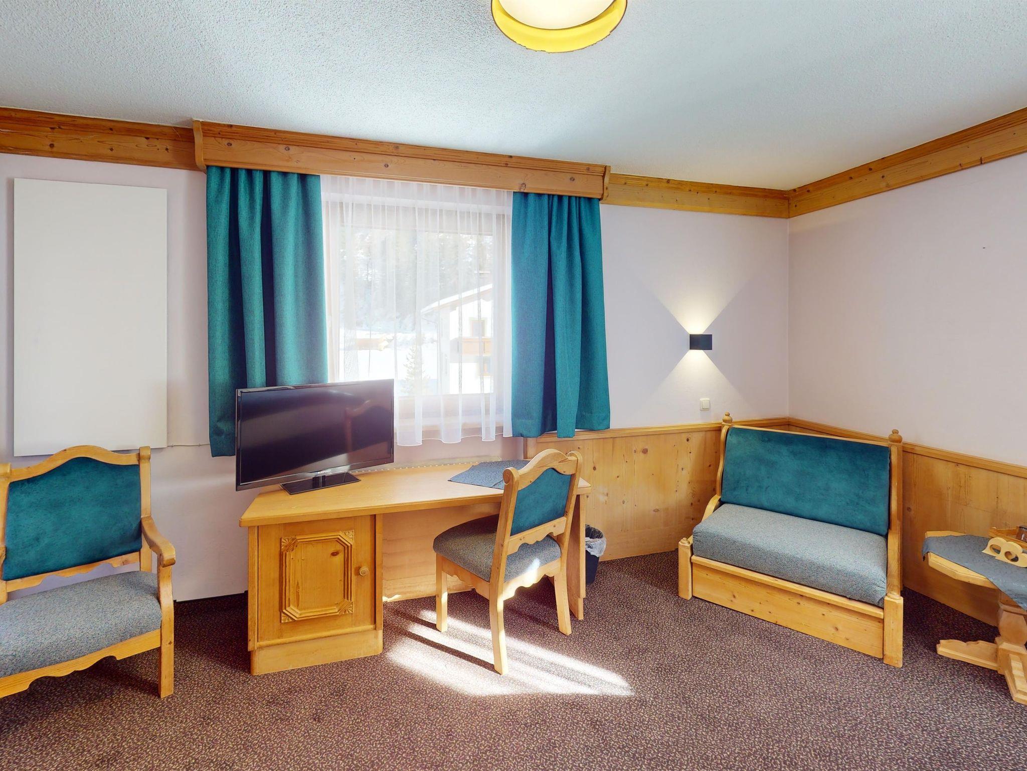 Großzügiges Familienappartement mit 75 m², für 3- 6 Personen, aufgeteilt auf vier Räume mit großem Eingangsbereich, 2 Schlafzimmer mit Doppelbett + Extrabett , Kabel TV und Balkon, Badezimmer mit Doppelwaschbecken Du/WC/Fön, extra WC am Gang, komplett eingerichtete Küche mit Geschirrspüler, gemütlicher Wohnbereich