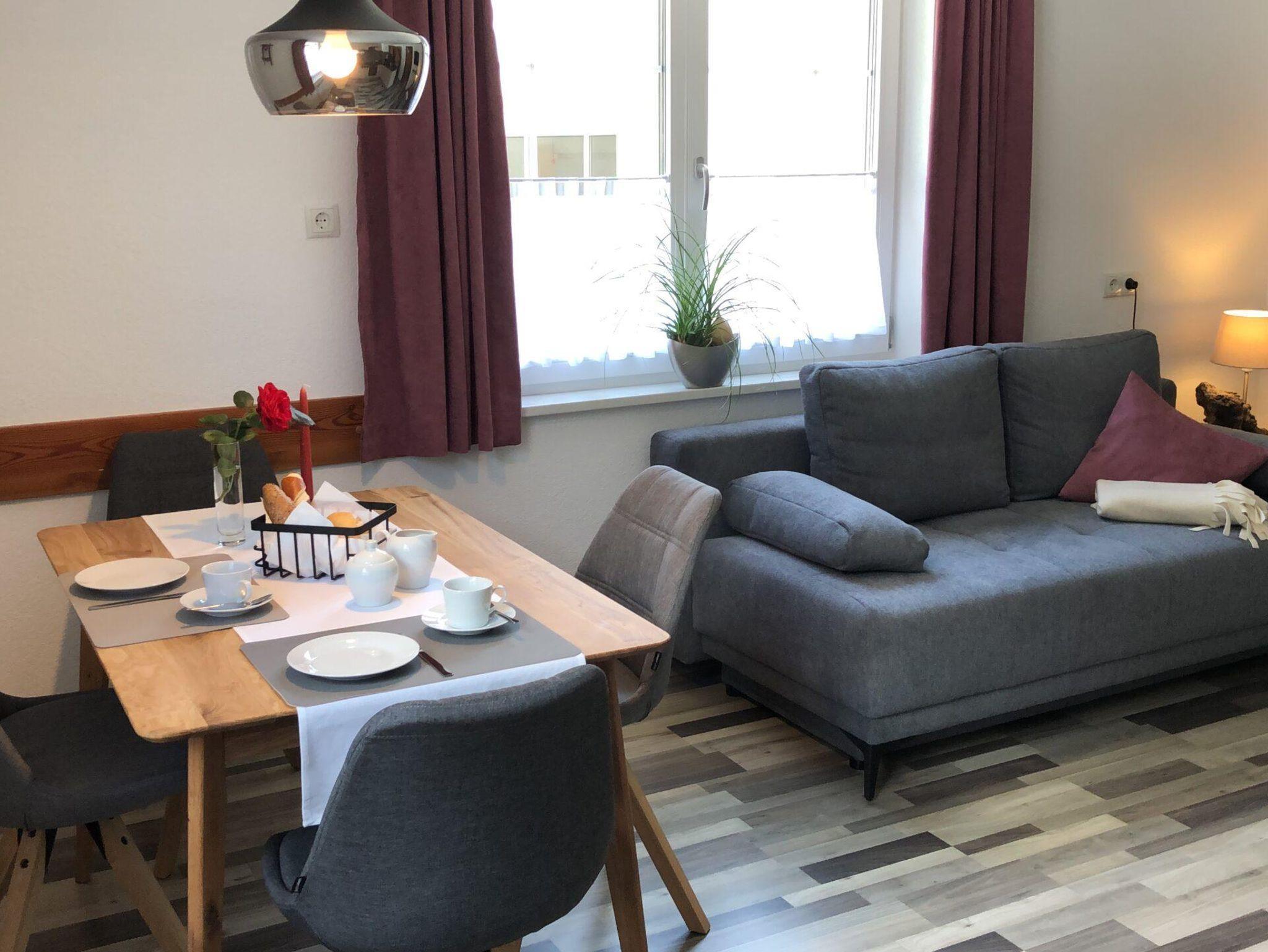 Ferienwohnung für 2-4 Personen (5. Person auf Anfrage). Unsere Ferienwohnung ist eine NICHTRAUCHER Wohnung - auch Haustiere sind bei uns nicht erlaubt! Neue Wohnung - 2022 renoviert und umgebaut. Gemütliche Terrasse mit Sitzecke. Unsere Küche ist mit den wichtigsten Geräten ausgestattet, eine bequeme Sitzecke mit Tisch rundet den Essbereich ab, außerdem ist eine TV Ecke mit Ausziehcouch vorhanden, Schlafzimmer (Doppelbett) mit geräumigem Schrank sowie einem Ausziehstuhl (für 1 Person), Bad mit WC und großer Dusche, Bushaltestelle ca. 100 m entfernt (in beide Richtungen), kostenloses WLan, Bettwäsche, Hand- und Geschirrtücher vorhanden! Abstellplatz für Skier in unserem Keller - mit Skischuhtrockner.