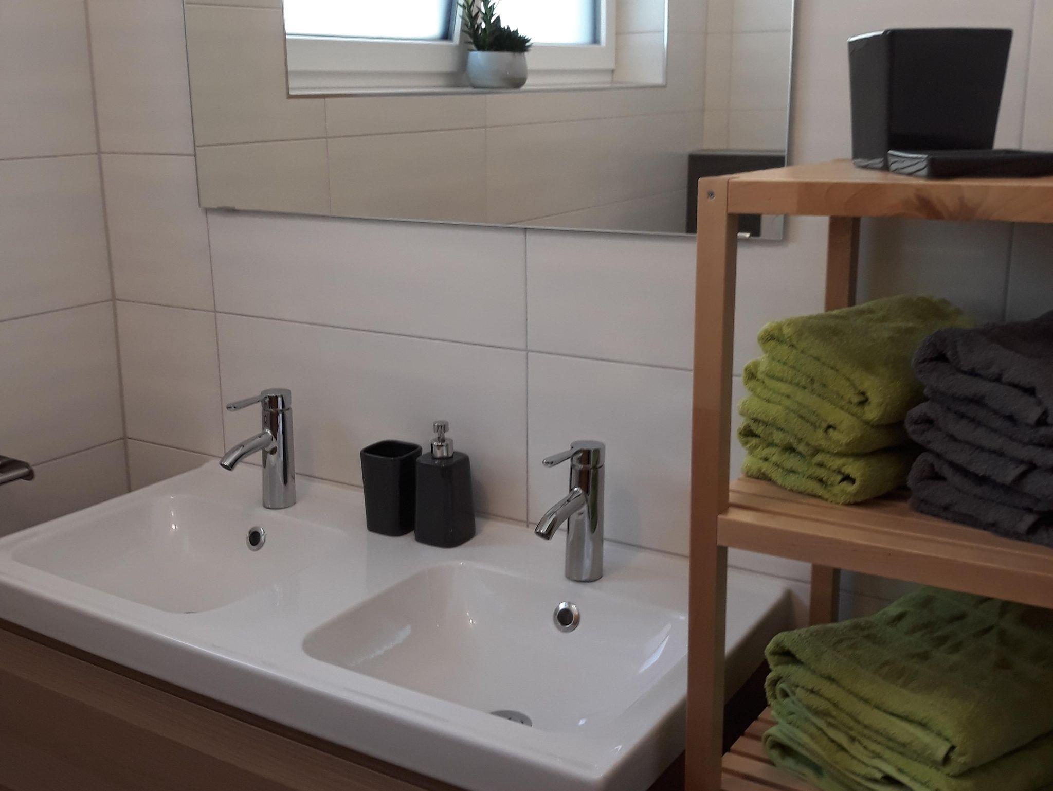 Küchenausstattung: Cerankochfeld mit Dunstabzug, Backofen, Kühlschrank, Spülmaschine, Wasserkocher, Filterkaffeemaschine, die wichtigsten Utensilien in einer Küche. Sitzecke mit großem Tisch, im Essbereich TV Ecke mit separater Couch, 2 Schlafzimmer mit jeweils 3 Betten (1 Doppelbett, 1 Einzelbett) inkl. großzügigen Stauraum, Bad mit Dusche und WC - flauschige Handtücher sowie WC Papier (2 Rollen), Sonnenterrasse mit Sitzmöglichkeiten im EG sowie ein großer Balkon im OG, 2 Parkplätze, WLAN, täglicher Brötchenservice, Skier: Abstellmöglichkeit im Keller - separater Eingang hinter dem Haus, Skiausrüstung: Aufbewahrung und Unterbringung im Skiraum