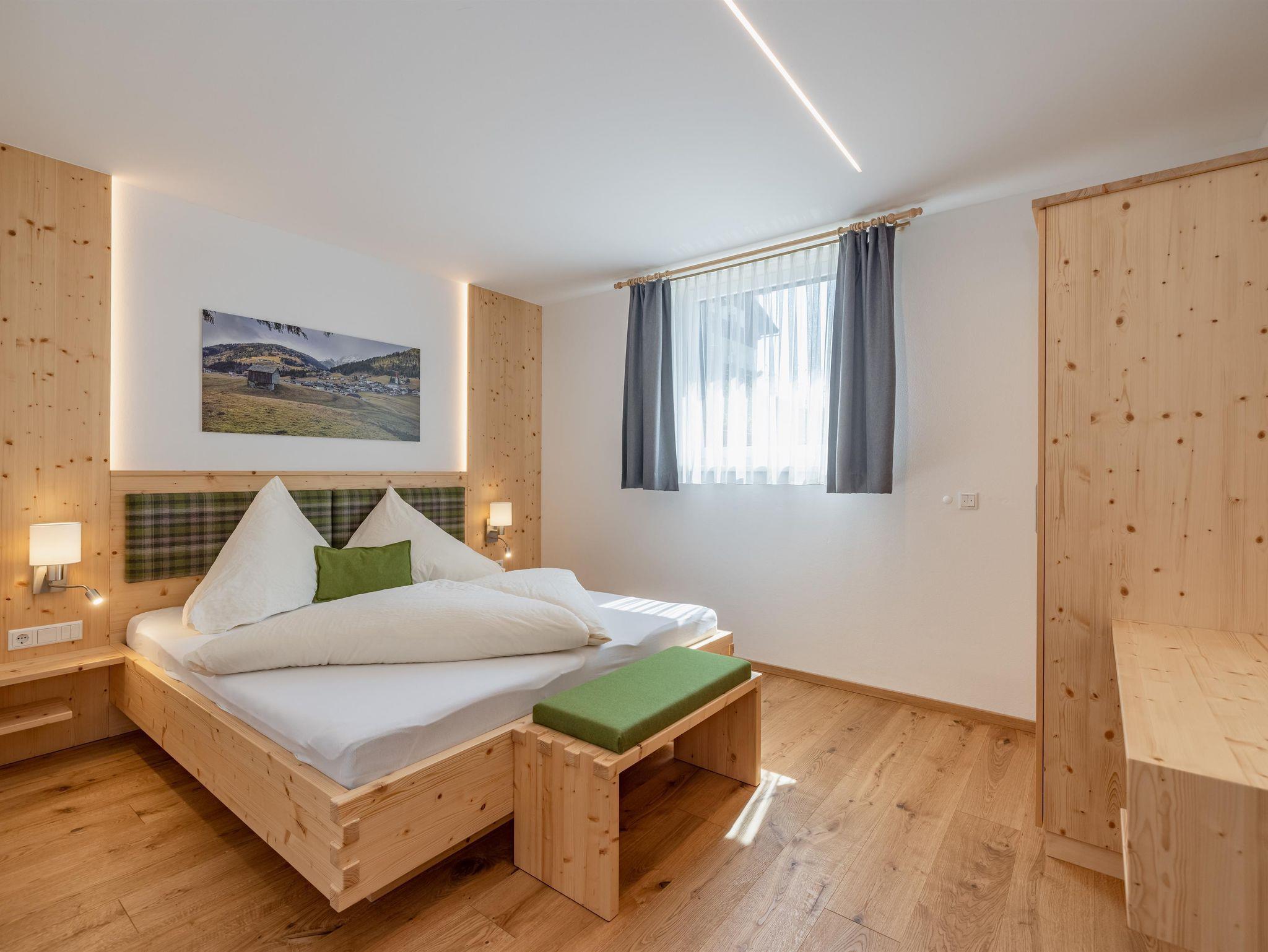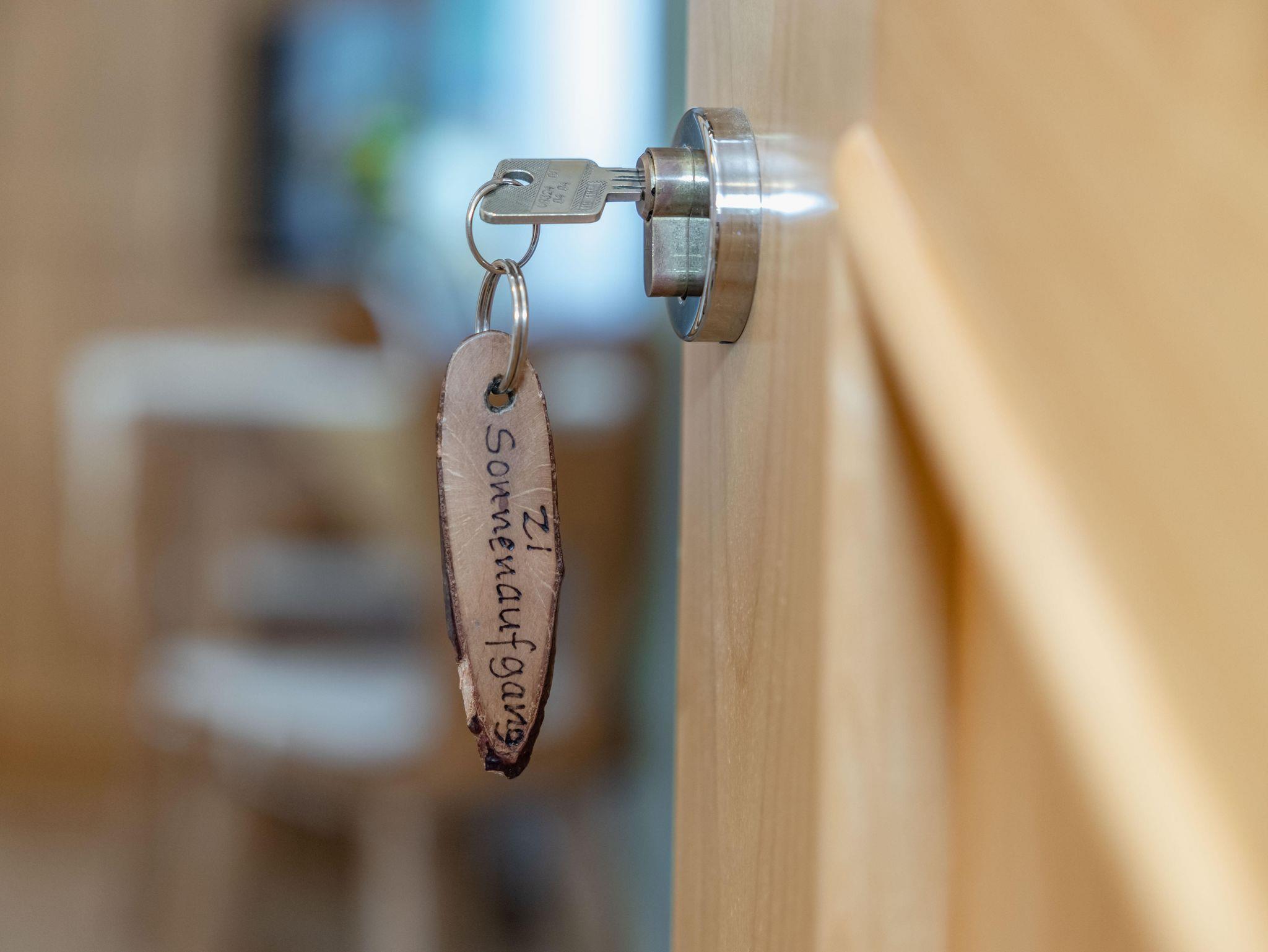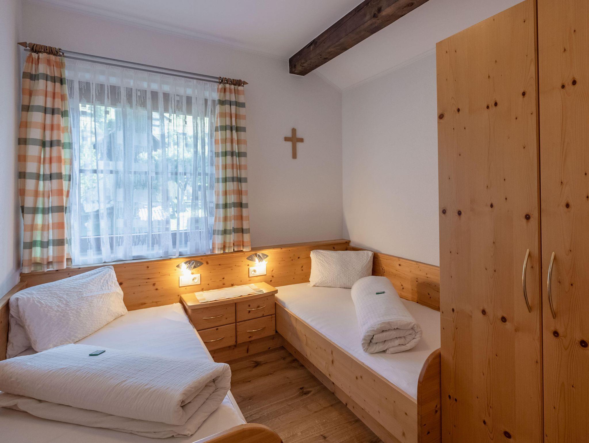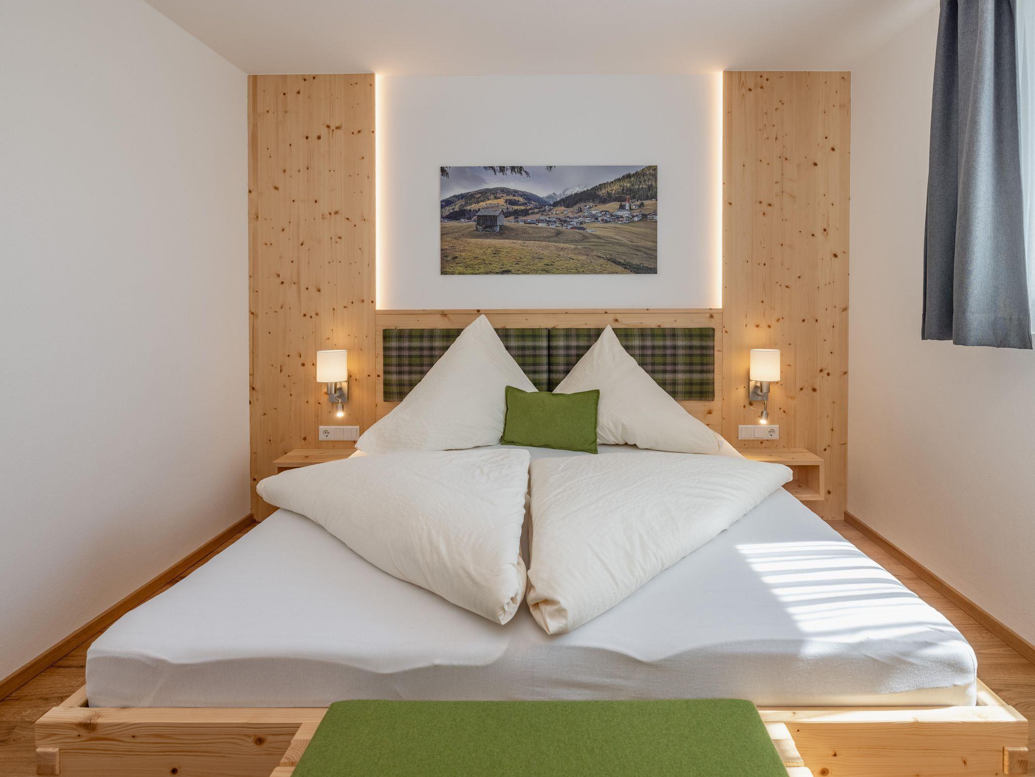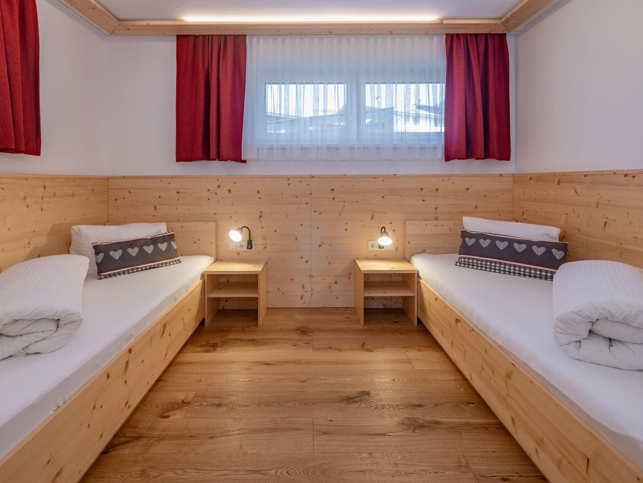 Die Wohnung mit 90m² (+ 24m² Südterrasse) für 2-4 (6) Pers. ist barrierefrei und besteht aus einem offenen Wohn-Koch-Essbereich (Geschirrspüler, E-Herd mit Backrohr und Dunstabzug, Kühlschrank mit Gefrierfach, Mikrowelle, Kaffeemaschine, Wasserkocher) mit SAT/TV, Bad mit Regendusche und Handtuchtrockner, getrenntes WC. Auf Wunsch kann ein zweites Bad mit Regendusche und WC dazugebucht werden. Die Wohnung bietet zwei Schlafzimmer für je 2 Personen mit geöltem Eichenparkett, ein Spielezimmer mit Ausziehschlafcouch und eine großzügige Südterrasse (24m²).