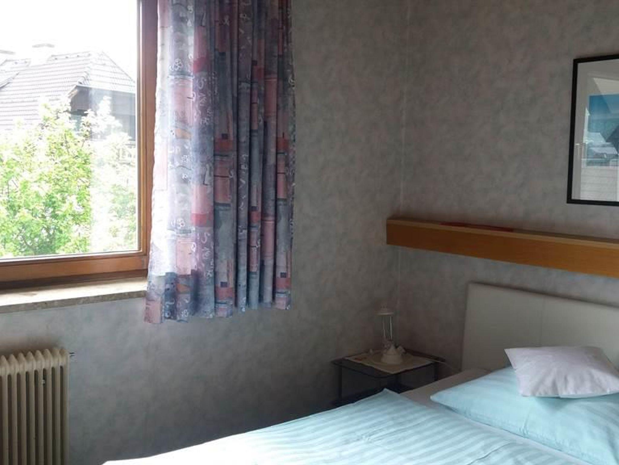 Helles Zimmer mit großem Fenster in Richtung Norden, französischem Bett, TV, Dusche & WC, Föhn.