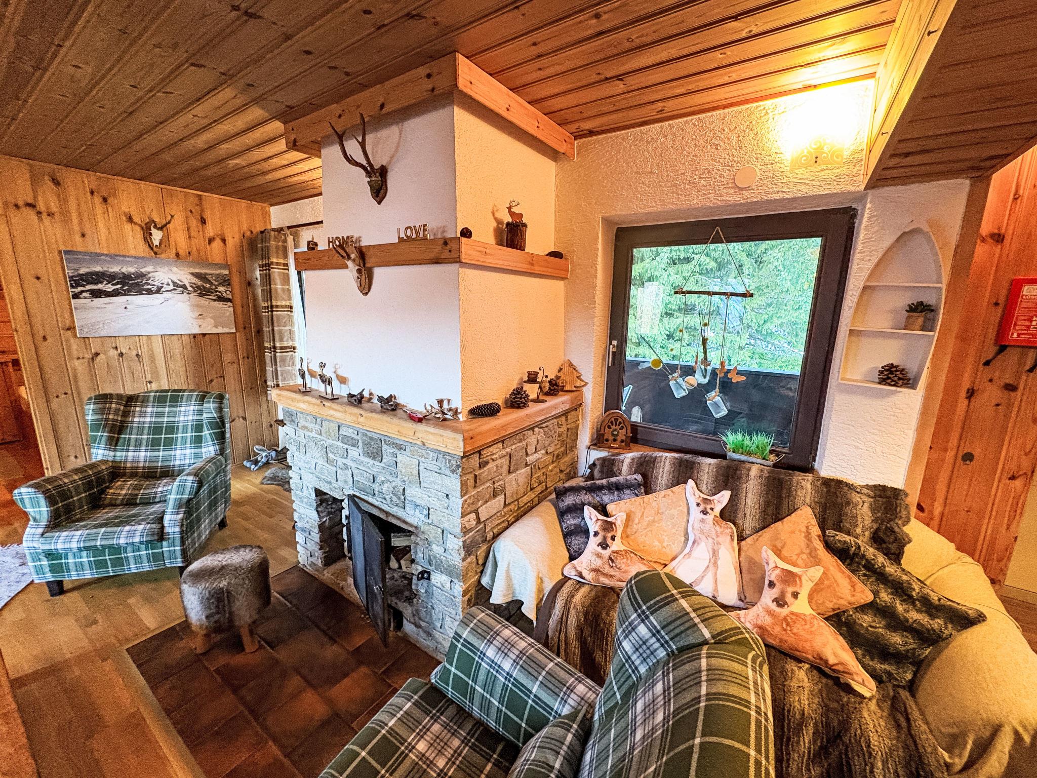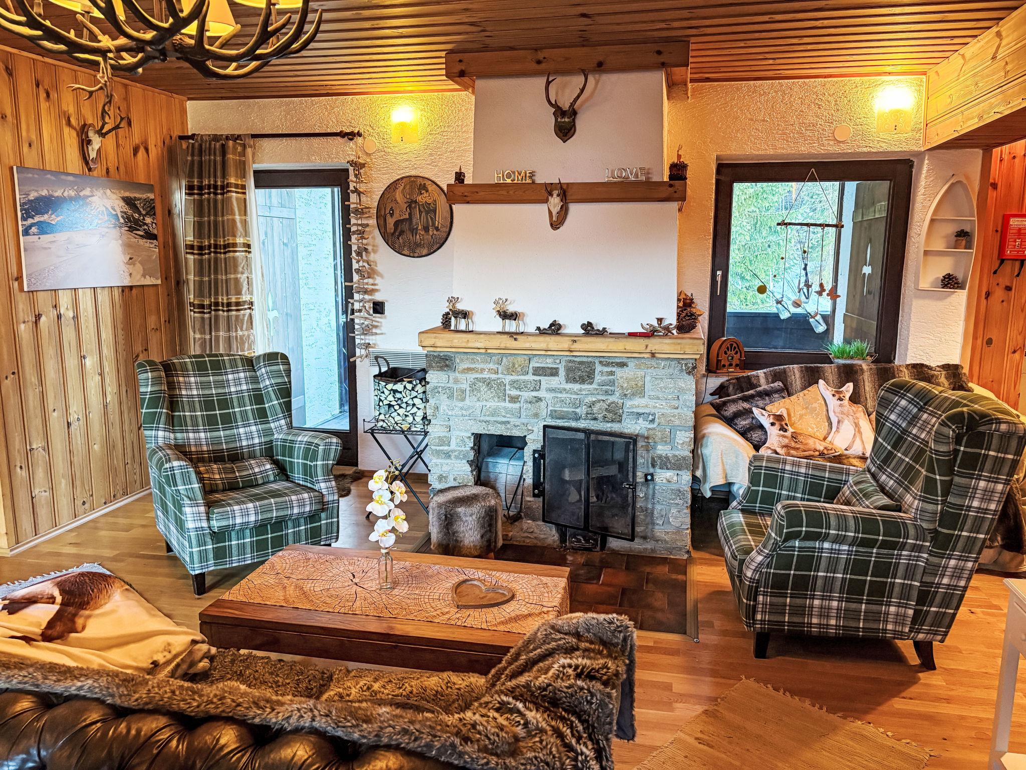 "Silvia", 3-room apartment 70 m2, on the upper floor. Comfortable and wooden furniture furnishings: 2 double bedrooms. Living/dining room with open-hearth fireplace, dining table, TV and flat screen. Open kitchen (oven, dishwasher, 4 ceramic glass hob hotplates, toaster, kettle, electric coffee machine). Sep. WC, bath/shower/WC. Electric heating. Comfortable furnishings in the country house style. Large balcony. Balcony furniture. Very beautiful view of the mountains. Facilities: Internet (WiFi, free). Please note: suitable for families. Non-smokers only. Maximum 1 pet/ dog allowed. Smoke alarm. 50511-000054-2020