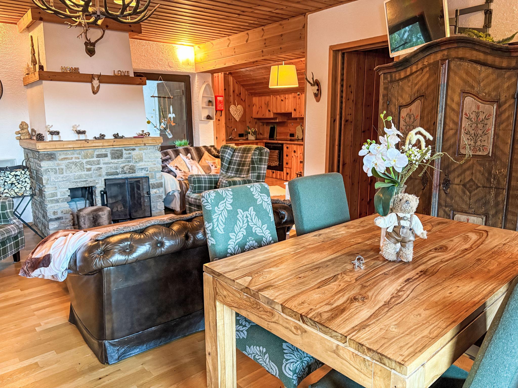 "Forsthaus Chalet", 6-room house 140 m2. Tasteful and wooden furniture furnishings: 2 double bedrooms. Living/dining room with open-hearth fireplace, dining table and TV (flat screen). Open kitchen (oven, dishwasher, 4 ceramic glass hob hotplates, toaster, kettle, electric coffee machine). Bath/WC, sep. WC. Electric heating. Upper floor: 2 double bedrooms. Living/dining room with open-hearth fireplace, dining table and TV (flat screen). Open kitchen (oven, dishwasher, 4 ceramic glass hob hotplates, toaster, kettle). Sep. WC, bath/shower/WC. Electric heating. Comfortable furnishings in the country house style. Large balcony, large terrace. Terrace furniture, balcony furniture. Very beautiful view of the mountains. Facilities: Internet (WiFi, free). Please note: suitable for families. Non-smokers only. Maximum 2 pets/ dogs allowed. Smoke alarm. No internal connecting door between the separated properties. No internal connecting door between the floors. 50511-000054-2020