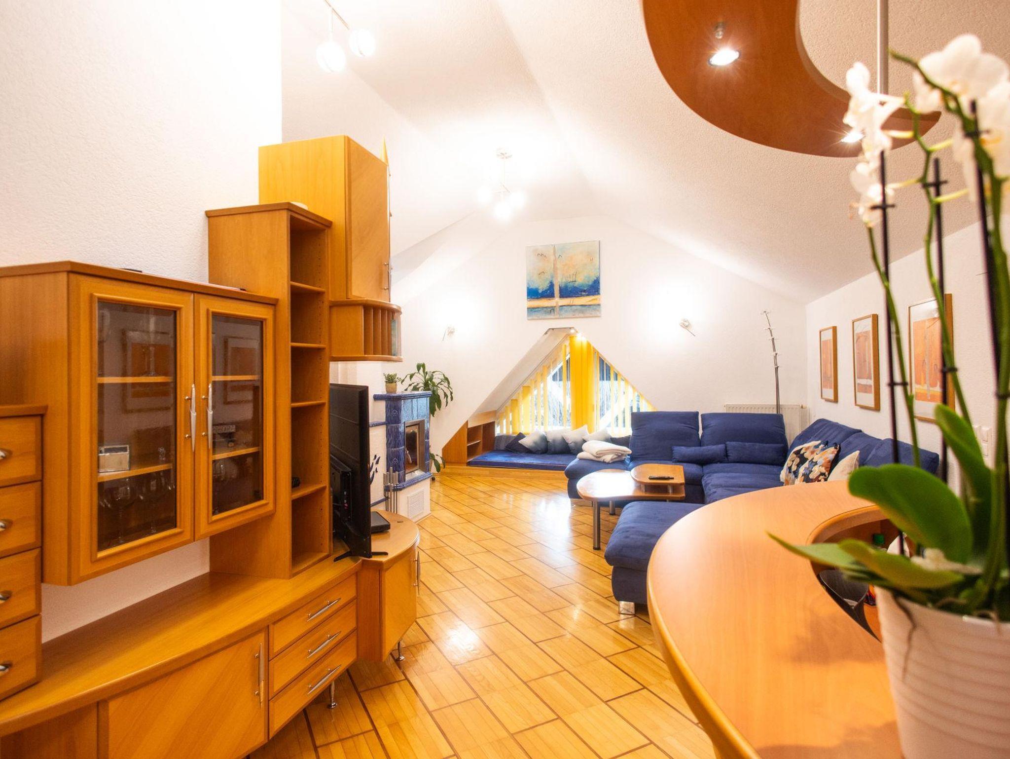 Willkommen in unserer 140 qm großen Dachgeschosswohnung, perfekt für Familien, Paare oder Freunde. Die ruhige Lage und die großzügige Außenanlage machen sie zum idealen Rückzugsort für Erholung und Aktivurlaub. Hier finden bis zu 4 Personen + 1 Kleinkind Platz zum Wohlfühlen.