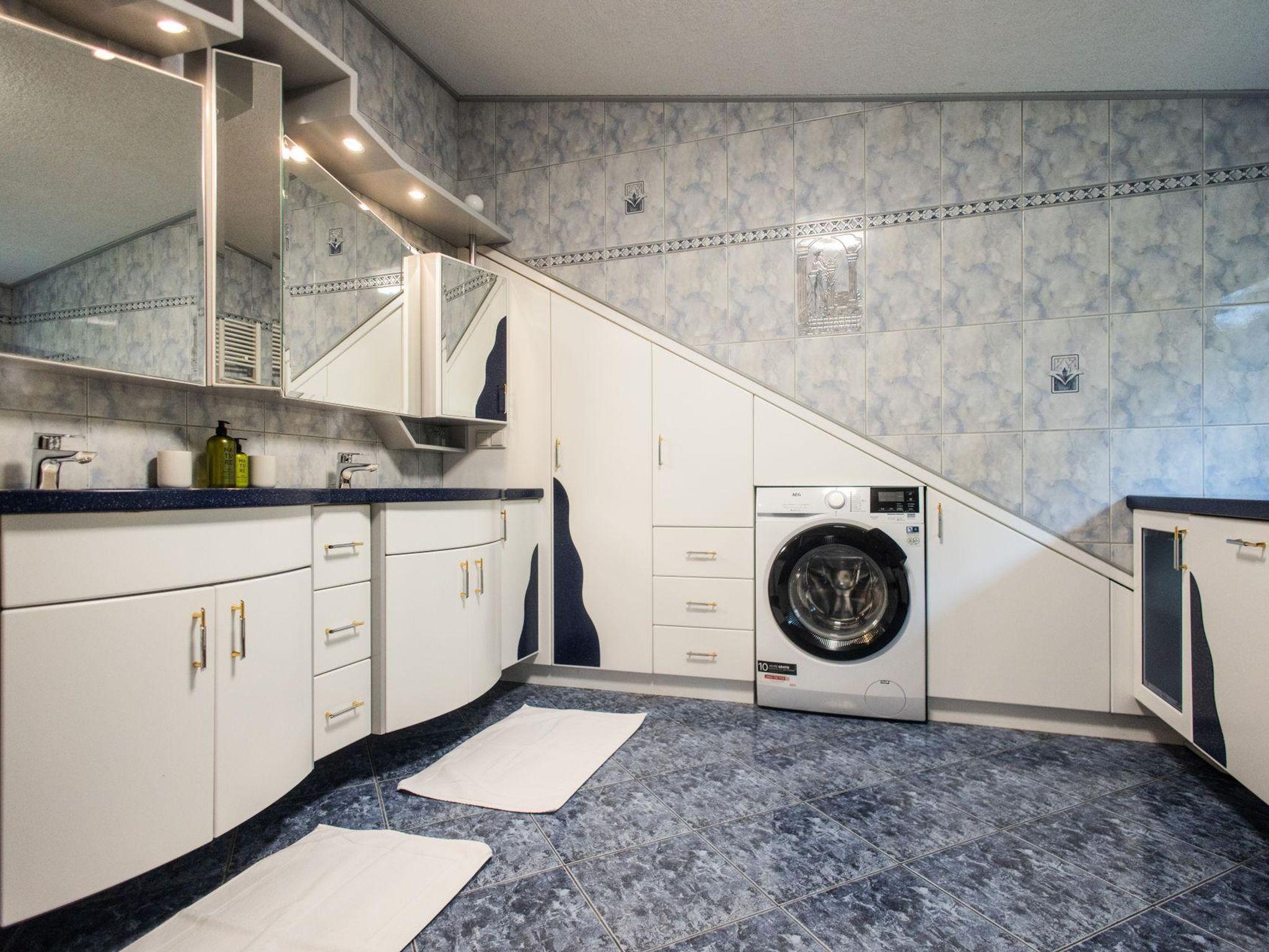 ? Modernes Bad mit Dusche & Doppelwaschbecken, separates WC