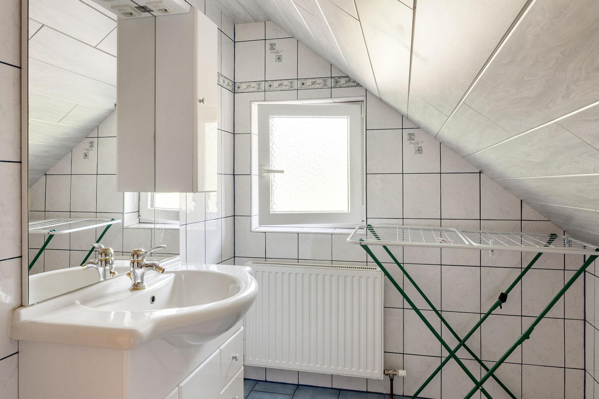 På 1. etage: (køkken-alrum(komfur(Komfur med to kogeplader), kaffemaskine, mikrobølgeovn, køle-fryseskab, parkering), soveværelse(dobbeltseng), soveværelse(dobbeltseng), Soveværelse med badeværelse(dobbeltseng, køjeseng, Fjernsyn(parabol), bruser, toilet), badeværelse(bruser, toilet)) have, havemøbler, parkering
