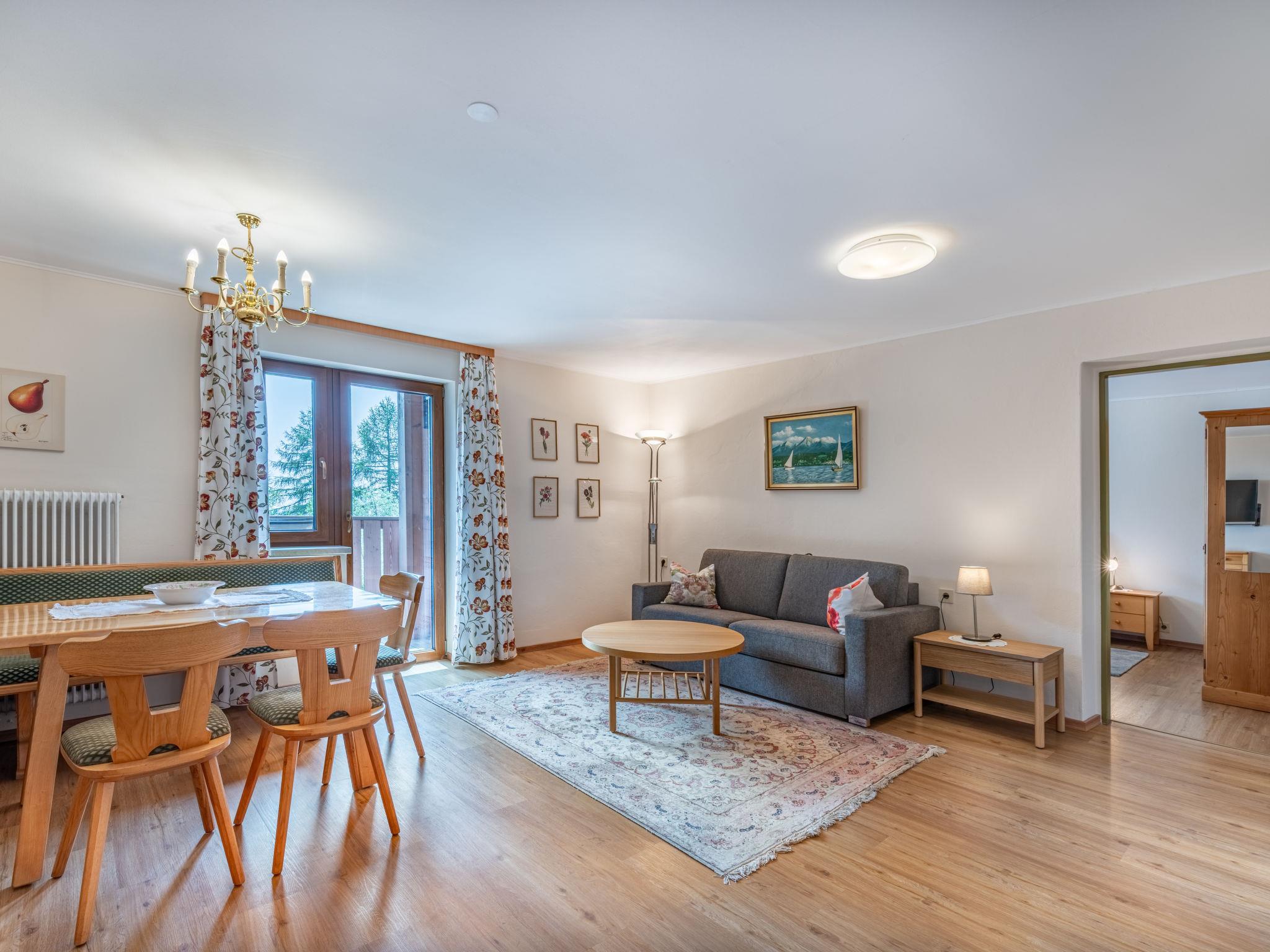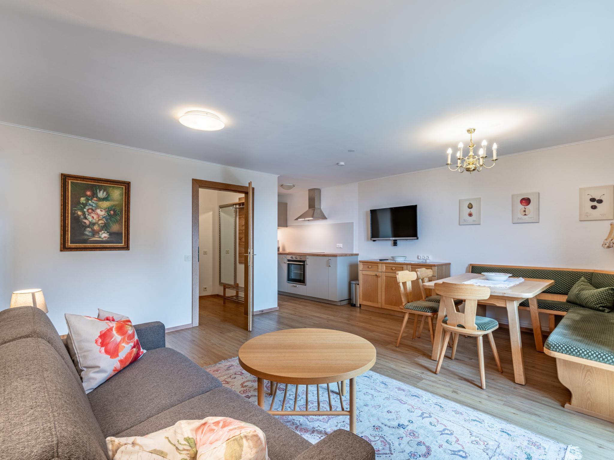 "Veitsberg", 2-room apartment 50 m2, on the upper floor. Object suitable for 4 adults. Renovated in 2025: living/dining room with 1 double sofabed (140 cm, length 200 cm), dining nook, satellite TV and flat screen. Exit to the balcony. 1 double bedroom. Kitchenette (dishwasher, electric coffee machine). Shower/WC. Wooden floors. Comfortable furnishings in the country house style. Small balcony. Balcony furniture. Very beautiful panoramic view of the mountains and the countryside. Facilities: baby cot, hair dryer. Internet (WiFi, free). Please note: suitable for families. Non-smoking house. Smoke alarm, fire extinguisher.