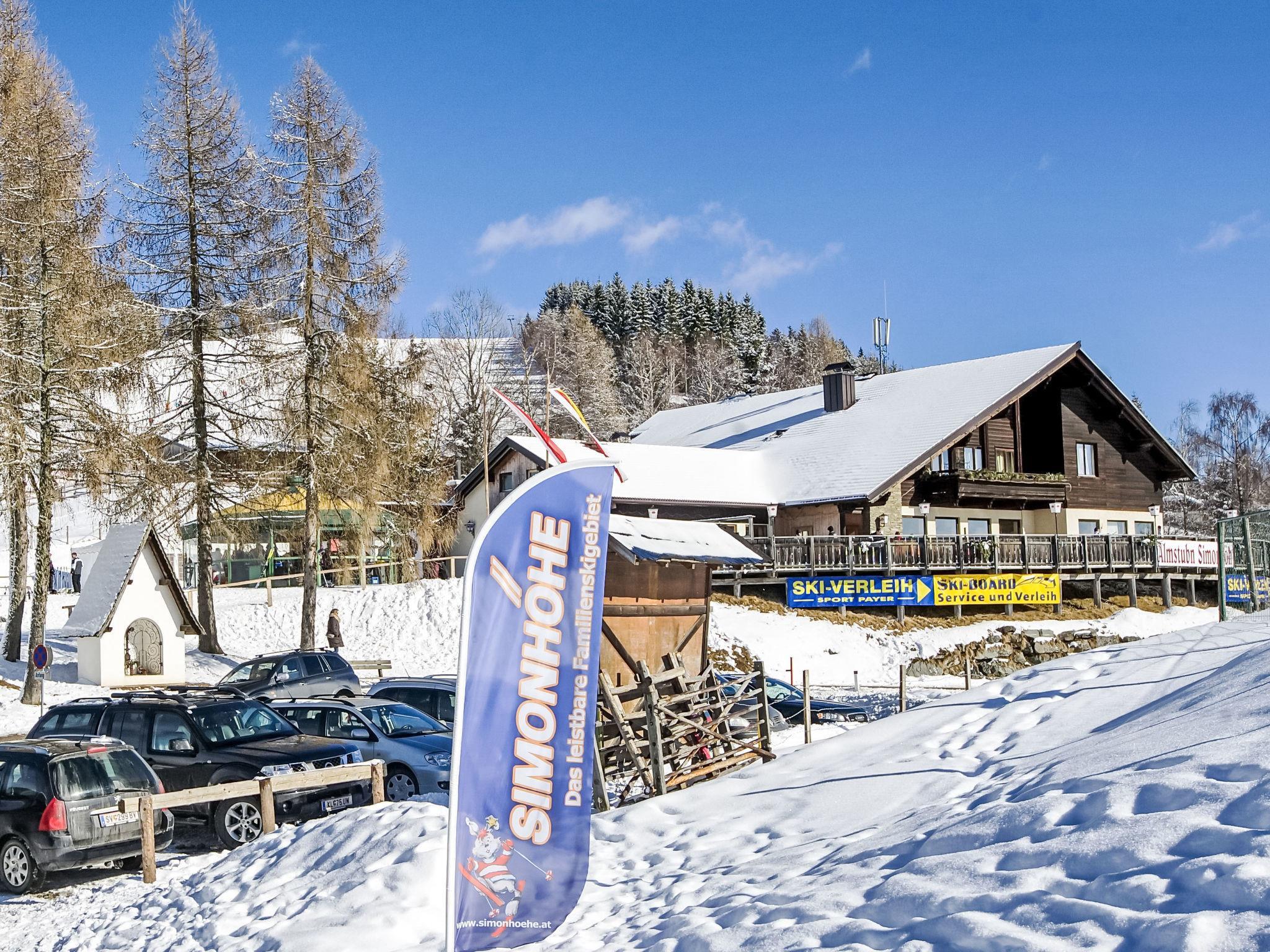 House "Simonhöhe", 2 storeys, surrounded by trees and meadows. 4 apartments in the property. Above St.Urban, in the district of Simonhöhe, 50 m from the edge of the forest, 7 km from the lake, 30 m from the skiing area. In Winter: please take snow chains. Parking. Supermarket 5 km, restaurant 100 m, bicycle rental 200 m, bus stop "Simonhöhe Bikepark" 200 m, bathing lake "St. Urban See" 7 km. Riding stable 6 km, walking paths from the house, cycle lane 50 m, ski lift, slopes 40 m, ski rental 10 m, ski school, children's ski school, cross country ski track 40 m. Nearby attractions: Minimundus die kleine Welt am Wörthersee 33 km, Moosburg Sommerrodelbahn 25 km, Burg Landskron Affenberg & Greifvögel 37 km. Well-known ski regions can easily be reached: Simonhöhe, Gerlitzen 40 km, Bad Kleinkirchheim 40 km. Well-known lakes can easily be reached: Maltschacher See 14 km, Wörthersee 29 km, Ossiacher See 29 km. Hiking paths: ca 100km Wanderwege von 8-28km Länge, 10 Mountainbike-Trails und Kids Area, Mountain-Cart über die Skipisten. Please note: suitable for families. In case of good snow conditions, the house is accessible on skis. Loading and unloading of baggage is possible at the holiday house. Additional accommodations can be booked. Property ref. 300.1,2,3,4 is situated on the same property.