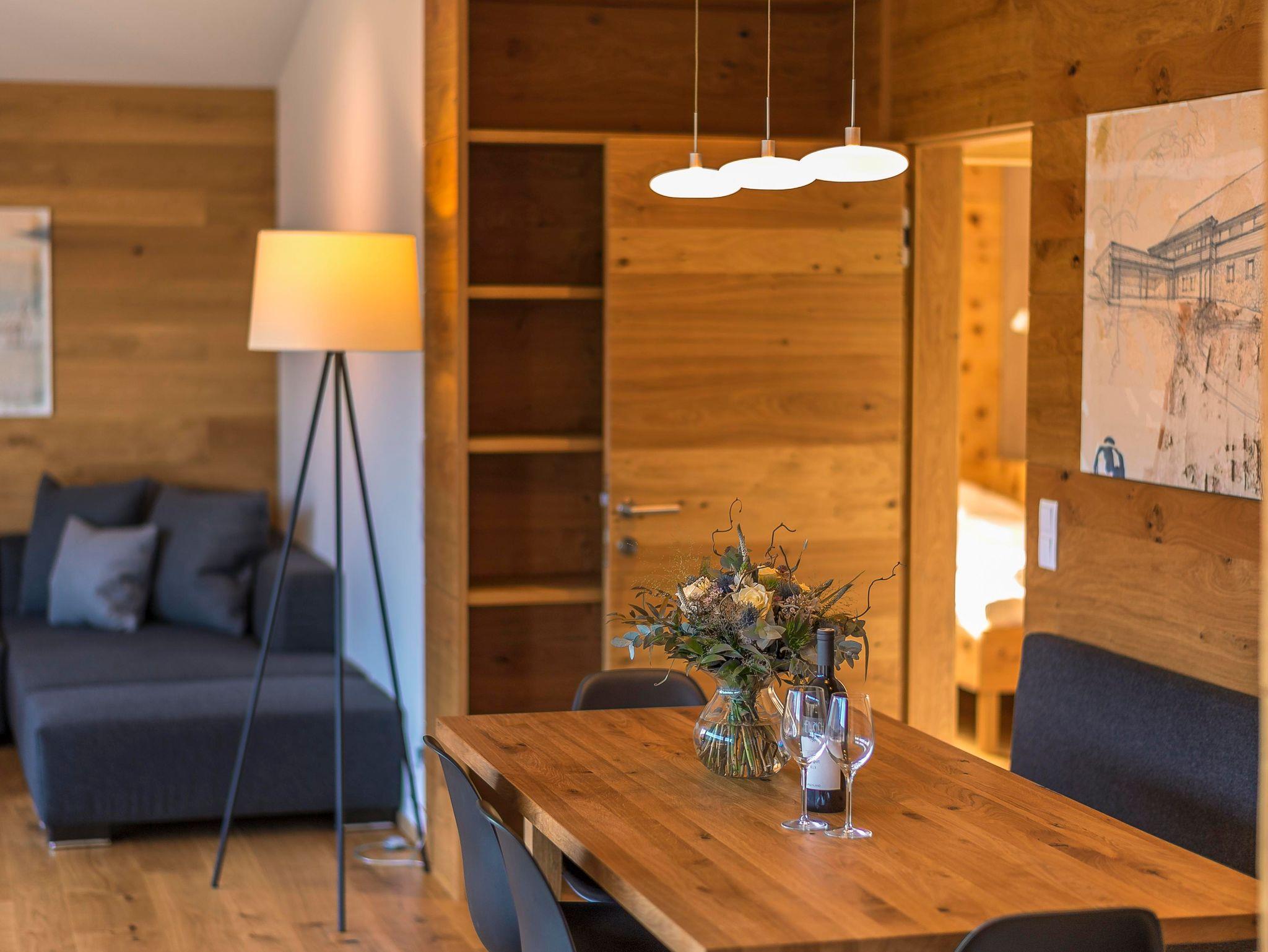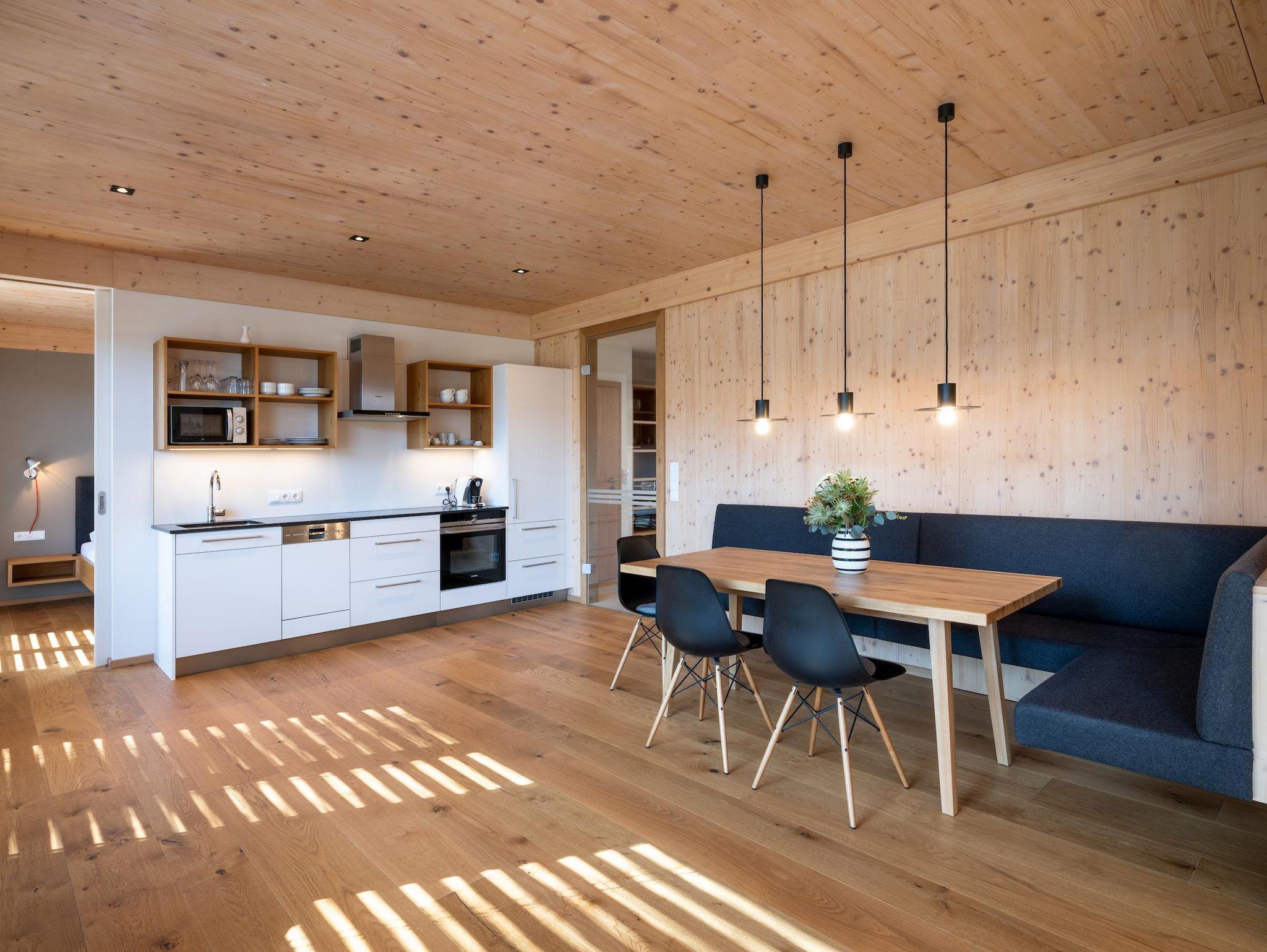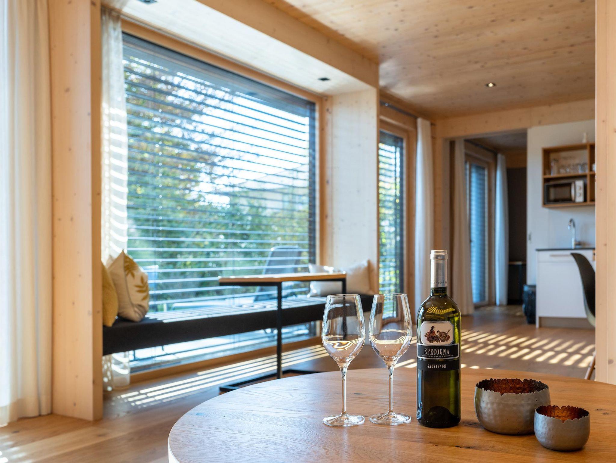 Die neue Gartenwohnung mit Seeblick ist separat erschlossen und liegt südwestlich des Hauptgebäudes. Sie verfügt über eine großzügige Terrasse und eigenen Gartenbereich. Der gemütliche Wohnraum ist nach Süden zu Terrasse und See ausgerichtet und verfügt über eine Küche, einen Essbereich mit Eckbank und den Wohnbereich, der mittels Schiebetüre getrennt werden kann, wodurch er zwei zusätzliche getrennte Schlafmöglichkeiten bietet.