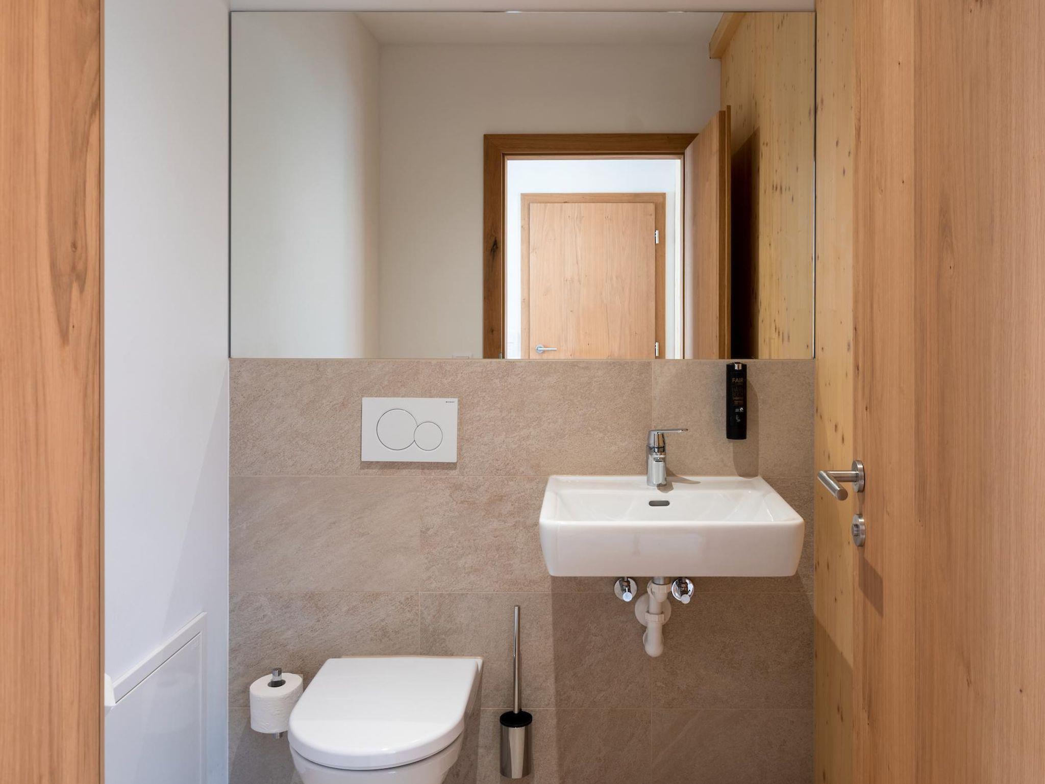 Das Bad verfügt über eine Badewanne, Dusche und Doppelwaschtisch, das WC ist getrennt. Edle Details, Designermöbel, sowie ein Pop-Out Fenster, das zum Verweilen einlädt, sorgen für ein besonderes Wohnerlebnis.