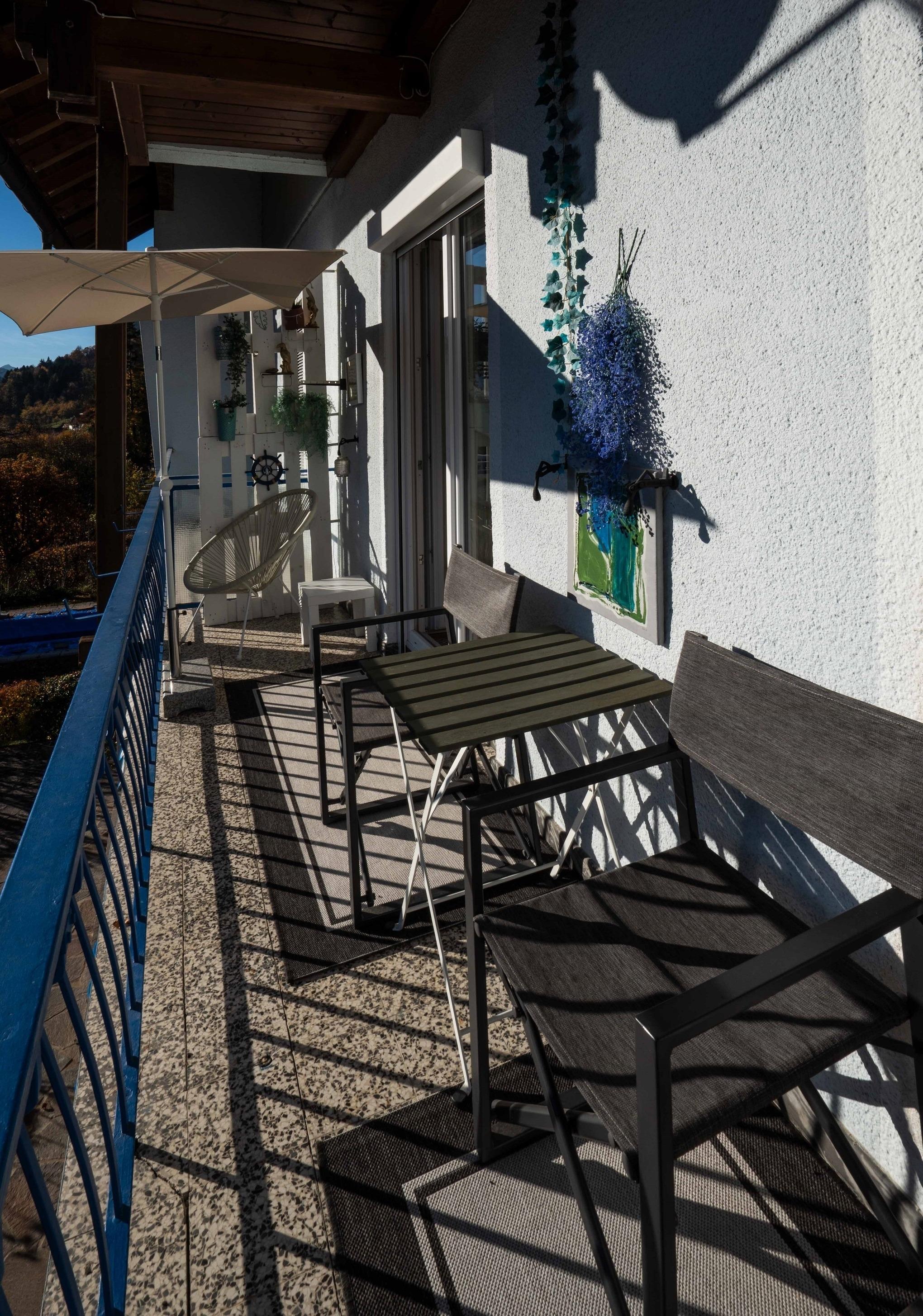 Im ersten Stock des Hauses finden Sie die Ferienwohnung Lichtblick mit Sonnenbalkon und Blick auf den Pool im parkähnlichen Garten, sowie den Ossiacher See und die umgebende Berglandschaft.