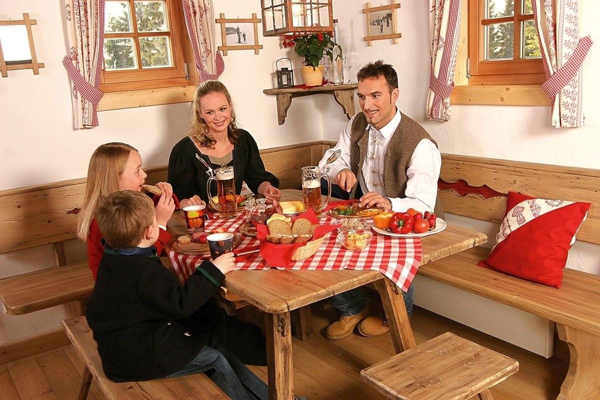 Im Wohnbereich sorgt ein traditioneller Kachelofen für urige Hüttenatmosphäre, während die voll ausgestattete Küche, WLAN, SAT-TV sowie Waschmaschine und Trockner modernen Komfort bieten. Für Entspannung sorgt der kleine Wellnessbereich im Keller mit Sauna und Dampfbad (gemeinschaftlich genutzt mit dem Nachbarhaus Alpine Lodges LISA). Balkon, Terrasse, Garten mit Grill und Liegewiese runden das Urlaubsangebot perfekt ab.