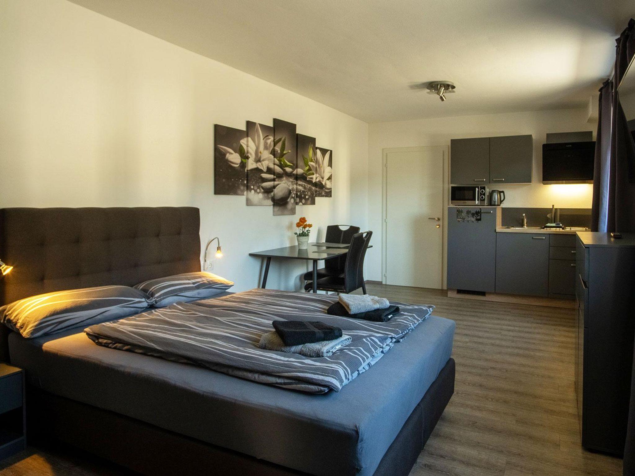 Unser 29m² großes Studio-Apartment ist perfekt für Singles oder Pärchen, die eine komfortable Auszeit genießen möchten. Die moderne Ausstattung umfasst eine voll ausgestattete Küche, ein stilvolles Badezimmer und einen offenen Wohn-Schlafbereich. Entspannen Sie auf der privaten Terrasse und genießen Sie die idyllische Umgebung. Ideal für einen erholsamen Aufenthalt in gemütlicher Atmosphäre!