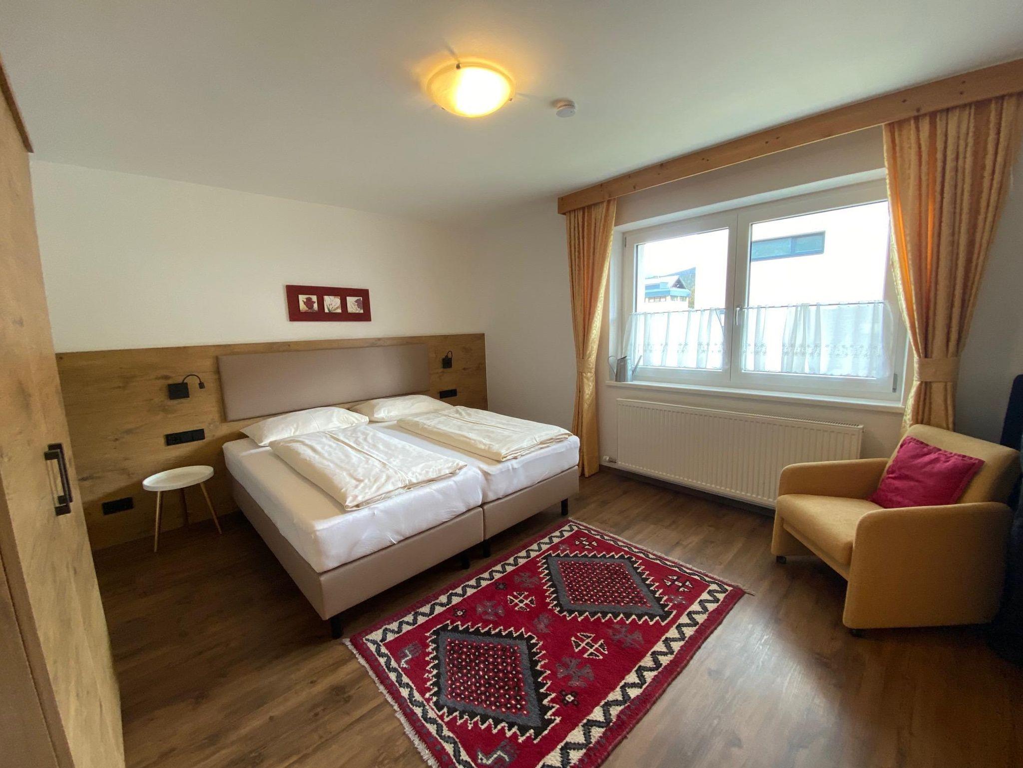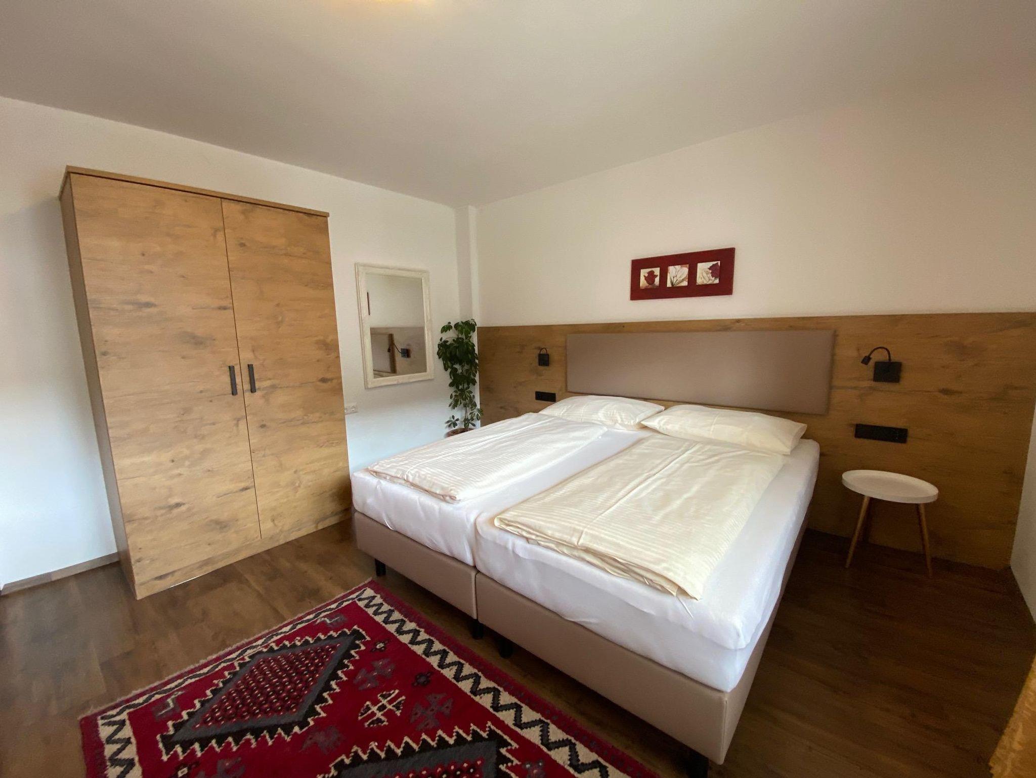 60 m² bestehend aus: 1 modernem Doppelzimmer mit Boxspringbetten durch eine Schiebetüre getrennt vom schönen Wohnraum mit gemütlicher Erkeressecke und Sat/TV im Tiroler Stil. Komplett ausgestattete Wohnküche mit Minibackofen, Geschirrspüler und schöner Essecke ebenfalls im Tiroler Stil. Das Badezimmer ist ausgestattet mit einer ebenerdigen Dusche, WC separat. Alle Wohnbereiche sind mit Parkett ausgelegt. Auch bestens geeignet für Gäste mit leichter Gehbehinderung (3 Stufen)!