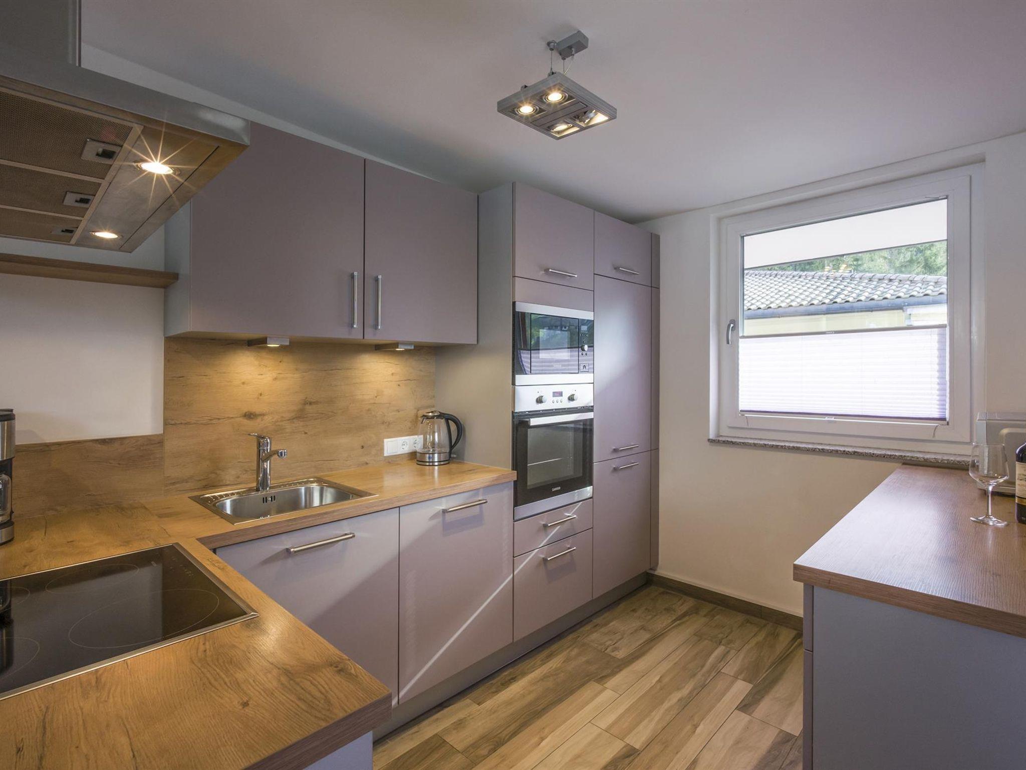 Die Ferienwohnungen sind modern eingerichtet mit Fliesenböden im Holzdekor, Fußbodenheizung und komfortabler Wohnraumlüftung. Die Einrichtung ist hochwertig und aufeinander abgestimmt. Alle Einheiten verfügen über voll ausgestattete Küchen mit Essgeschirr und Küchenutensilien.