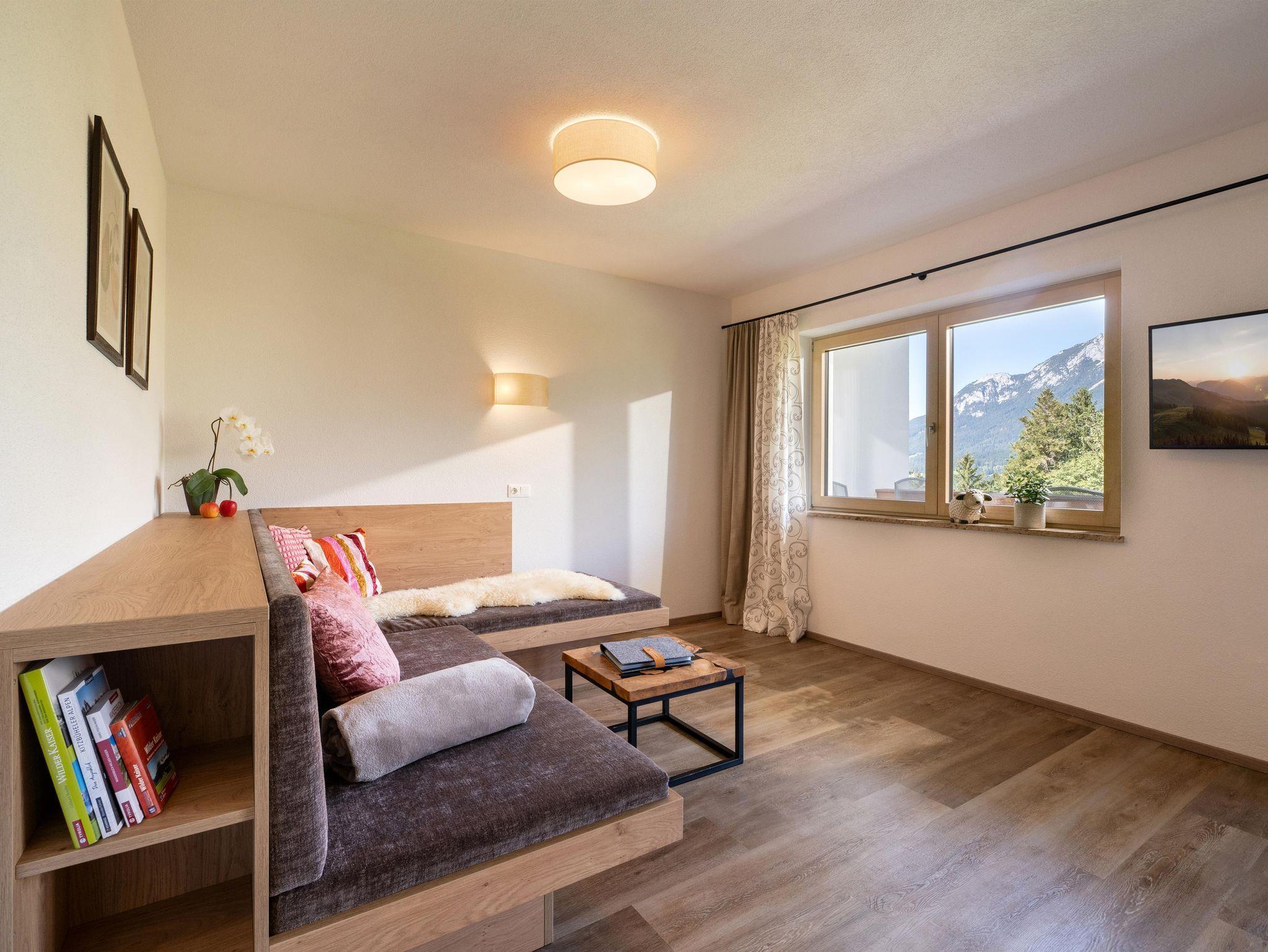 Egal ob als Familie oder mit Freunden. Die Ferienwohnung mit zwei getrennten Schlafzimmern und großzügiger Wohnküche sorgt für einen entspannten Urlaub. Der Blick auf den Wilden Kaiser ist einmalig.
