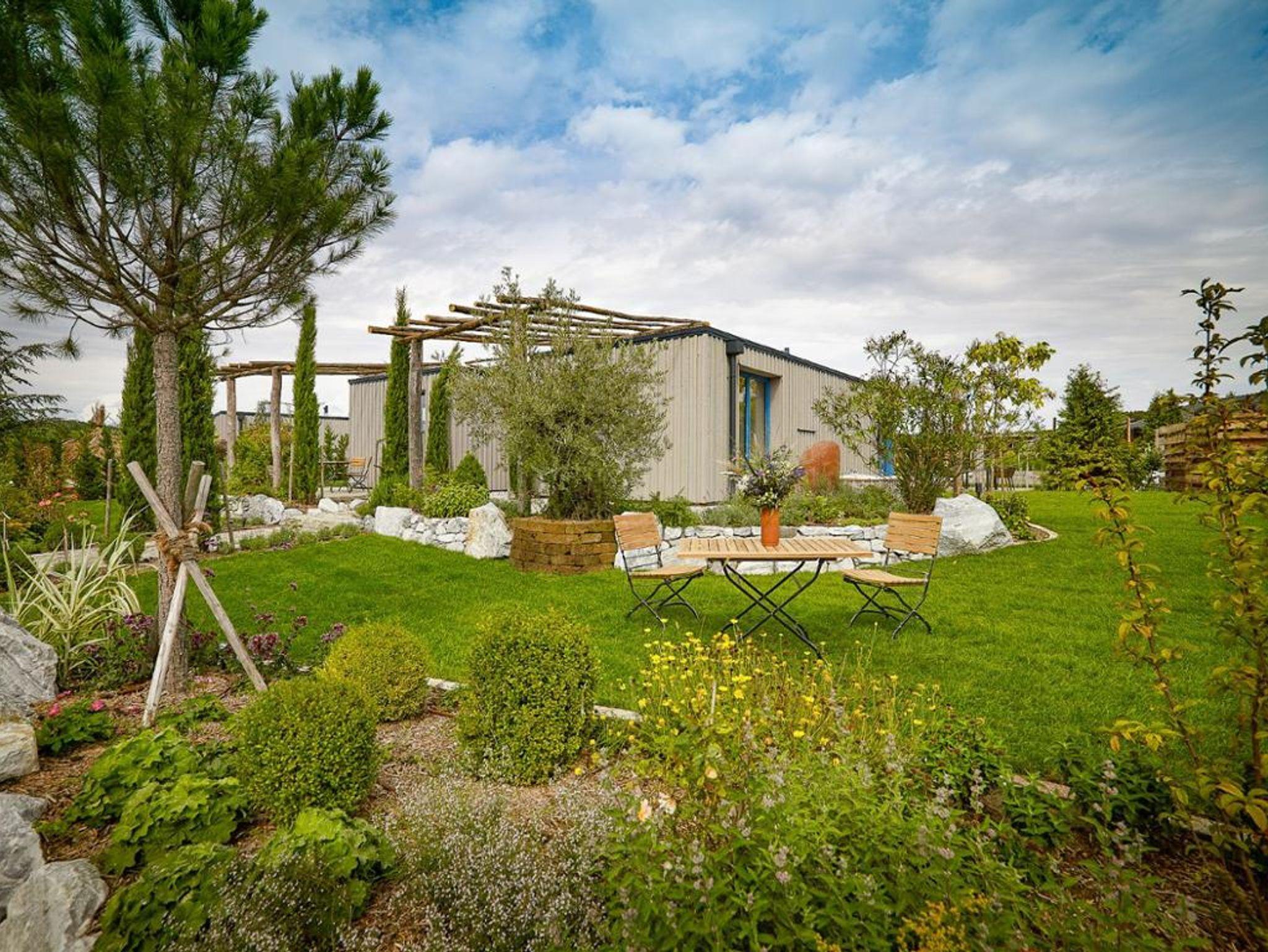 Die Sehnsucht nach der Natur, nach Einfachheit, nach Ruhe, nach Entdeckerlust und erdigen Berührungen findet hier ihre Erfüllung. Sich wieder spüren, runterkommen und Freude an der Natur erleben. Leben im Garten - und das auf die erdenklich beste und schönste Weise, soll hier dem Gast ermöglicht werden. 20 Chalets in vier verschiedenen Häusertypen, vom Winzerstöckl bis zum großzügigen Landhaus, laden zu einem ganz besonderen Urlaubserlebnis ein. Das Highlight jeder Wohneinheit bildet der private, thematisch gestaltete Garten. So wird ein Gast im „Garten der Liebe“ wohnen, ein anderer im naturnahen „Waldviertel Garten“. Auch werden toskanisches Flair mit Olivenbäumen, Brunnen und Zypressen oder asiatische Anmutungen mit Bonsais, Bambus und der Kirschblüte zum Träumen einladen. Bauerngärten mit Beerensträuchern sind ebenso Thema wie moderne Gartenarchitektur mit Steinsetzungen und kunsthandwerklichen Accessoires. Das Zentrum der Anlage bildet der 3.400 m² große, von jedem Garten separat begehbare, Naturbadeteich. Zur weiteren Entspannung verfügt jedes Chalet auch über eine private Sauna, eine Feuerwasserwanne oder eine „heiße Badewanne“ unter freiem Himmel. Im Naschgarten können verschiedene Früchte von Mai bis November zum Verkosten selbst gepflückt werden.