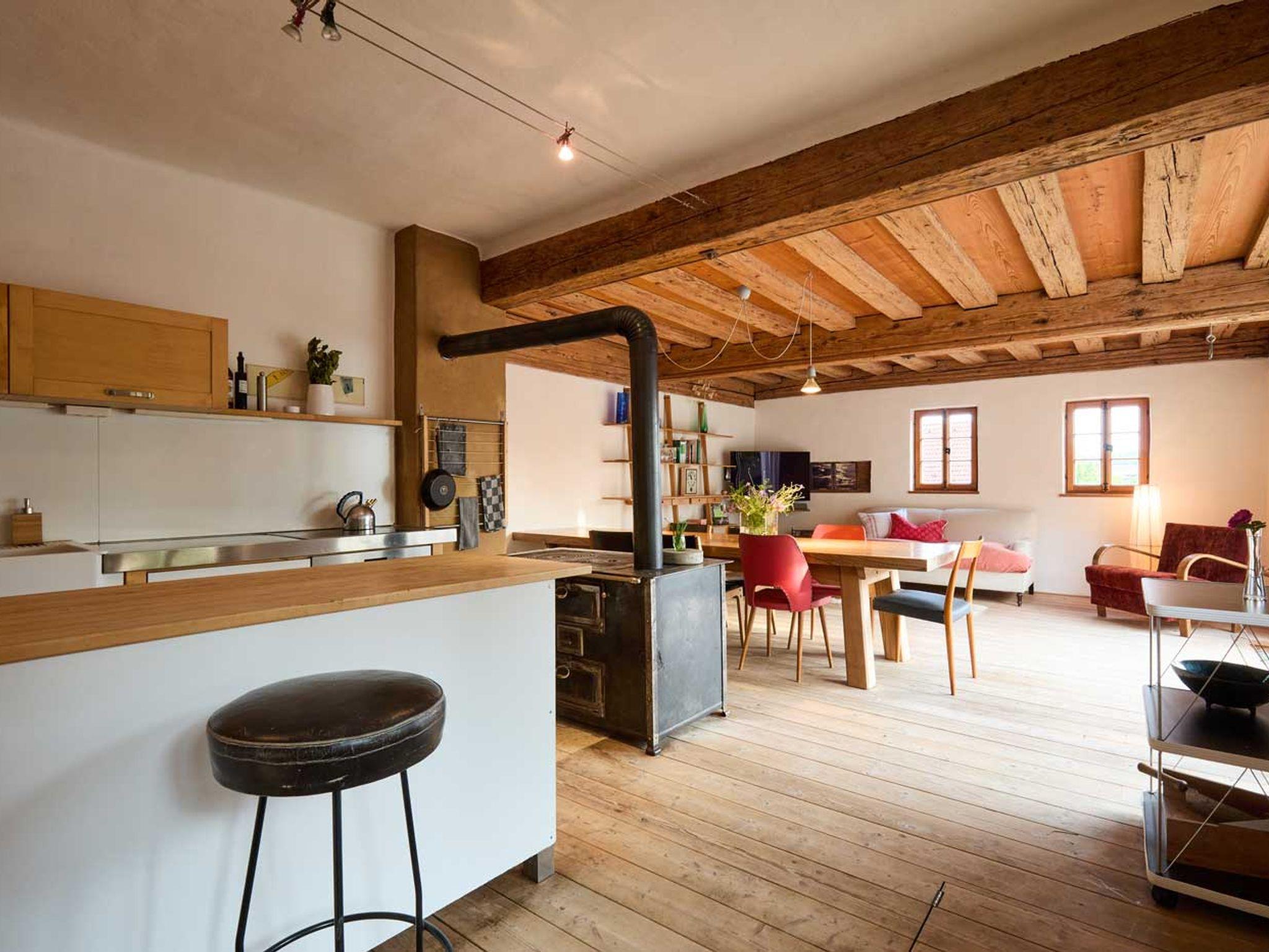 Das Haus eignet sich besonders gut für Familien mit Kindern sowie für Menschen, die einen gemeinsamen Ort der Stille und zur Meditation suchen. In den drei Schlafräumen mit je einem Doppelbett können bis zu sechs Personen übernachten, zusätzlich im leeren Raum noch bis zu zwei Personen (auf Matratzen auf dem Boden). Die Räume sind mit Lehmputz verputzt, was auch im heißen Hochsommer ein angenehmes Raumklima schafft. Der Innenhof, das Haus und weite Teile des Gartens sind nicht einsehbar, gleichzeitig hat man selbst einen Ausblick in eine Streuobstwiese.