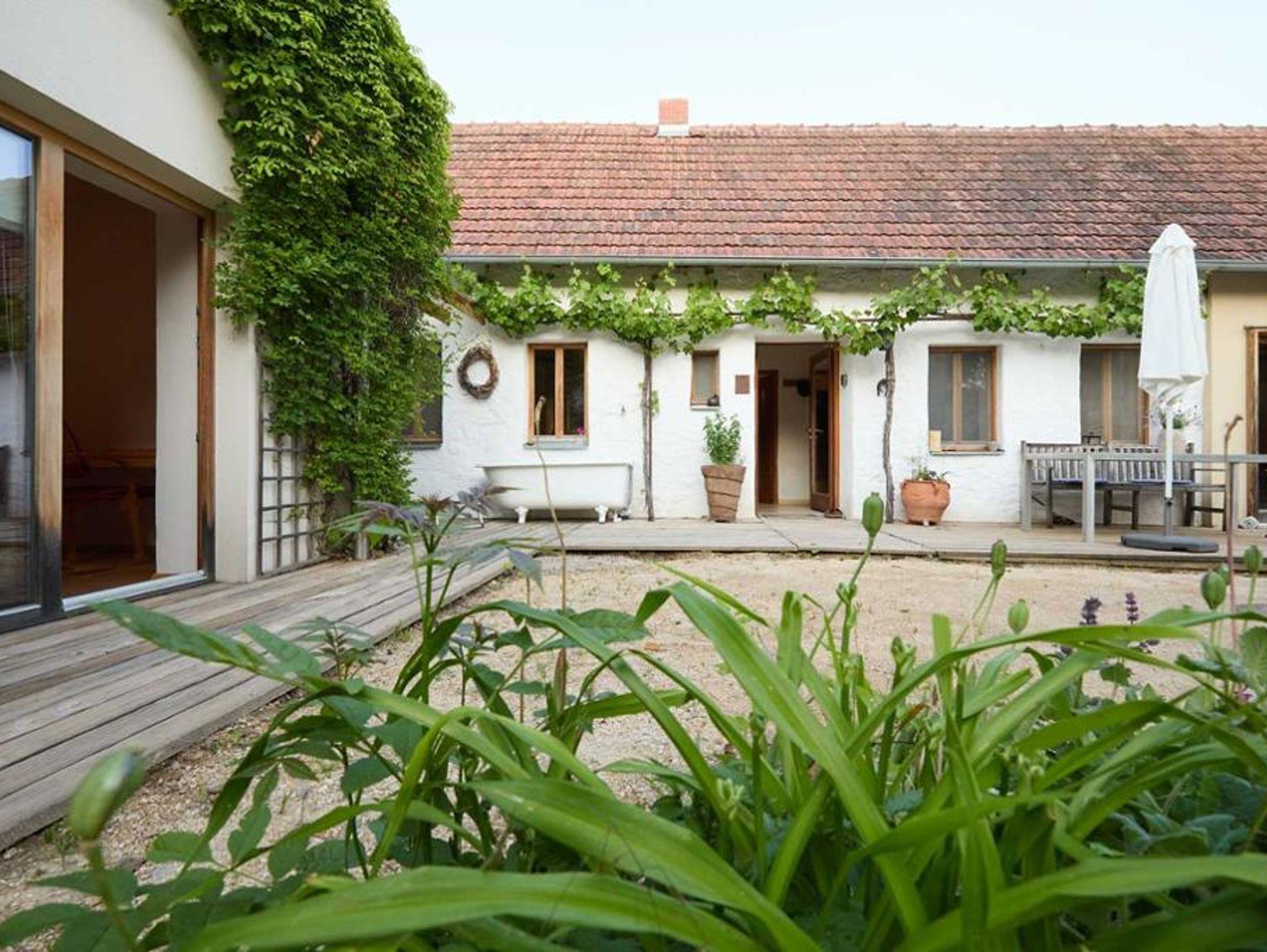 Ein Haus zum Energie tanken mitteln in der Natur. Mitten im Ort und doch zurückgezogen. In der Nacht mit Blick auf die Sterne. Untertags mit Sonnen- oder Schattenecken. Das sanierte alte Winzerhaus mit neuem Zubau liegt ebenerdig und ist auf einen sonnigen Innenhof hin ausgerichtet. Das Ferienhaus ist großzügig angelegt und bietet genügend Platz für Familien und oder eine Gruppe von Menschen, die gemeinsam Ferien oder ein Retreat verbringen möchten. Das Haus besteht aus drei Schlafzimmer (für je zwei Personen), einem großen leeren Raum und einer Wohnraumküche sowie einem Badezimmer und zwei getrennte WC´s.