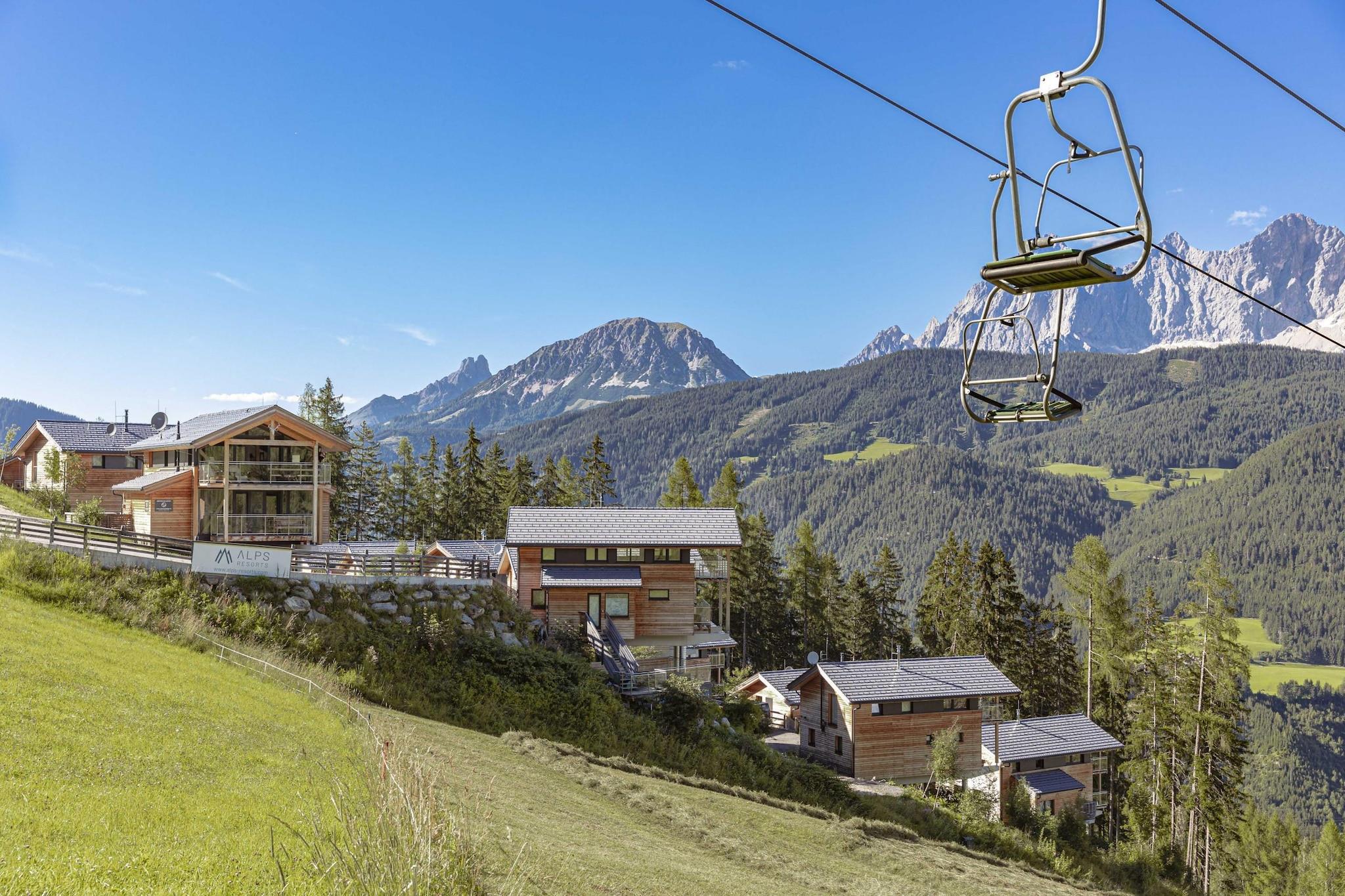 "Oplev luksus og afslapning i denne førsteklasses hytte, der tilbyder 120 m² smukt designet boligareal, der kan rumme op til 9 gæster. Denne enestående hytte har fire rummelige soveværelser, hver med sit eget en-suite badeværelse udstyret med bruser. Indkvarteringen omfatter fire dobbeltværelser senge, med et af soveværelserne også med en enkeltseng for ekstra alsidighed Nyd den ekstra luksus ved en privat sauna og et udendørs spabad, perfekt til at slappe af efter en dag på pisterne eller udforske de fantastiske omgivelser. Træd ind i det åbne køkken, fuldt udstyret til at opfylde alle dine kulinariske behov. Køkkenet omfatter en keramisk kogeplade, ovn, opvaskemaskine og køleskab med fryser, sammen med væsentlige redskaber og apparater såsom en brødrister, elkedel og kaffemaskine. Et praktisk startsæt, inklusive opvaskemaskiner, opvaskemiddel, en svamp, affaldsposer, en rengøringsklud og et viskestykke, vil blive leveret ved din ankomst for at gøre dit ophold så problemfrit som muligt. Hytten har to møblerede altaner, hvor du kan nyde en betagende udsigt over det majestætiske Dachstein-bjerg og den maleriske Enns-dal. Beliggende direkte på skiløjpen, tilbyder det ubesværet adgang til ski-in/ski-out i vintermånederne og nem adgang til vandrestier om sommeren. Nyd de moderne bekvemmeligheder med gratis Wi-Fi og satellit-tv til både afslapning og underholdning. Gæster vil også modtage Schladming-Dachstein Summer Card, gyldigt fra midten af maj til begyndelsen af november, hvilket tilføjer ekstra værdi til dit ophold. Book denne premium chalet for en uforglemmelig oplevelse på en af de mest fantastiske steder i Alperne. "