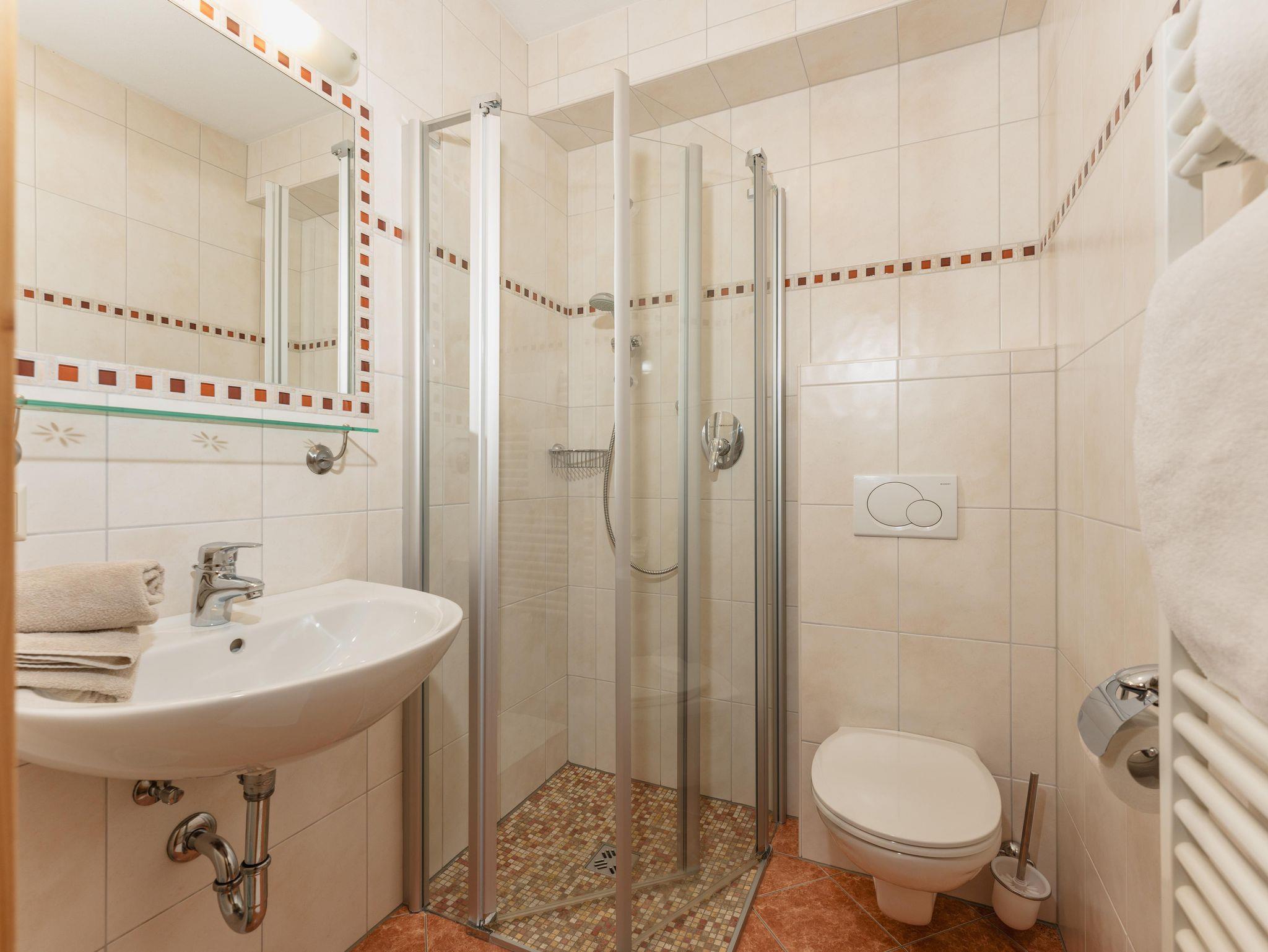 Die zwei größeren Ferienwohnungen bieten je 2 Schlafzimmer und 2 Bäder und in den kleineren befinden sich je 1 Schlafzimmer und 1 Bad. Ein Skiraum mit beheiztem Schuhtrockner finden Sie beim Gästehaus Sieder auch vor.