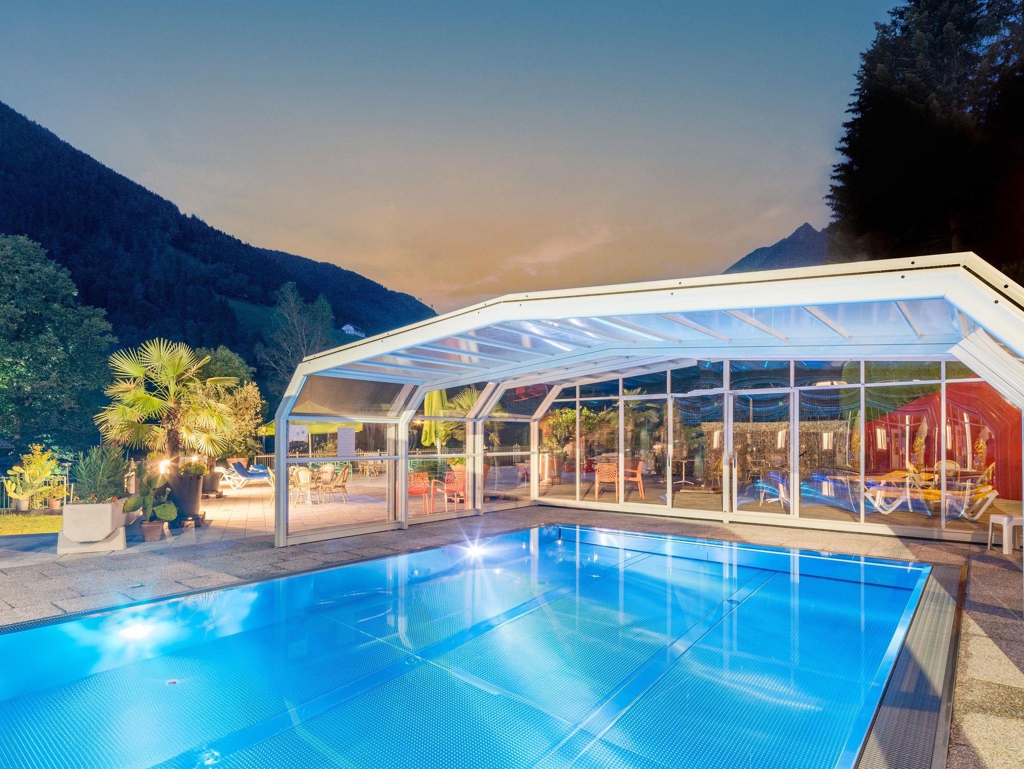 Tauchen Sie ein in unseren umfangreichen Wellnessbereich, der mit einer Biosauna, der Dampf-Aroma-Sauna und einem beheiztem Pool ausgestattet ist, perfekt für Entspannungsmomente nach einem langen Tag. Lassen Sie sich von unseren speziellen Massagen und Kosmektikangeboten verwöhnen oder entspannen Sie im Ruheraum. Für diejenigen, die besonders aktiv bleiben möchten, steht der Shuttlebus direkt neben dem Hotel für Sie bereit und bringt Sie innerhalb weniger Minuten zu den umliegenden Skigebieten und Wanderwegen. Perfekt präparierte Sandtennisplätze stehen Ihnen im Sommer zur Verfügung.