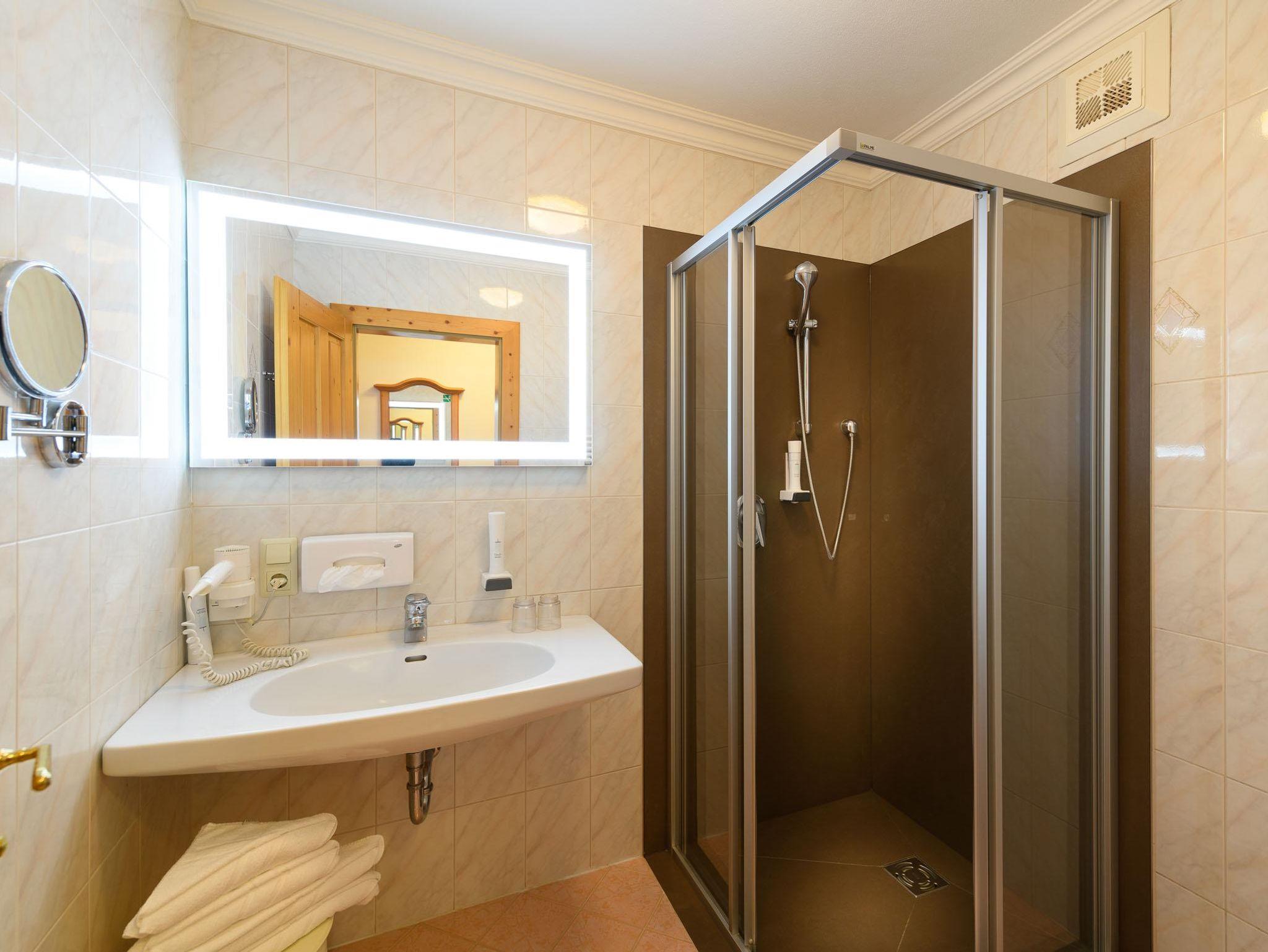 Tauchen Sie ein in unseren umfangreichen Wellnessbereich, der mit einer Biosauna, der Dampf-Aroma-Sauna und einem beheiztem Pool ausgestattet ist, perfekt für Entspannungsmomente nach einem langen Tag. Lassen Sie sich von unseren speziellen Massagen und Kosmektikangeboten verwöhnen oder entspannen Sie im Ruheraum. Für diejenigen, die besonders aktiv bleiben möchten, steht der Shuttlebus direkt neben dem Hotel für Sie bereit und bringt Sie innerhalb weniger Minuten zu den umliegenden Skigebieten und Wanderwegen. Perfekt präparierte Sandtennisplätze stehen Ihnen im Sommer zur Verfügung.