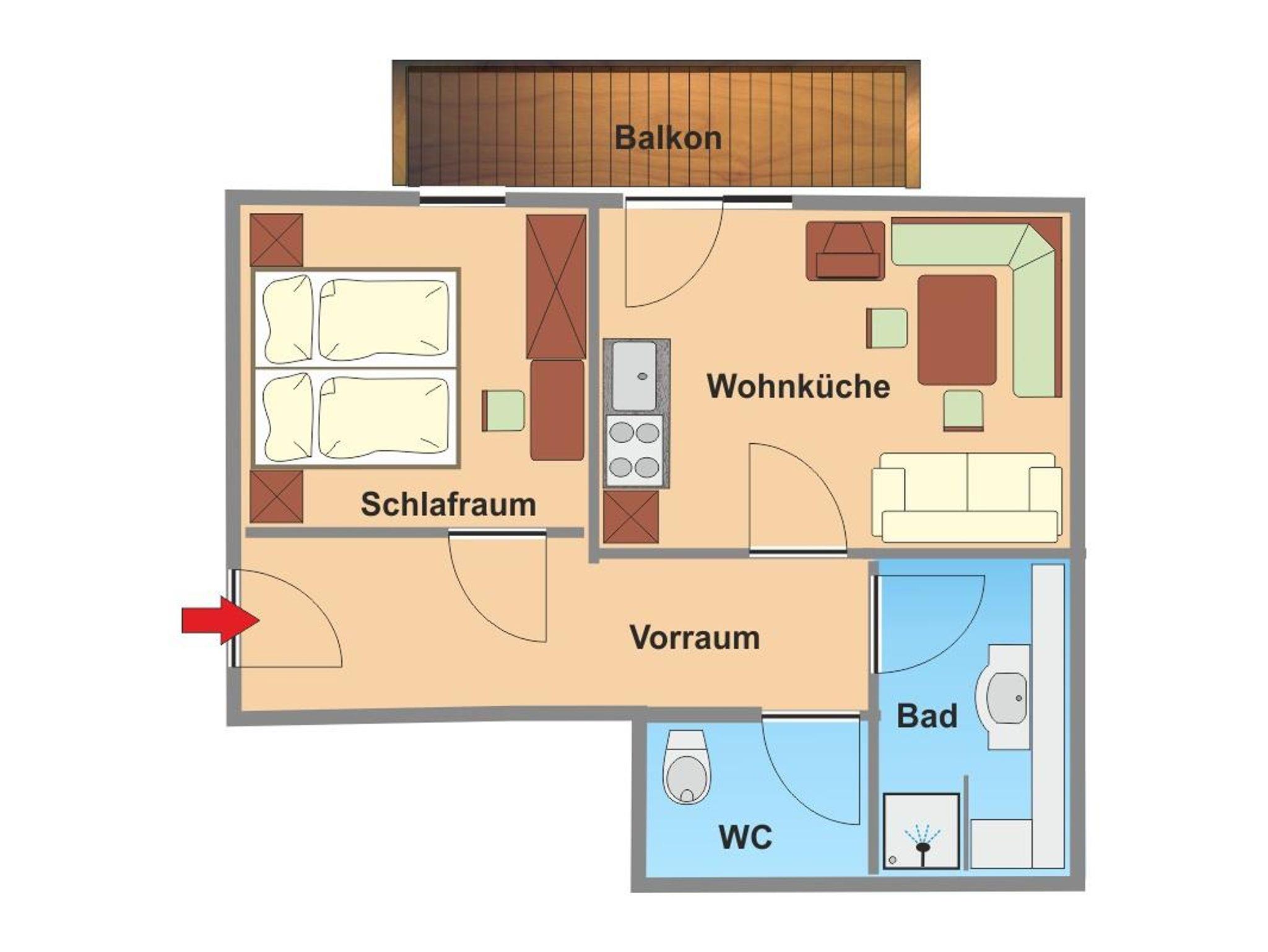 Appartements Royer, App. A2/2-Raum/40m²/DU, WC