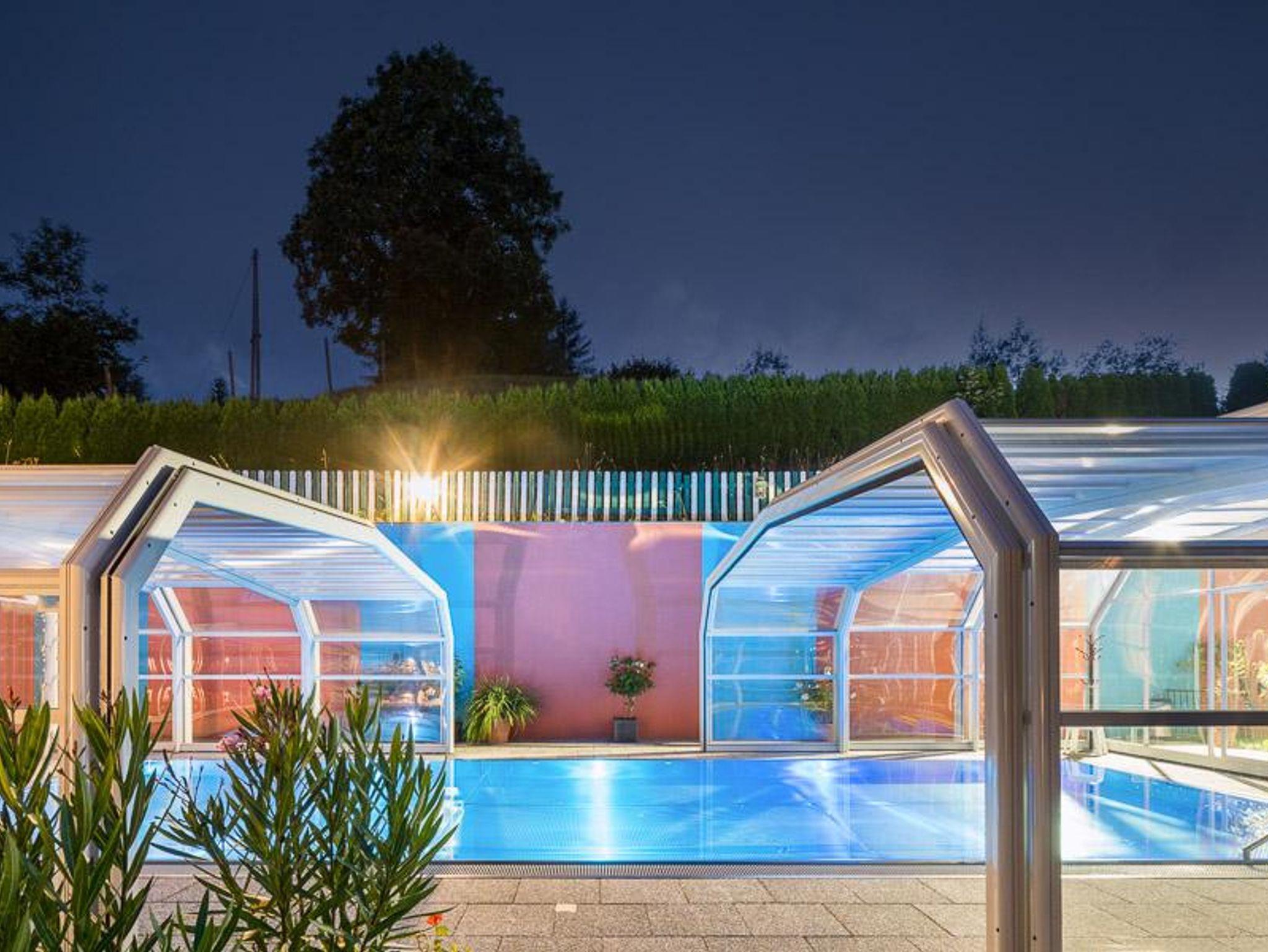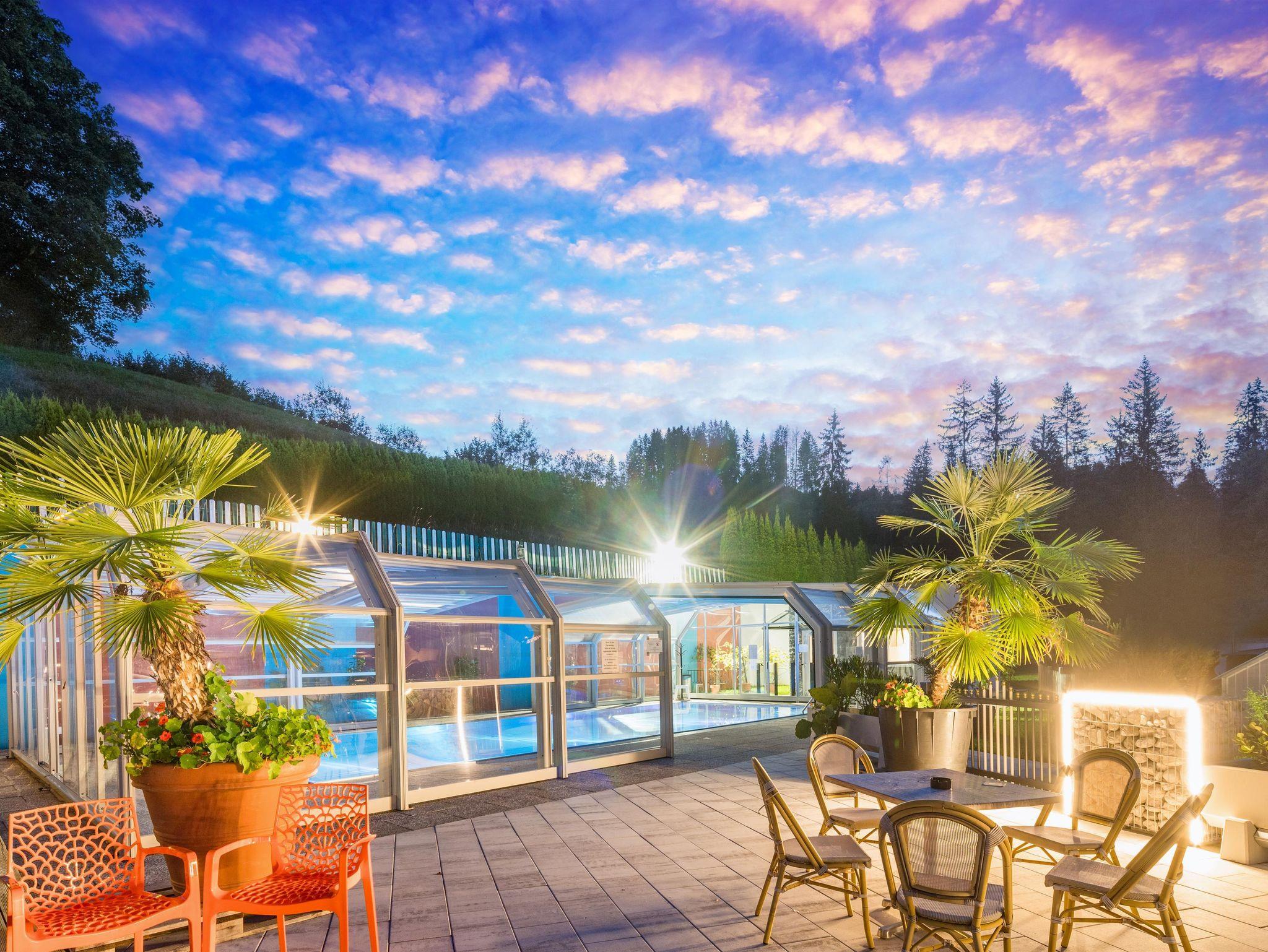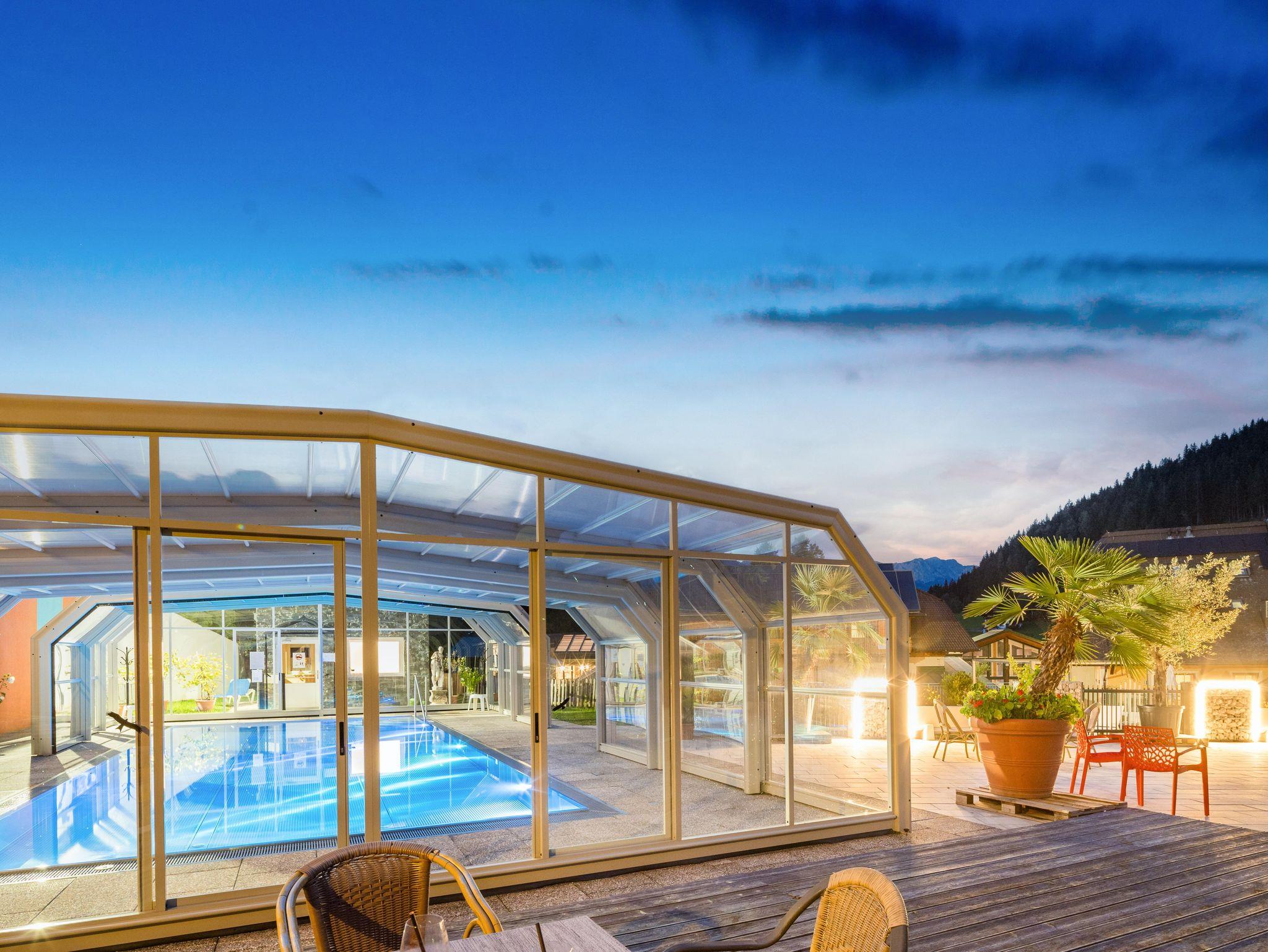 Tauchen Sie ein in unseren umfangreichen Wellnessbereich, der mit einer Biosauna, der Dampf-Aroma-Sauna und einem beheiztem Pool ausgestattet ist, perfekt für Entspannungsmomente nach einem langen Tag. Lassen Sie sich von unseren speziellen Massagen und Kosmektikangeboten verwöhnen oder entspannen Sie im Ruheraum. Für diejenigen, die besonders aktiv bleiben möchten, steht der Shuttlebus direkt neben dem Hotel für Sie bereit und bringt Sie innerhalb weniger Minuten zu den umliegenden Skigebieten und Wanderwegen. Perfekt präparierte Sandtennisplätze stehen Ihnen im Sommer zur Verfügung.
