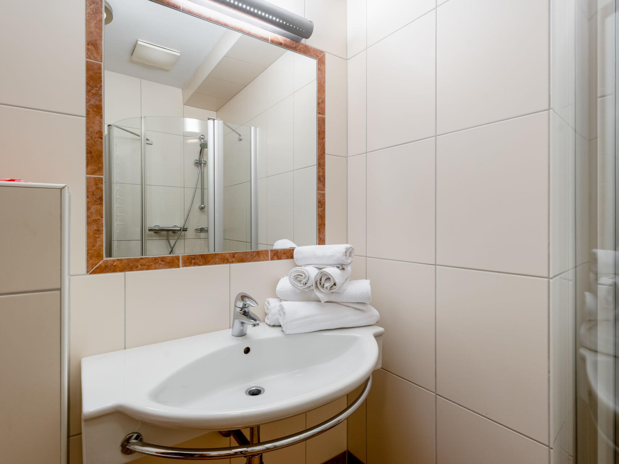 "Appartement 3", 3-room apartment 80 m2 on 2nd floor. Spacious and bright, comfortable furnishings: living/dining room with dining table and satellite TV (flat screen), electric heater. Small walk-through room, without window with 1 double bed. 1 double bedroom. Open kitchen (oven, dishwasher, 4 ceramic glass hob hotplates, toaster, kettle, microwave, electric coffee machine). 2 showers/WC, double hand-basin. Heating. Parquet floors. Facilities: Internet (WiFi). Parking (1 car) at 250 m. Please note: non-smokers only. Maximum 1 pet/ dog allowed. Smoke alarm.