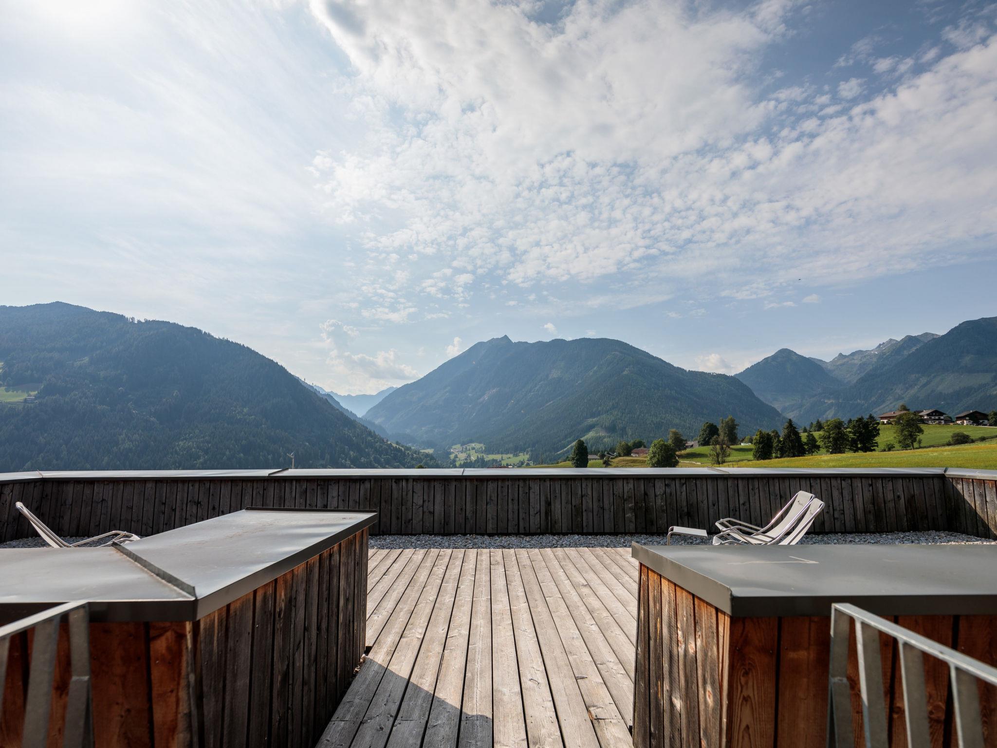 "mit 2 Schlafzimmern & Privater Sauna", 3-room apartment 100 m2. Bright, modern and tasteful furnishings: living/sleeping room with 1 double sofabed, dining nook and satellite TV (flat screen). 2 double bedrooms. Open kitchen (oven, dishwasher, 4 ceramic glass hob hotplates, kettle, microwave, electric coffee machine). Bath/WC, 2 sep. WC's. Heating. Terrace 40 m2. Terrace furniture. Beautiful view of the mountains and the countryside. Facilities: hair dryer. Internet (WiFi, free). The property is one of a type of property or apartment.