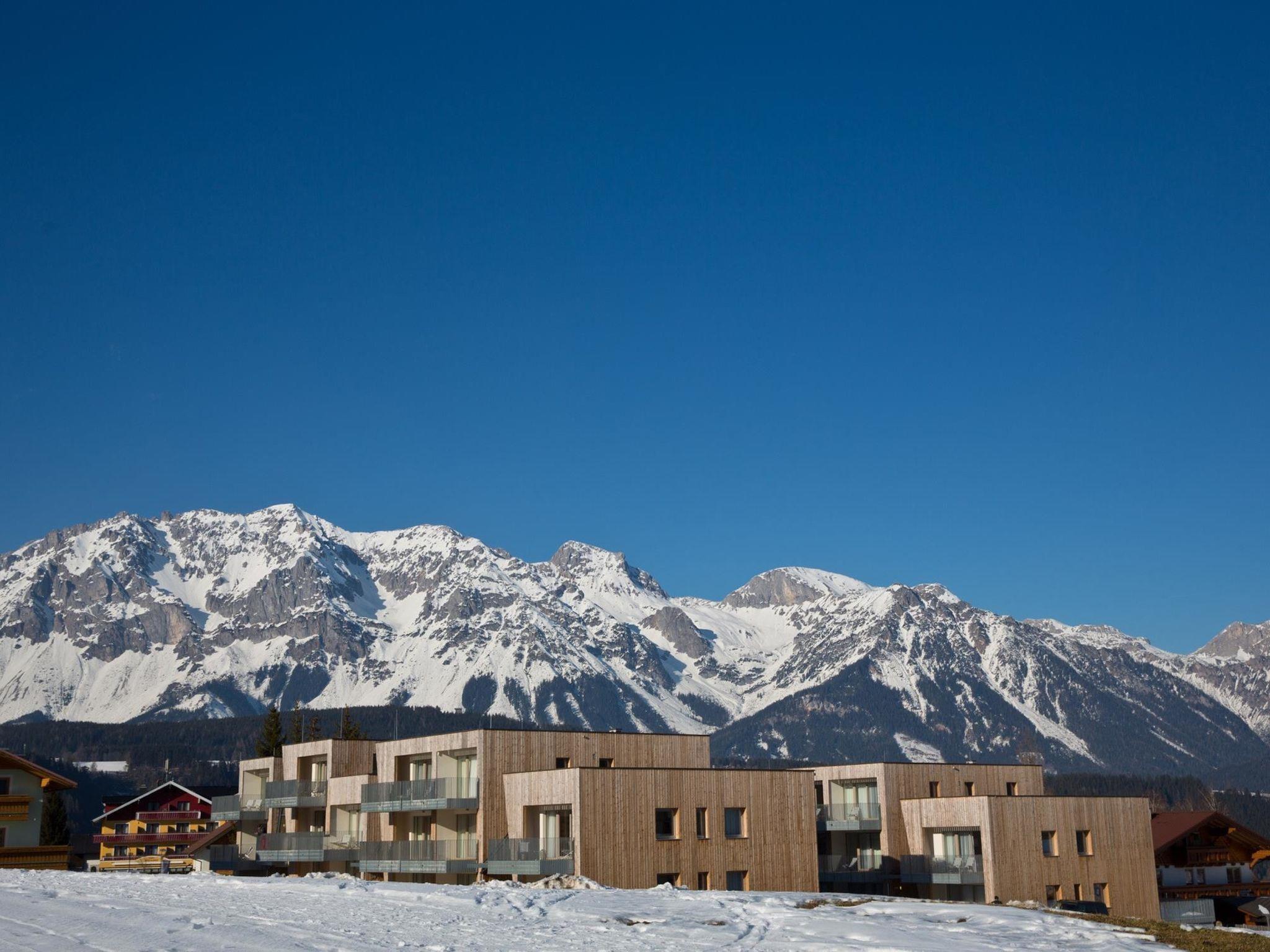 Child friendly, modern, comfortable resort "Alpenrock by Alps Resorts", 920 m a.s.l.. In the centre of Rohrmoos 4 km from the centre of Schladming, in a sunny position, 250 m from the skiing area. For shared use: children's playground. In the complex: reception, WiFi, sauna, massage (extra). Steam room, relaxation room, table tennis, playroom, table football, storage room for bicycles, storage room for skis, central heating system, washing machine (for shared use, extra), ski boot dryer. Bread roll service. In Winter: please take snow chains. Communal covered parking. Carport. E-charging station. Shop 200 m, restaurant, café 300 m, bus stop 200 m. Walking paths from the house, cycle lane 50 m, ski lift 200 m, chair lift, slopes, ski rental 150 m, ski school, children's ski school 200 m, cross country ski track 5 km. Well-known ski regions can easily be reached: Hochwurzen, Hauser Kaibling, Planai 200 m, Dachstein Gletscherbahn 19 km. Hiking paths: Faageralm, Reiteralm. Please note: baby equipment on request. The photo is just an example. The holiday properties may differ in living space, floorplan, equipment and furnishing. SCHLADMING DACHSTEIN SUMMERCARD included. More than 100 free attractions such as cable cars, toll roads, admission to museums, outdoor pools and bathing lakes, guided horseback riding and hiking tours and much more. Detailed information on site. Partner company "Young Styria" - specialists for school and youth trips!