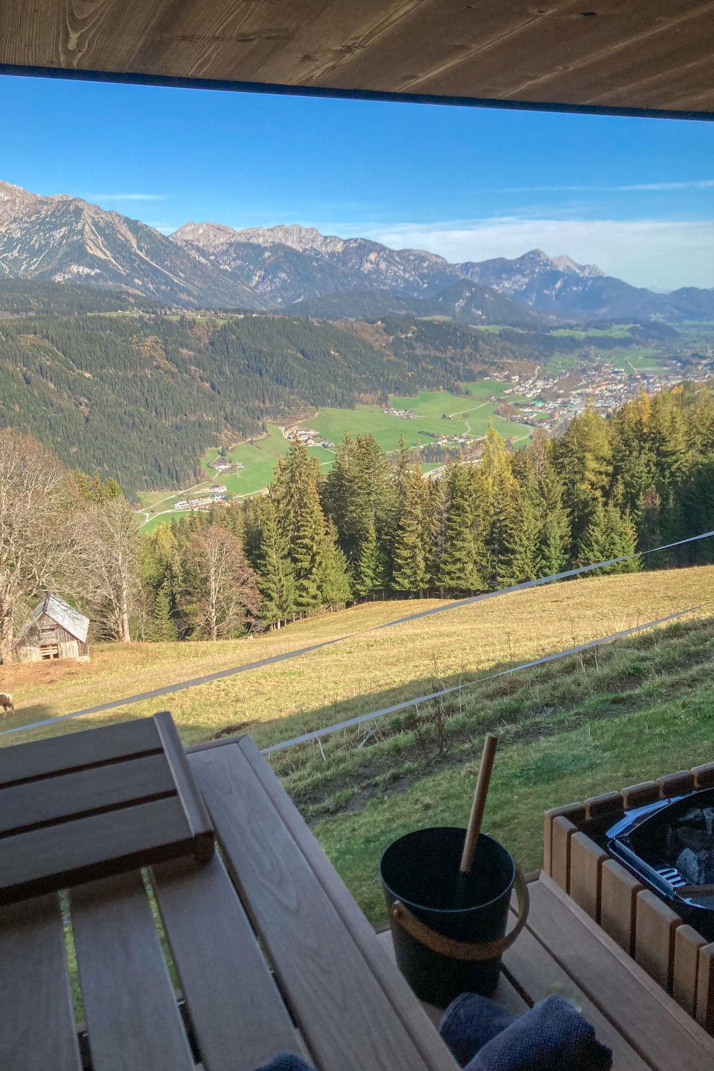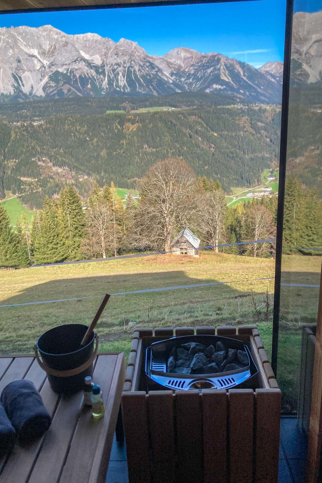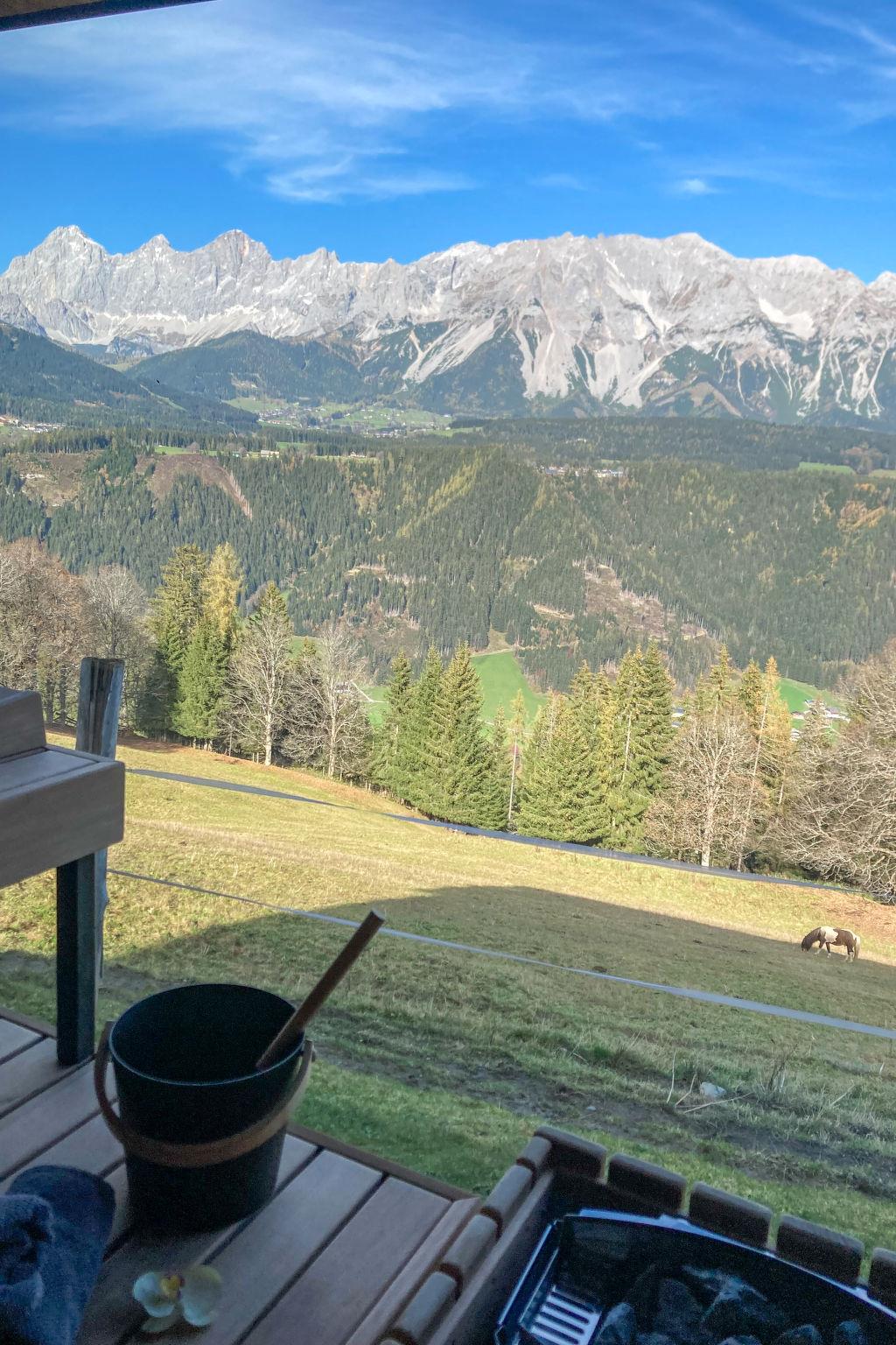 Schladming-Dachstein Summer Card (approx. end of May - end of October) with many benefits included! modern, comfortable 3-family house "Alpenjuwel", 1'132 m a.s.l., built in 2016, surrounded by trees and meadows. In the district of Rohrmoos 6 km from the centre of Schladming, 3 km from the centre of Rohrmoos, in a secluded, elevated position on top of a hill, 1 km from the skiing area, in the countryside. For shared use: large garden 1'300 m2 (not fenced) with lawn. In the house: sauna (extra). Storage room for bicycles, storage room for skis, ski boot dryer. Bread roll service. 6 km long motor access to the grounds (mountain road). In Winter: please take snow chains. Shop 3 km, supermarket 6 km, restaurant 2.5 km, bus stop 250 m, railway station "Schladming" 6 km, outdoor swimming pool 6.5 km, indoor swimming pool 6.5 km, bathing lake "Pichl" 12 km. Golf course (18 hole) 11 km, mountain railway 1 km, ski lift 1 km, slopes 1 km, ski bus stop 300 m. Well-known ski regions can easily be reached: Planai 6 km, Hochwurzen 1 km. Please note: the owner lives in the same residence. Panoramic outdoor sauna for a fee (Euro 20,-/hour).