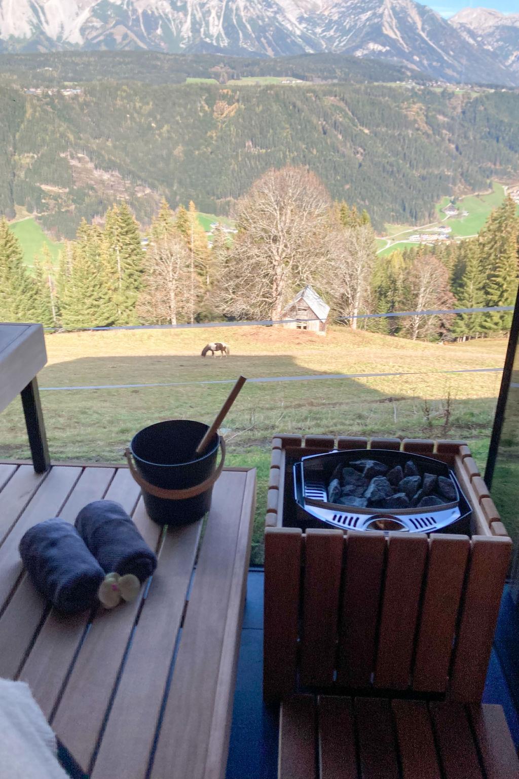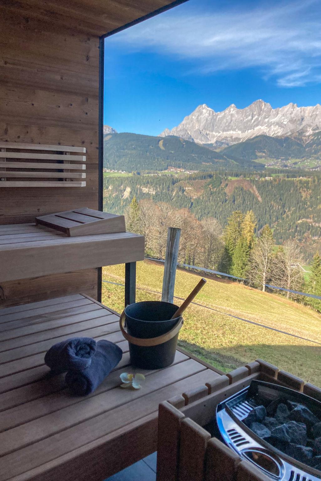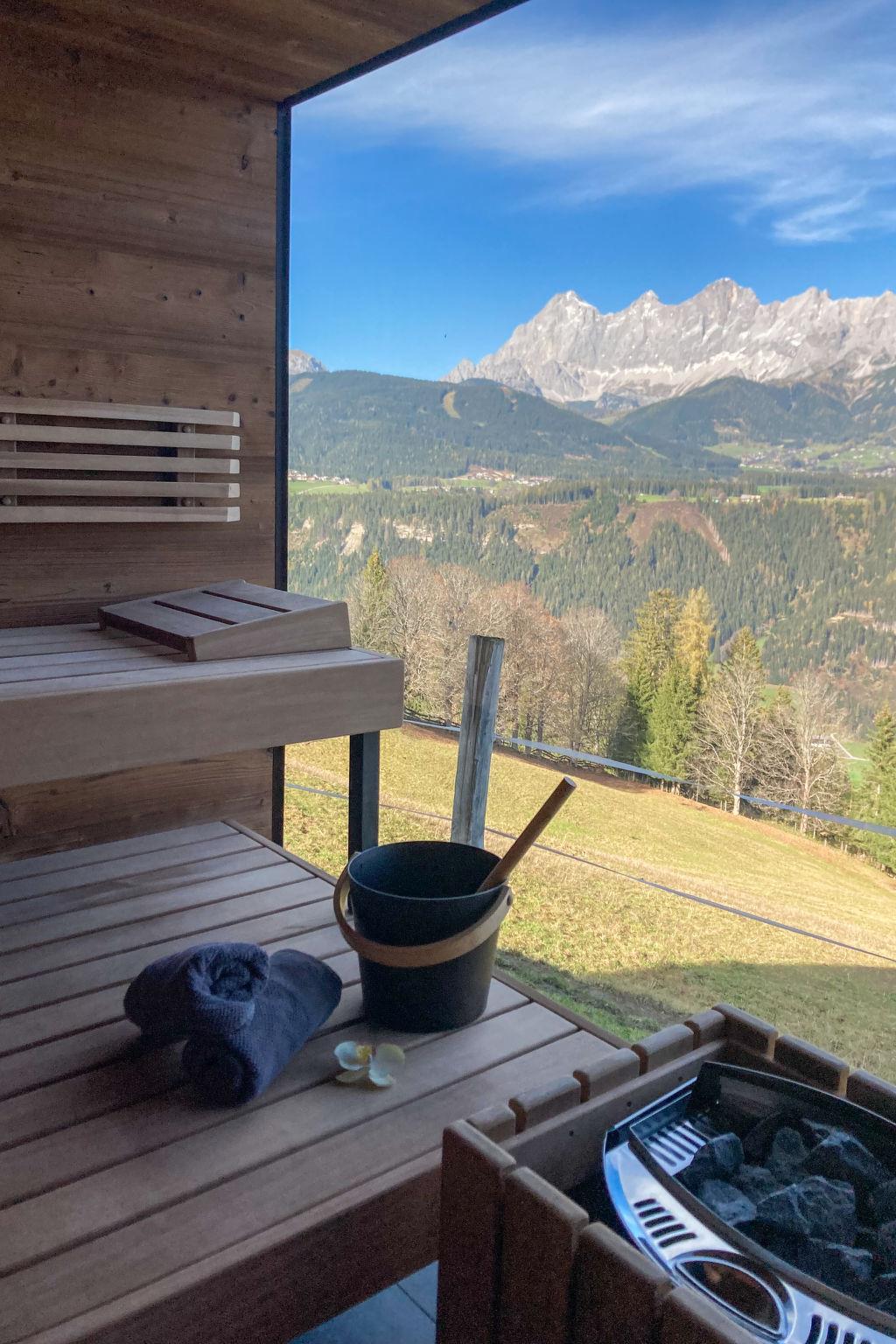 Schladming-Dachstein Summer Card (approx. end of May - end of October) with many benefits included! modern, comfortable 3-family house "Alpenjuwel", 1'132 m a.s.l., built in 2016, surrounded by trees and meadows. In the district of Rohrmoos 6 km from the centre of Schladming, 3 km from the centre of Rohrmoos, in a secluded, elevated position on top of a hill, 1 km from the skiing area, in the countryside. For shared use: large garden 1'300 m2 (not fenced) with lawn. In the house: sauna (extra). Storage room for bicycles, storage room for skis, ski boot dryer. Bread roll service. 6 km long motor access to the grounds (mountain road). In Winter: please take snow chains. Shop 3 km, supermarket 6 km, restaurant 2.5 km, bus stop 250 m, railway station "Schladming" 6 km, outdoor swimming pool 6.5 km, indoor swimming pool 6.5 km, bathing lake "Pichl" 12 km. Golf course (18 hole) 11 km, mountain railway 1 km, ski lift 1 km, slopes 1 km, ski bus stop 300 m. Well-known ski regions can easily be reached: Planai 6 km, Hochwurzen 1 km. Please note: the owner lives in the same residence. Panoramic outdoor sauna for a fee (Euro 20,-/hour).
