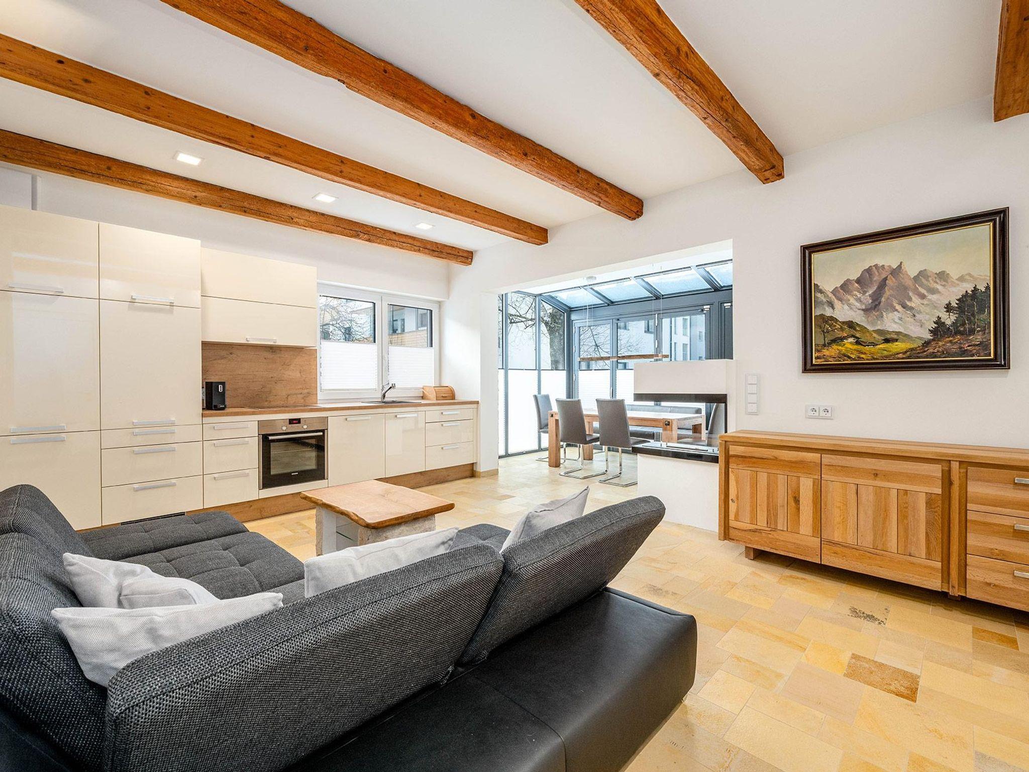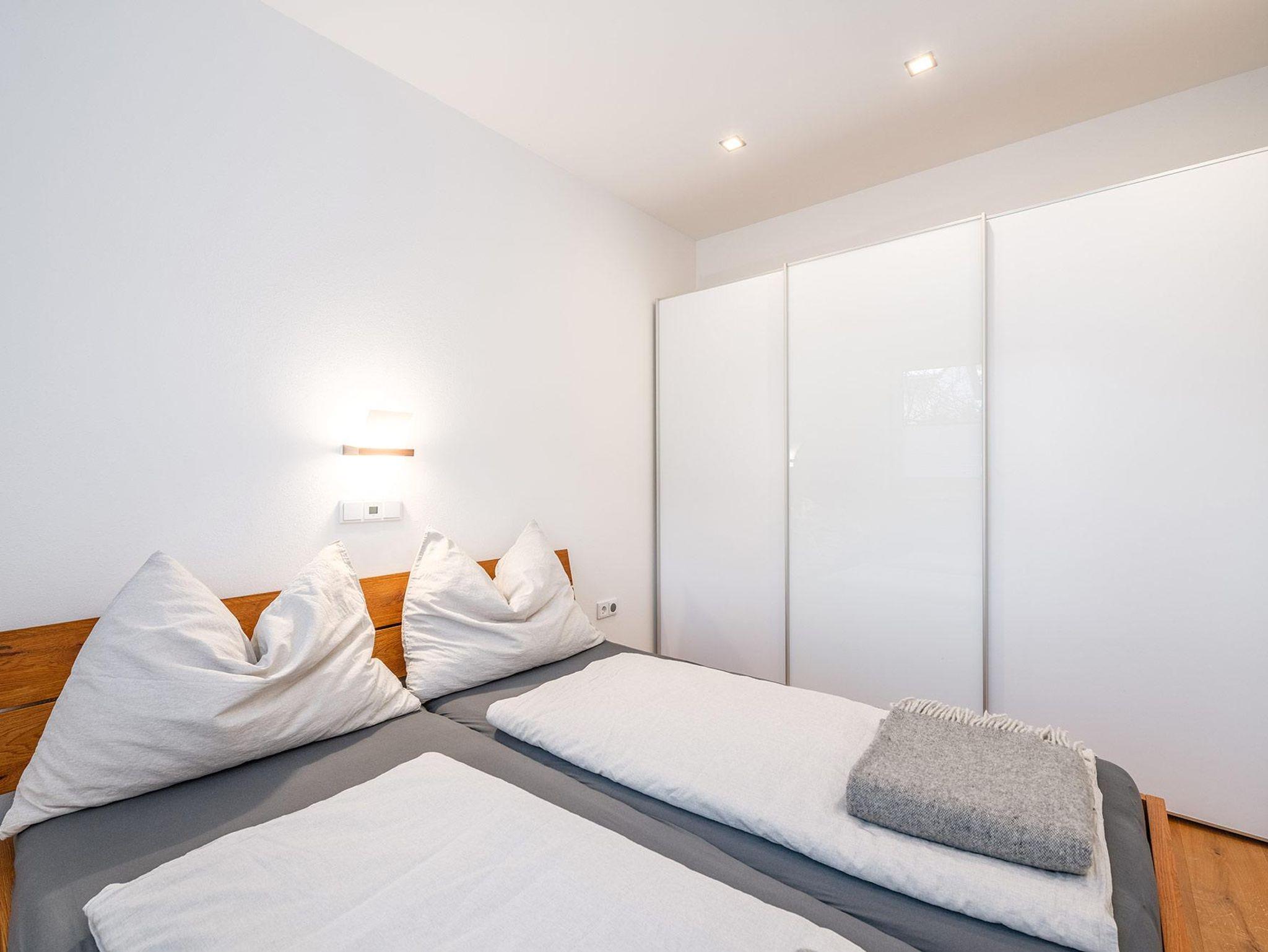 Auf 64 m² Wohnfläche bietet das Apartment Platz für bis zu 5 Personen. Zwei getrennte Schlafzimmer mit jeweils einem 180 cm Doppelbett sorgen für höchsten Schlafkomfort, ergänzt durch ein Schlafsofa im Wohn- und Essbereich. Der lichtdurchflutete Wintergarten mit Essbereich verbindet Innen- und Außenraum auf elegante Weise, während die private Terrasse zum Entspannen nach einem aktiven Tag in den Bergen einlädt.