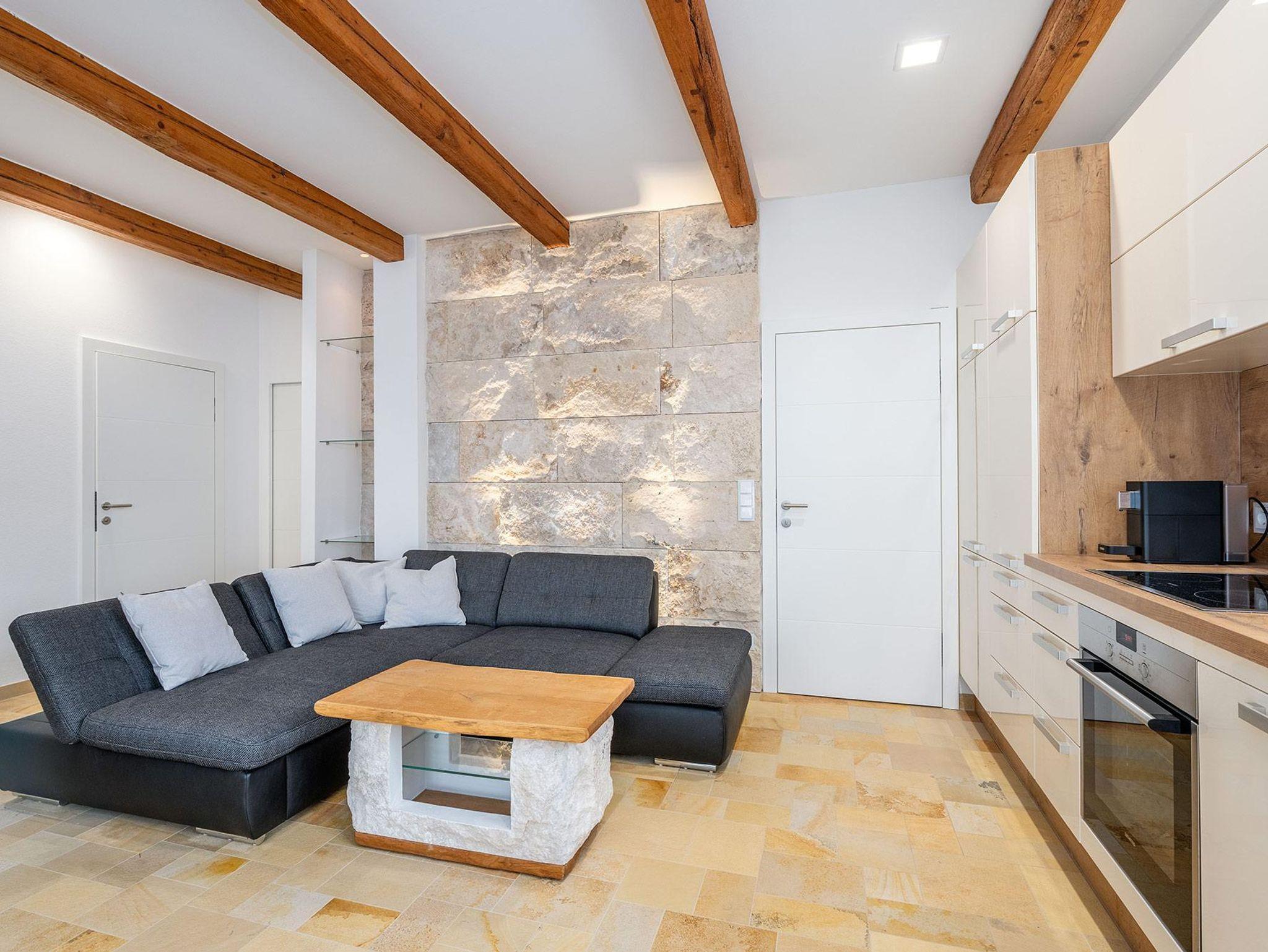 Mitten im Zentrum von Schladming gelegen, präsentiert sich das Apartment Höchstein – Stone & Light Residence als stilvolles Refugium für Gäste mit Anspruch an Design, Komfort und Lage. Hochwertige Materialien, eine markante Steinwand und durchdachte indirekte Beleuchtung schaffen eine warme, moderne Wohnatmosphäre mit alpinem Charakter.