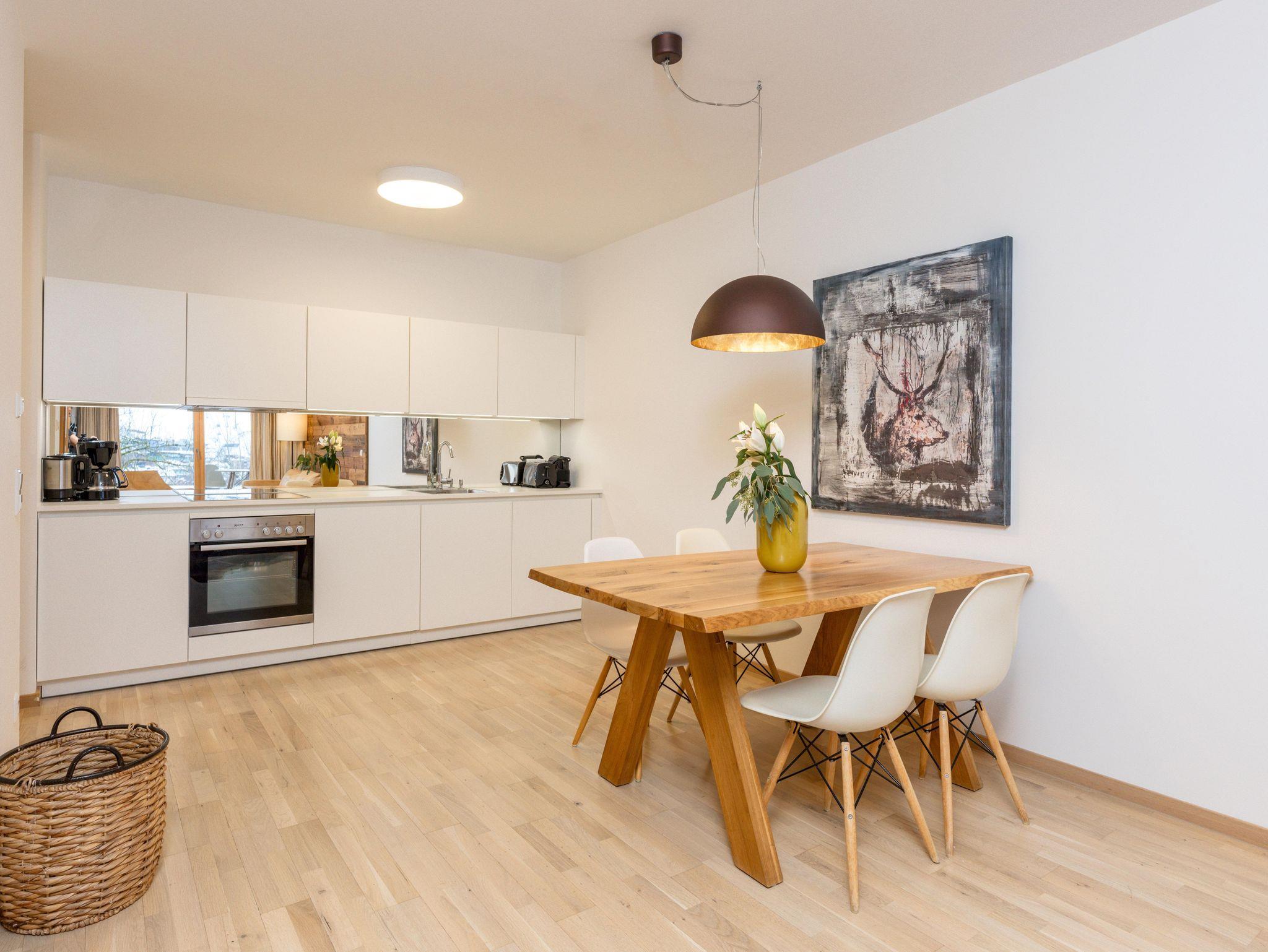 3 miteinander verbunden Häuser 38 servicierte Appartements, von 40m² Studios, Appartements mit einem, zwei oder drei Schlafzimmern bis hin zu 130m² Penthäusern, herrlichen Ausblick und Top Ausstattung inklusive! Die hochwertige Grundausstattung der Appartements mit heimischen Materialen wie Holz, Stein und Glas vermitteln ein modernes Wohlfühlambiente mit viel Licht und Aussicht, - eine Symbiose aus purem Lebensgefühl und Kraftplatz an der Sonne. Komplett ausgestattete Designküchen, großzügige Wohnräume zum Teil mit offenem Kamin, moderne & stylische Möbel, kostenfreies WLAN, Kabel TV in allen Schlaf- und Wohnräumen sowie moderne und lichtdurchflutete Badezimmer, lassen für den Gast, der seine private Freiheit schätzt, keine Wünsche offen .
