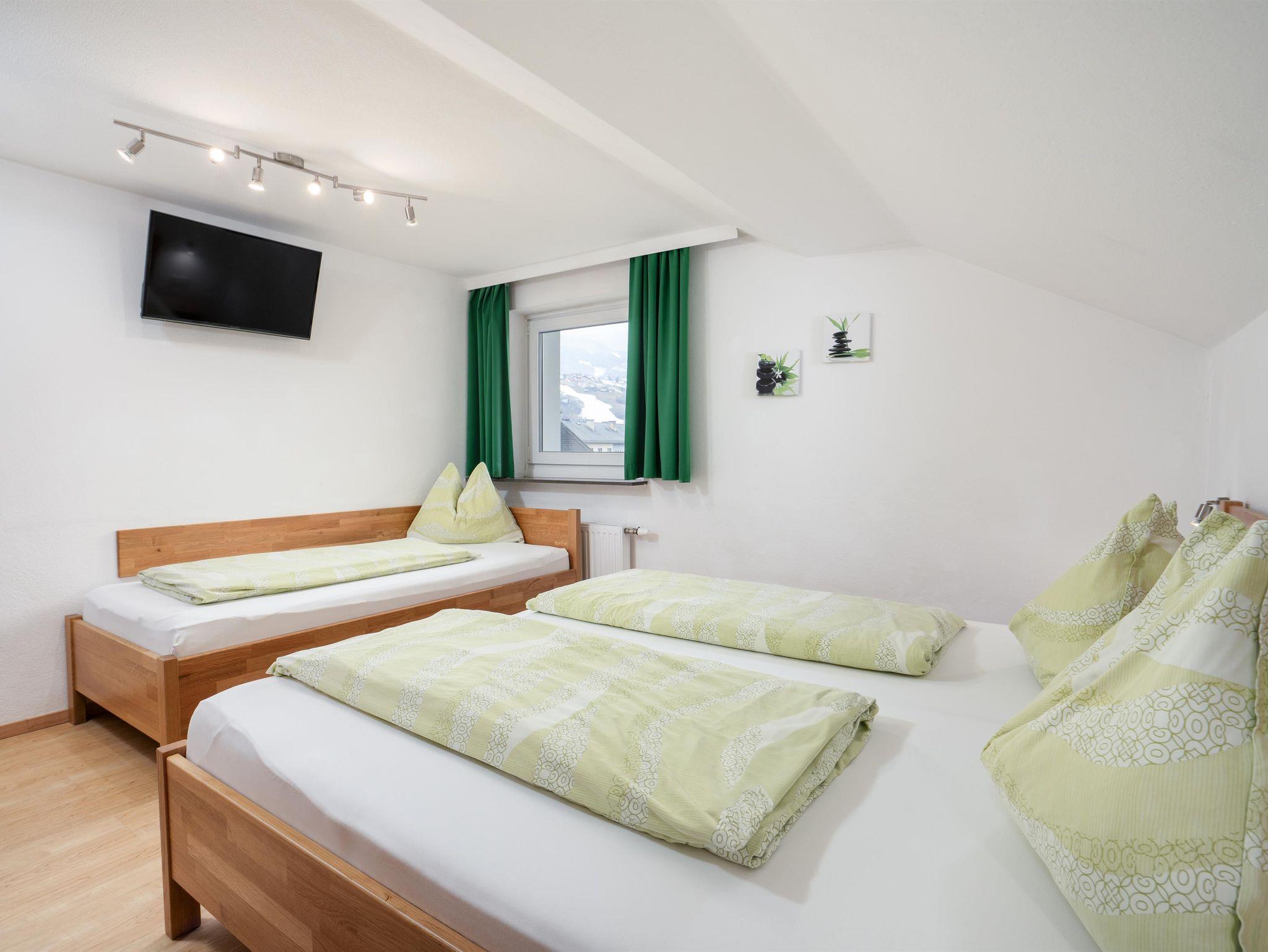 2 separate Schlafzimmer mit jeweils einem Doppelbett sowie einem Einzelbett