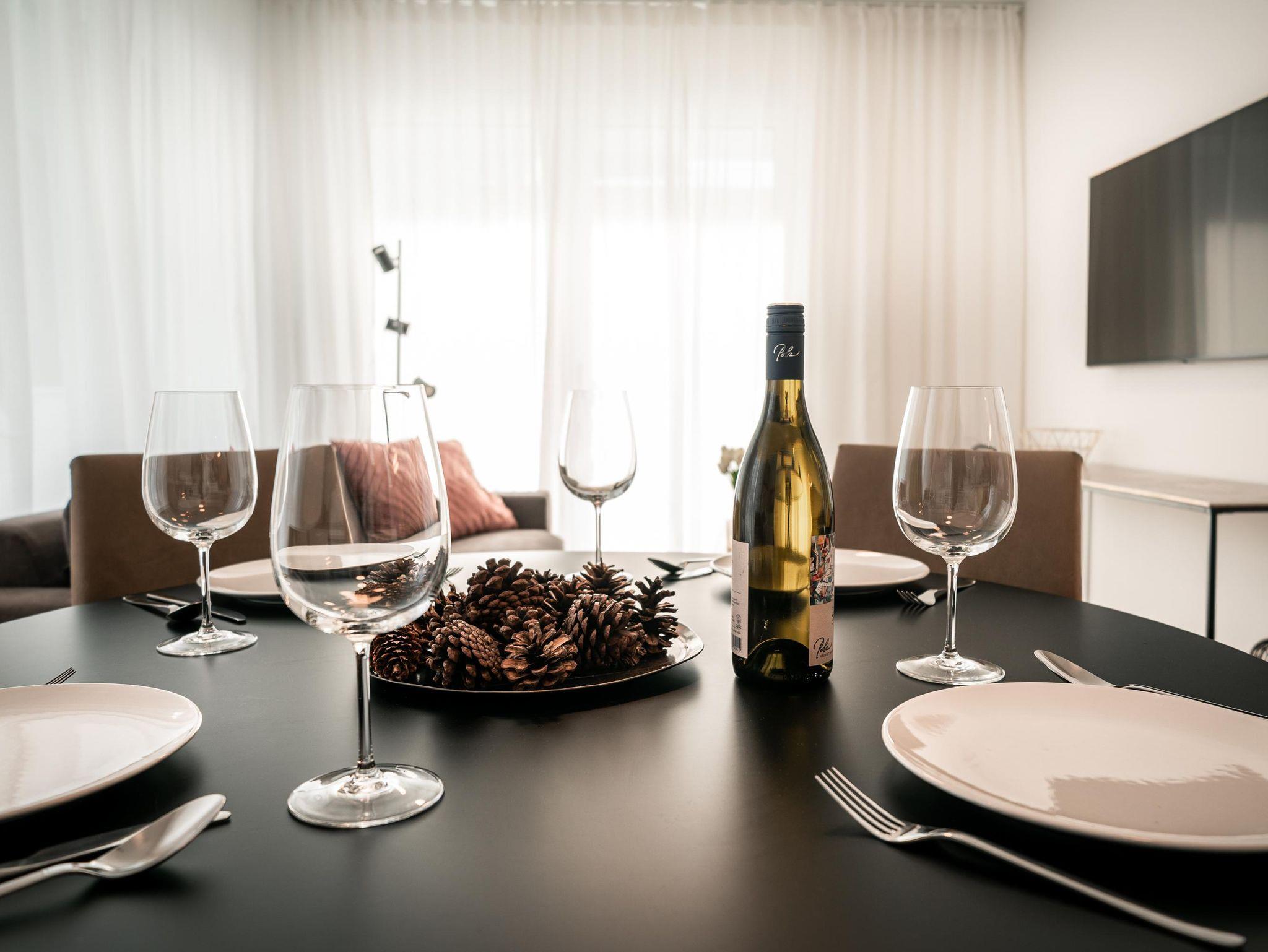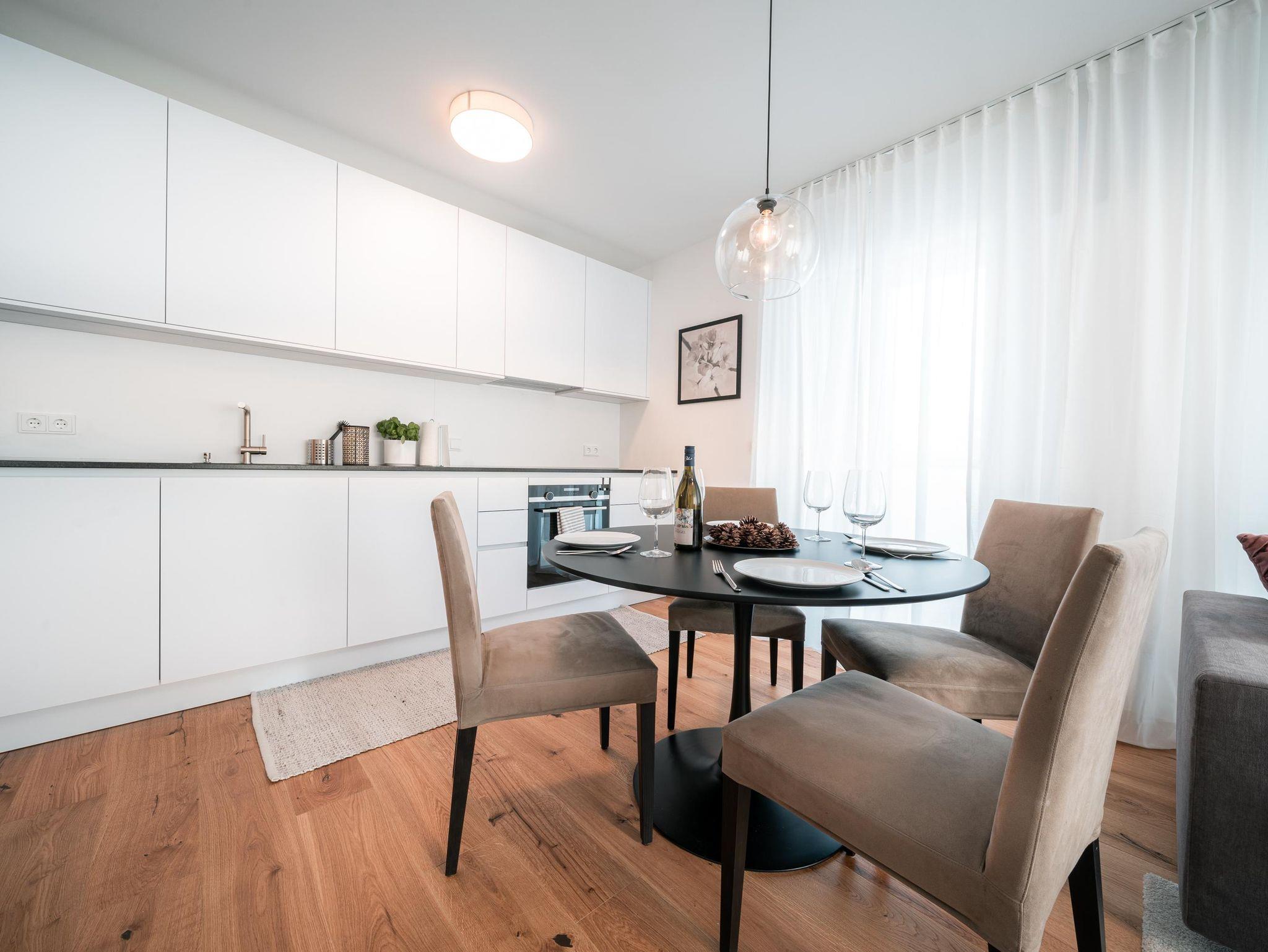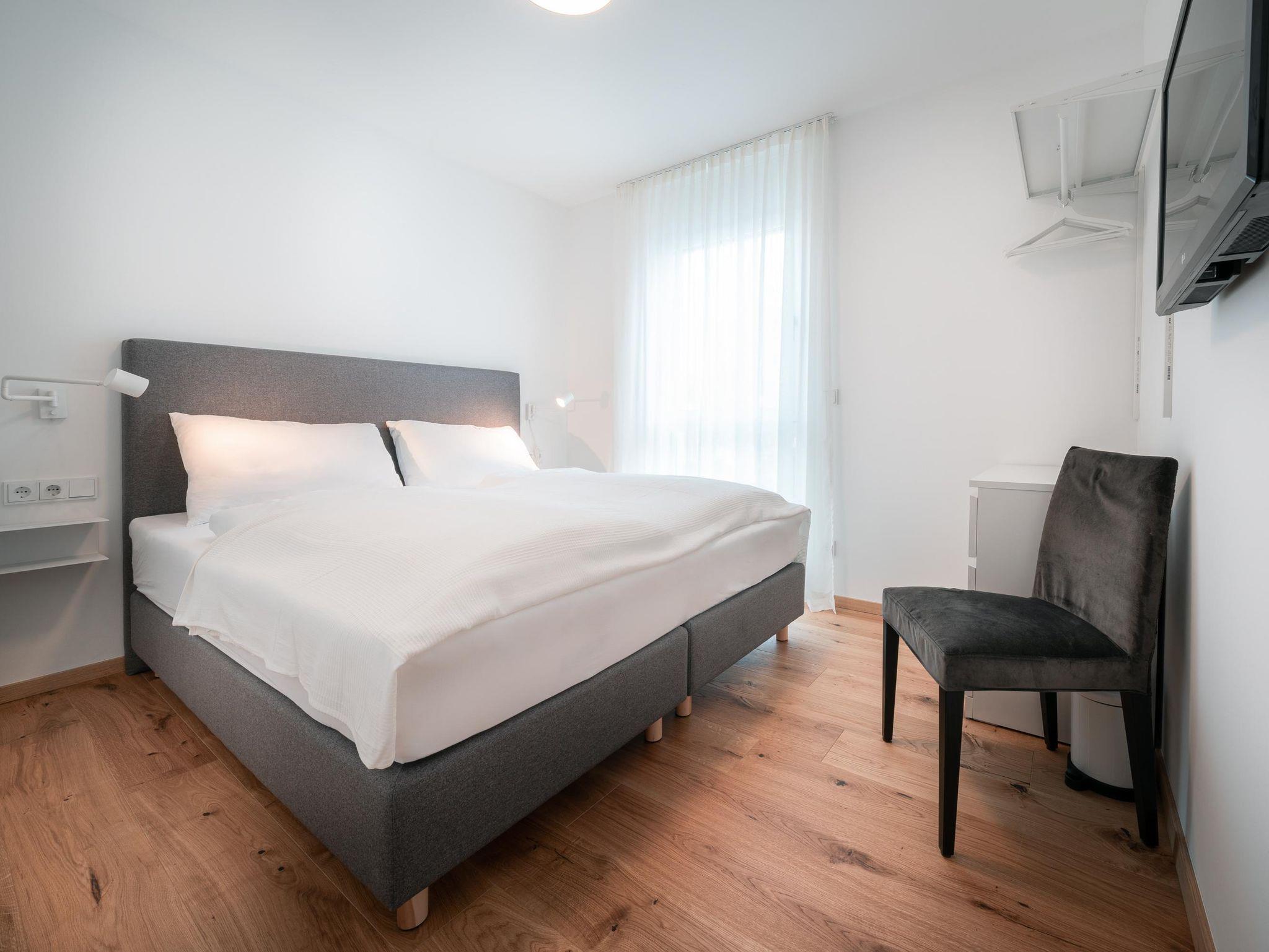 11 Appartements – von Garden, Studio, Comfort, Superior und Penthouse – jedes mit Balkon oder Terrasse, jedes ruhig, ein bis zwei Schlafzimmer, komplett ausgestattete Küchen, Tiefgarage, Skiraum, Radraum, W-Lan… das ist der Conrad – Komfort!
