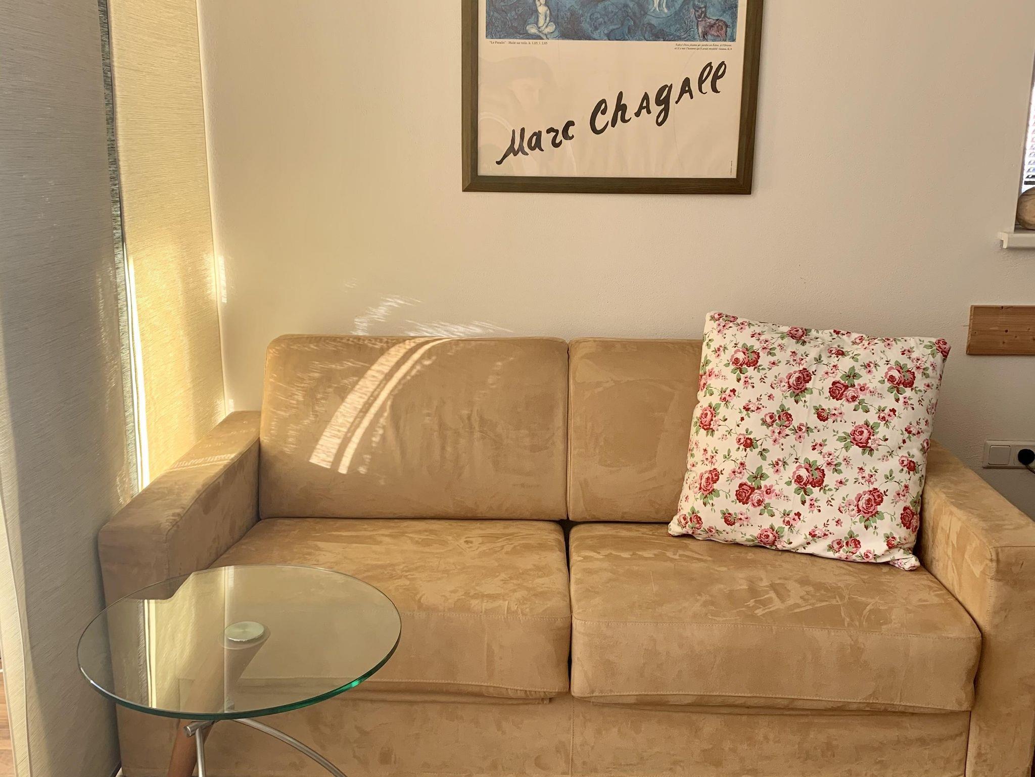 Dieses ist ein 1-Raum Appartement mit einem Boxspringbett, einer sehr großzügigen Wohnküche, in der sich sich nochmal ein Ausziehsofa für 2 Personen befindet.