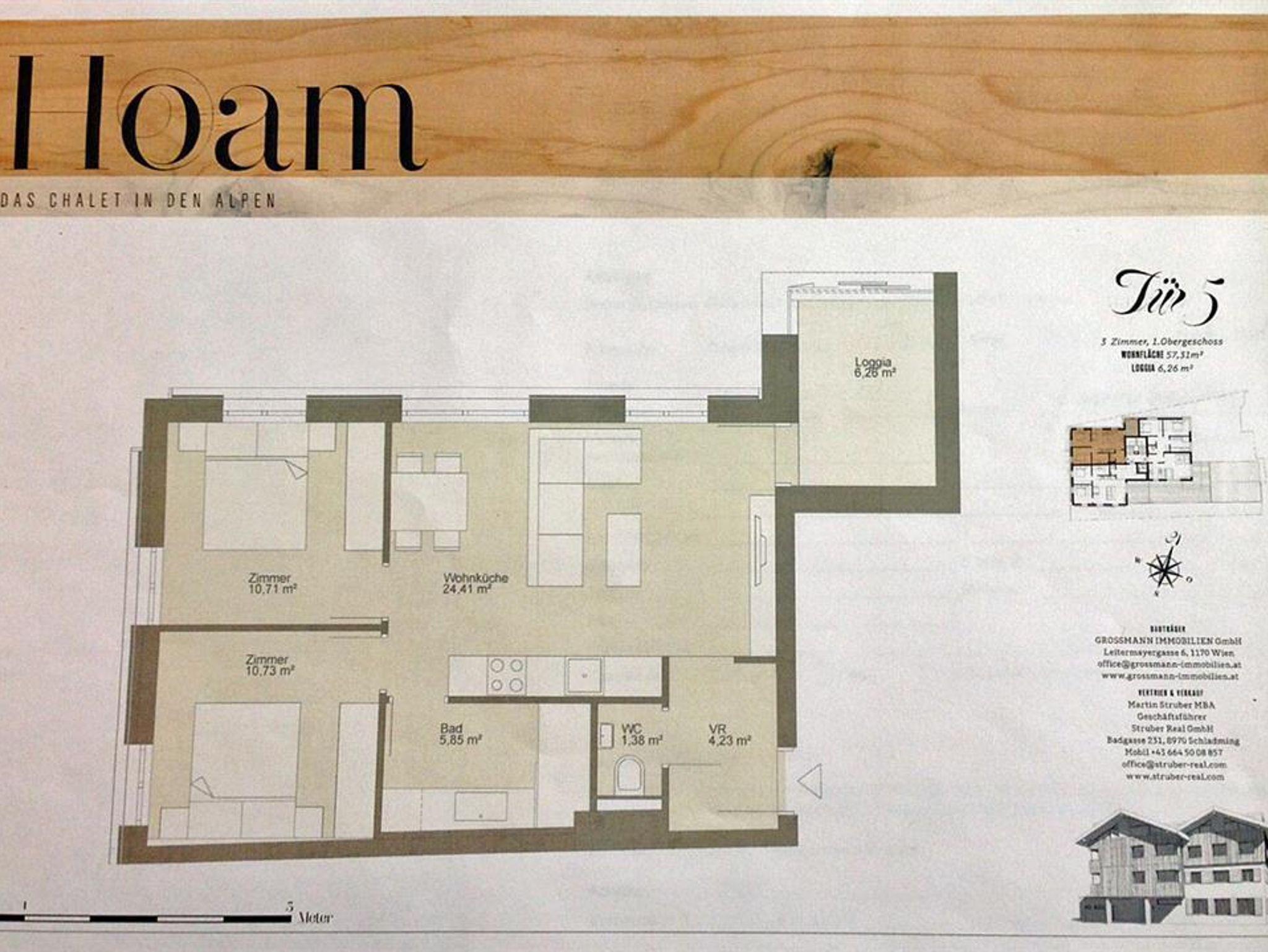 Auf alpinen Traditionen aufbauend eine zeitgeistige Formensprache zu entwickeln, war die Vision des Architekten Hans Posch. 2015 wurde diese Vision in die Tat umgesetzt und im Zentrum von Schladming das Appartementhaus „Hoam - das Chalet in den Alpen“ errichtet. Stücke aus verschiedenen Kontinenten, Epochen, Designstilen und Skulpturen prägen die Appartements, bringen die Räume zum Klingen und erzeugen eine Harmonie mit den Menschen, die hier wohnen. Einzigartig: hier wohnt man hip und traditionsbewusst zugleich. Geboten wird im Appartement TOP 5 für 4-6 Personen auf 57 m² Wohnfläche. Ausgestattet mit einer großzügigen Wohnküche, Loggia, zwei separaten Schlafzimmern sowie einem Badezimmer bietet das Appartement alles, was das Urlauberherz begehrt. Das TOP 2 bietet auf über 100m² genügend Platz für 6-8 Personen. Ausgestattet mit einer großen Wohnküche, 3 separaten Schlafzimmern sowie 3 Bäder En-Suite eine nette Terrasse mit Garten runden das Angebot ab. TOP 1 - DAS UNIKAT glänzt mit seiner ausgefallenen Einrichtung und wahren Eye-Catcher Dekostücken und bietet mit einem separaten Schlafzimmer sowie einer Wohnküche auf 60m² genügend Platz für 2-4 Personen.