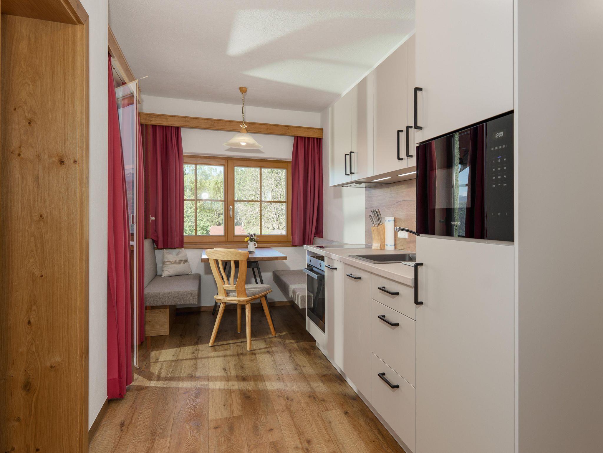 Dieses Appartement Adlerhorst liegt im zweiten Stock. Super Blick nach vorne in die Berge Richtung Reiteralm, ins Ennstal und natürlich zu den Gemsen und zum Wild. Bitte beachten: Diese Ferienwohnung hat eine Dachschräge, der eine mags der andere nicht! Das große Appartement verfügt über einen Vorraum, eine Wohnküche mit Essgelegenheit, ein Schlafzimmer mit Doppelbett, ein Schlafzimmer mit 2 separat stehenden Betten, ein separates WC sowie ein Bad mit Dusche. Beide Schlafzimmer haben Zugang zu einem Balkon. In der Wohnküche befindet sich ausserdem die Option für eine 5 Person zum schlafen.